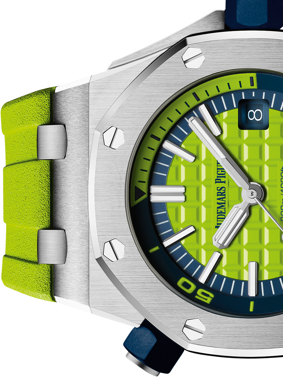 An effervescent new version of one of the bestsellers in the Royal Oak Offshore collection: the Royal Oak Offshore Diver “Funky Colour” in fizzy lime green. Available exclusively at Audemars Piguet boutiques.