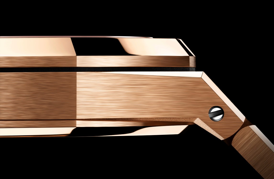 18-carat pink gold case, glareproofed sapphire crystal and caseback, screw-locked crown.