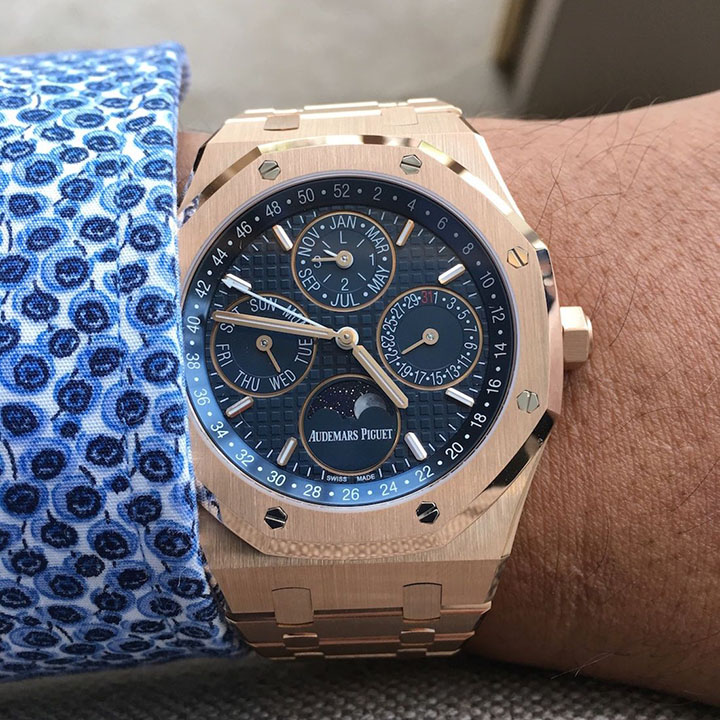 Brand new Audemars Piguet Royal Oak Perpetual Calendar, Reference # 26574OR.OO.1220OR.02, 41 mm 18k Pink Gold watch with all original accessories, original Audemars Piguet box and Audemars Piguet Warranty Card.