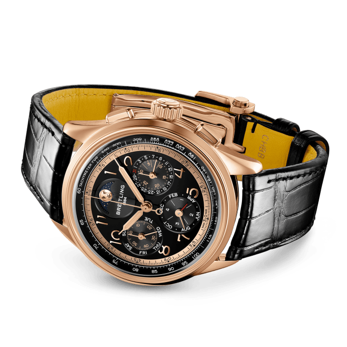 Paying homage to three generations of inventors – Léon, Gaston & Willy Breitling – the Premier Datora is the most refined Breitling chronograph with its complete calendar and moon-phase. As Willy Breitling said, the Premier is an “unmistakable stamp of impeccable taste”. This latest generation of Premier chronographs brings its timeless elegance back to life, and showcases Breitling’s highest level of watchmaking thanks to a range of iconic Premier complications: the Chronograph, the Duograph and the Datora. Featuring rectangular chronograph pushers and Arabic numerals, the heritage-revived Premier Datora displays a variety of elegant design details such as grooves on the case-sides, open sapphire casebacks and vintage-inspired hands. The Datora comes in two variations: in stainless steel with a copper dial and a brown alligator strap or in 18k red gold with a silver dial and a brown alligator strap. “Datora” was a term used by Breitling in the 1940s and refers to a complete calendar chronograph displaying day, date, month and the different moon phases. The Datora is powered by the cosc-certified Manufacture Caliber B25.