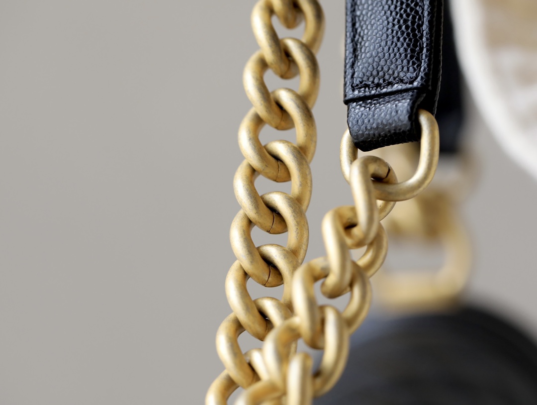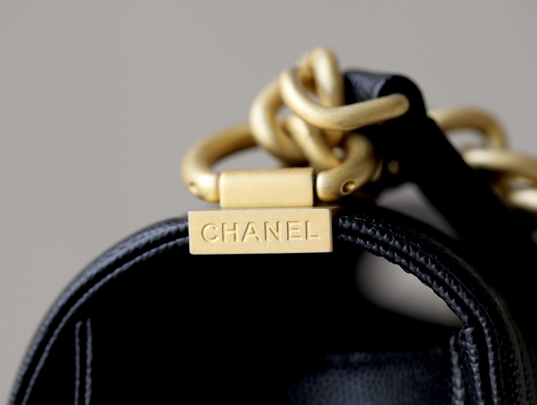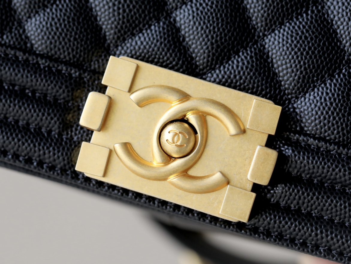 BOY CHANEL Handbag Grained Shiny Calfskin & Gold-Tone Metal Black