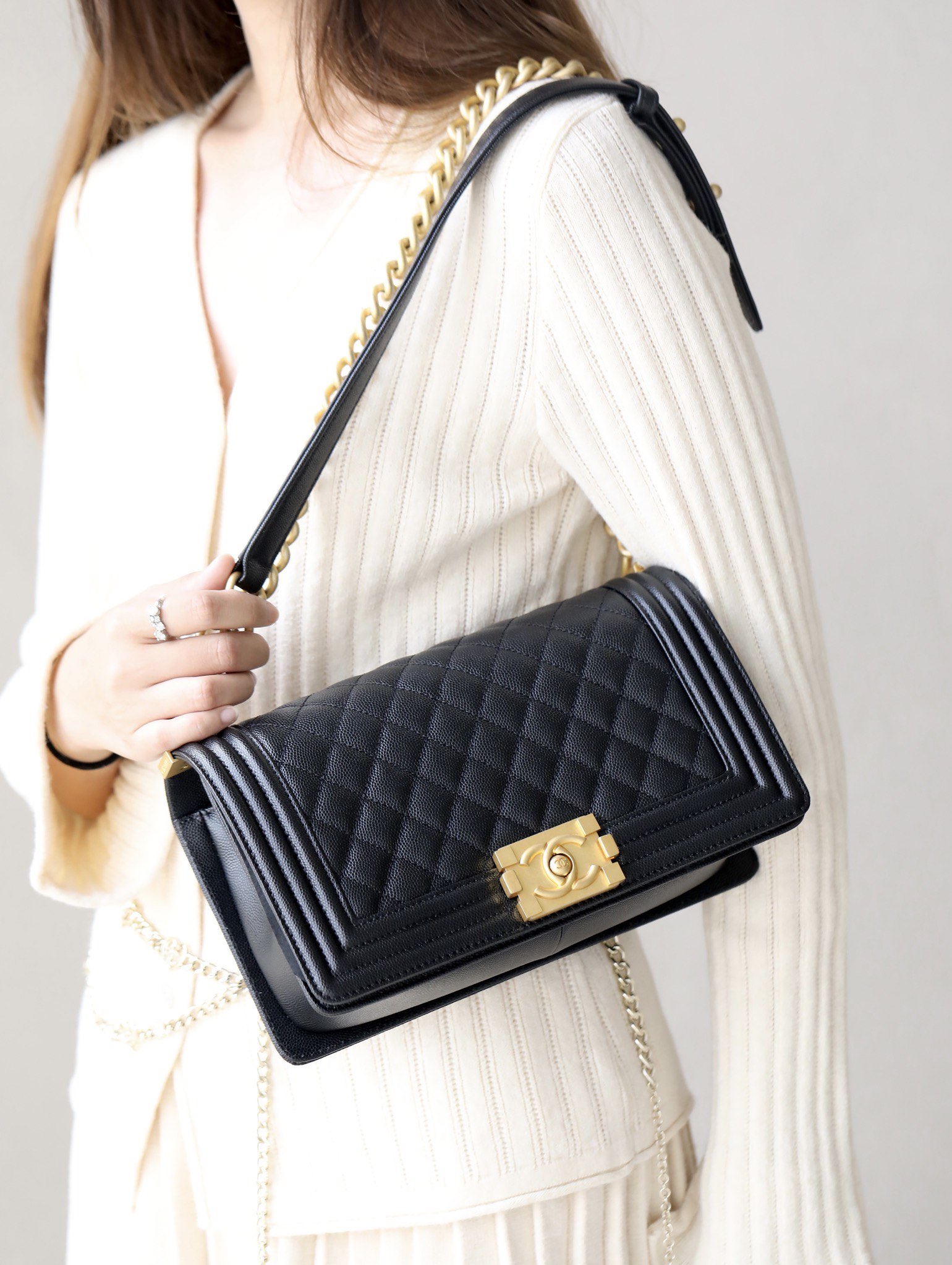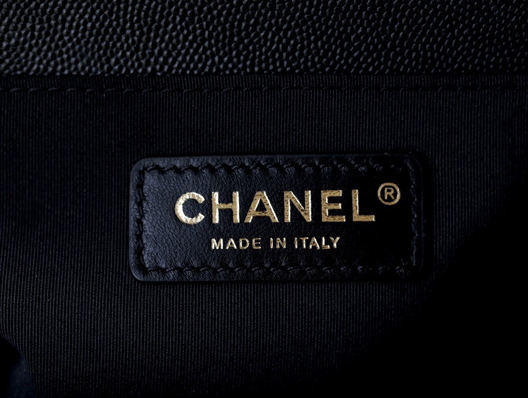 • BOY CHANEL Handbag Grained Shiny Calfskin & Gold-Tone Metal Black