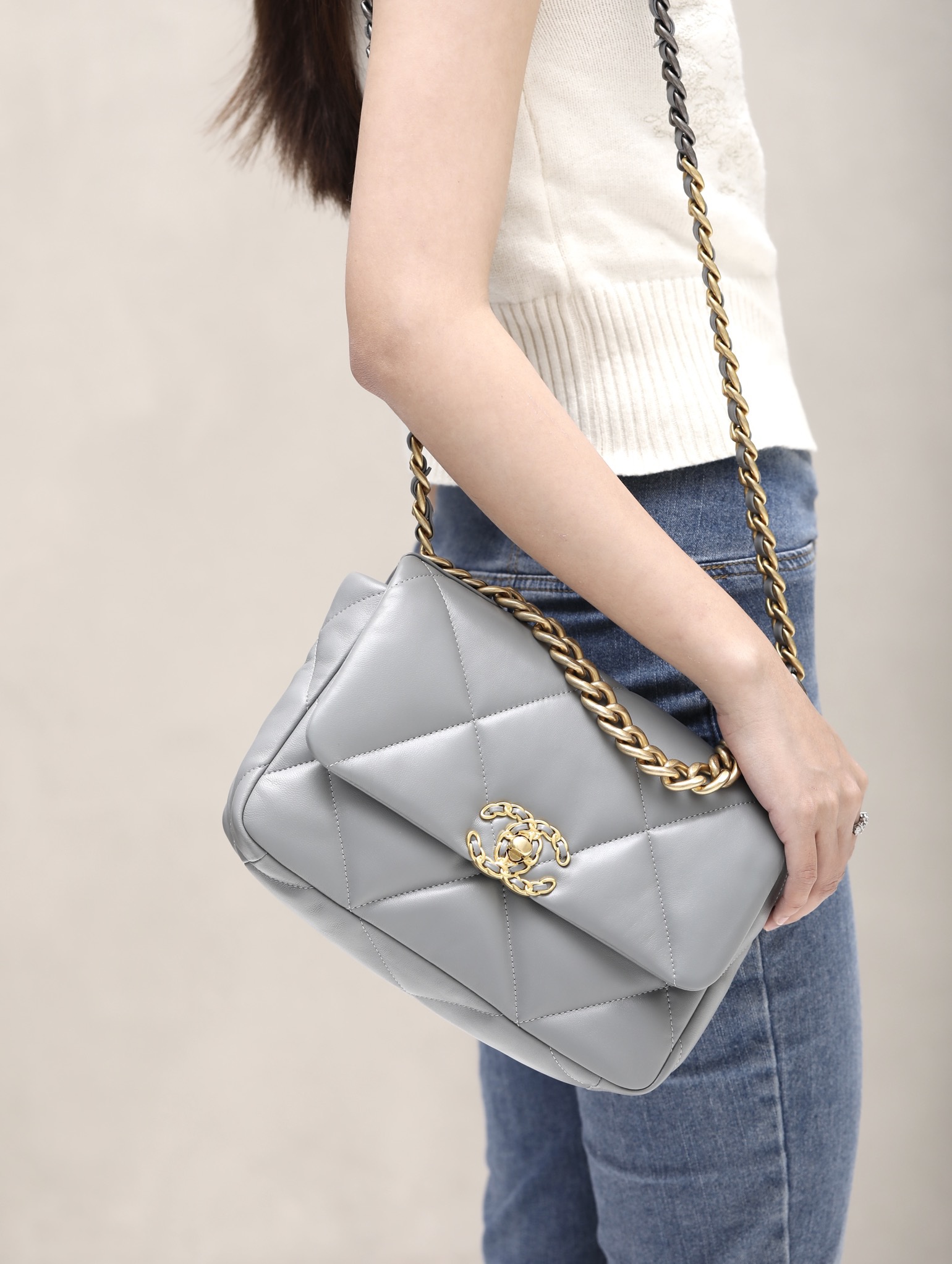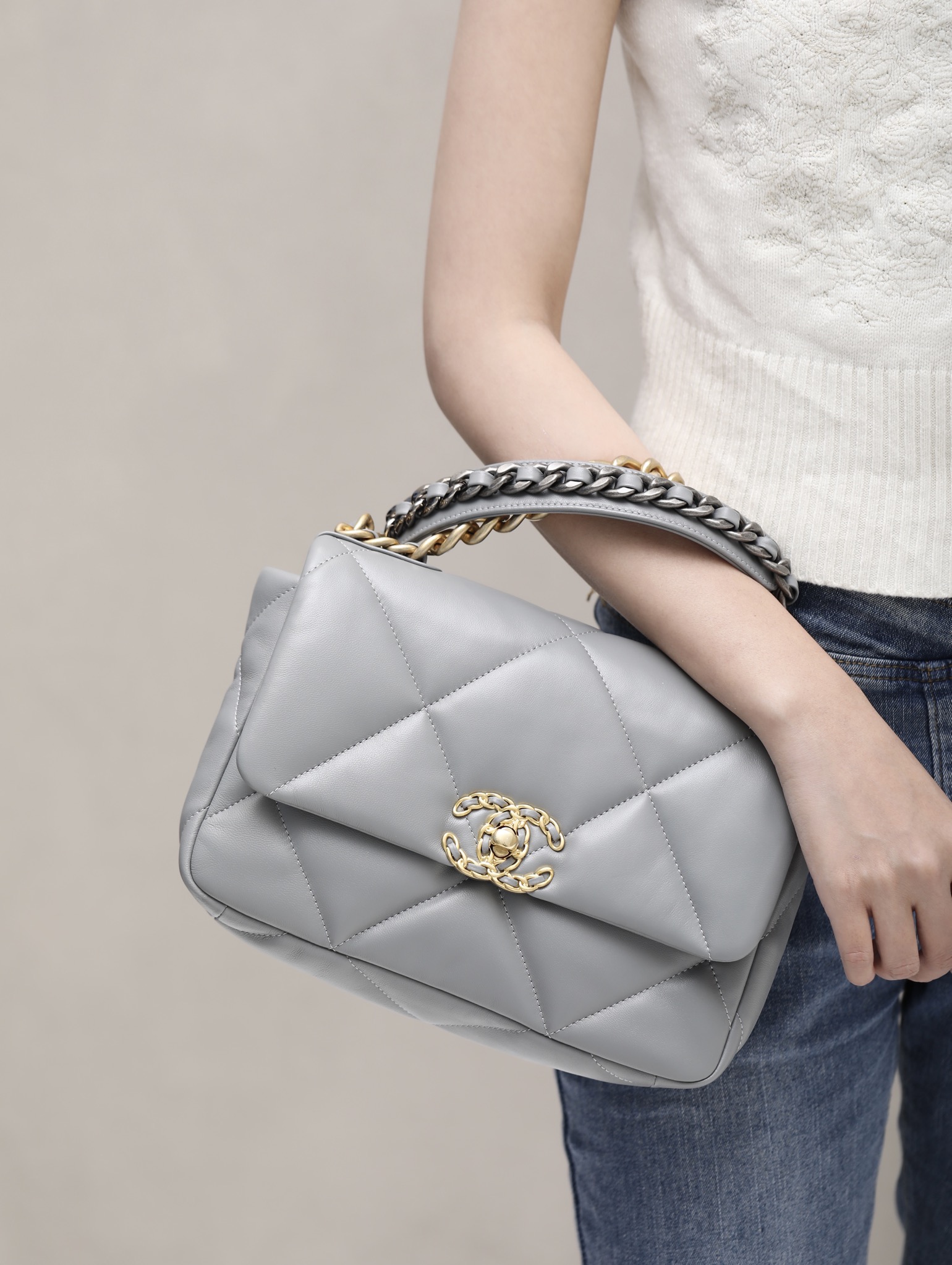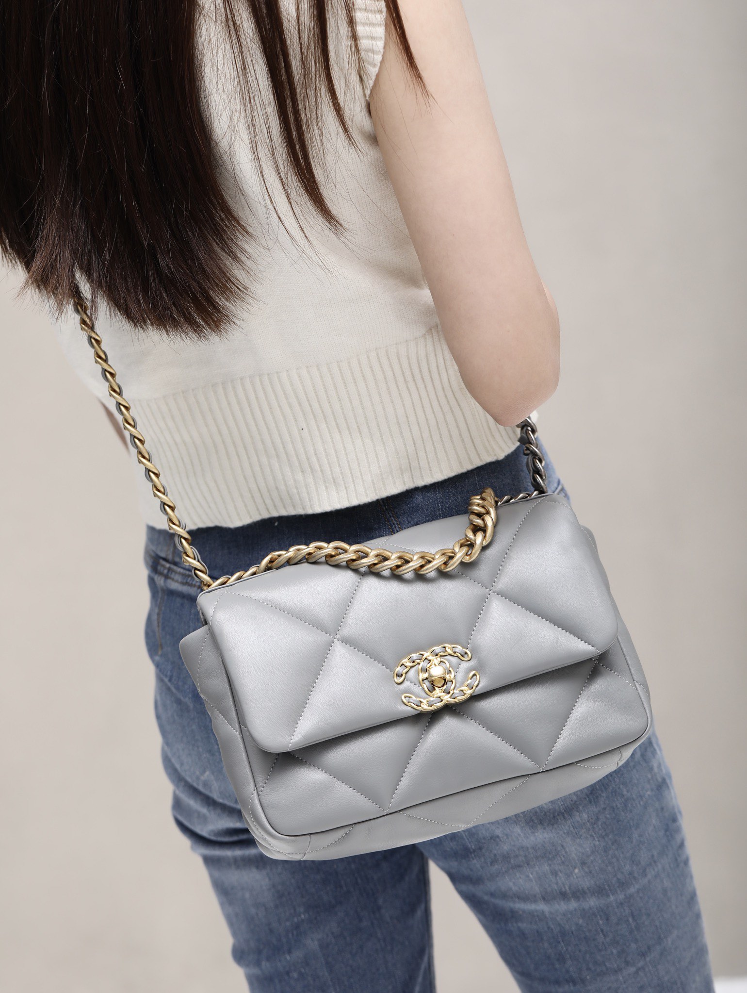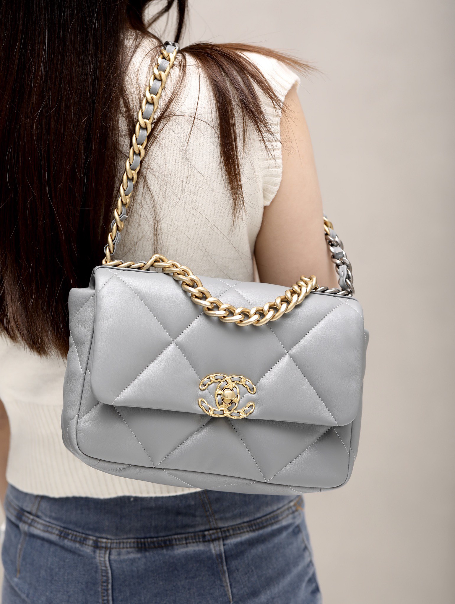 CHANEL 19 Flap Bag Lamb grey