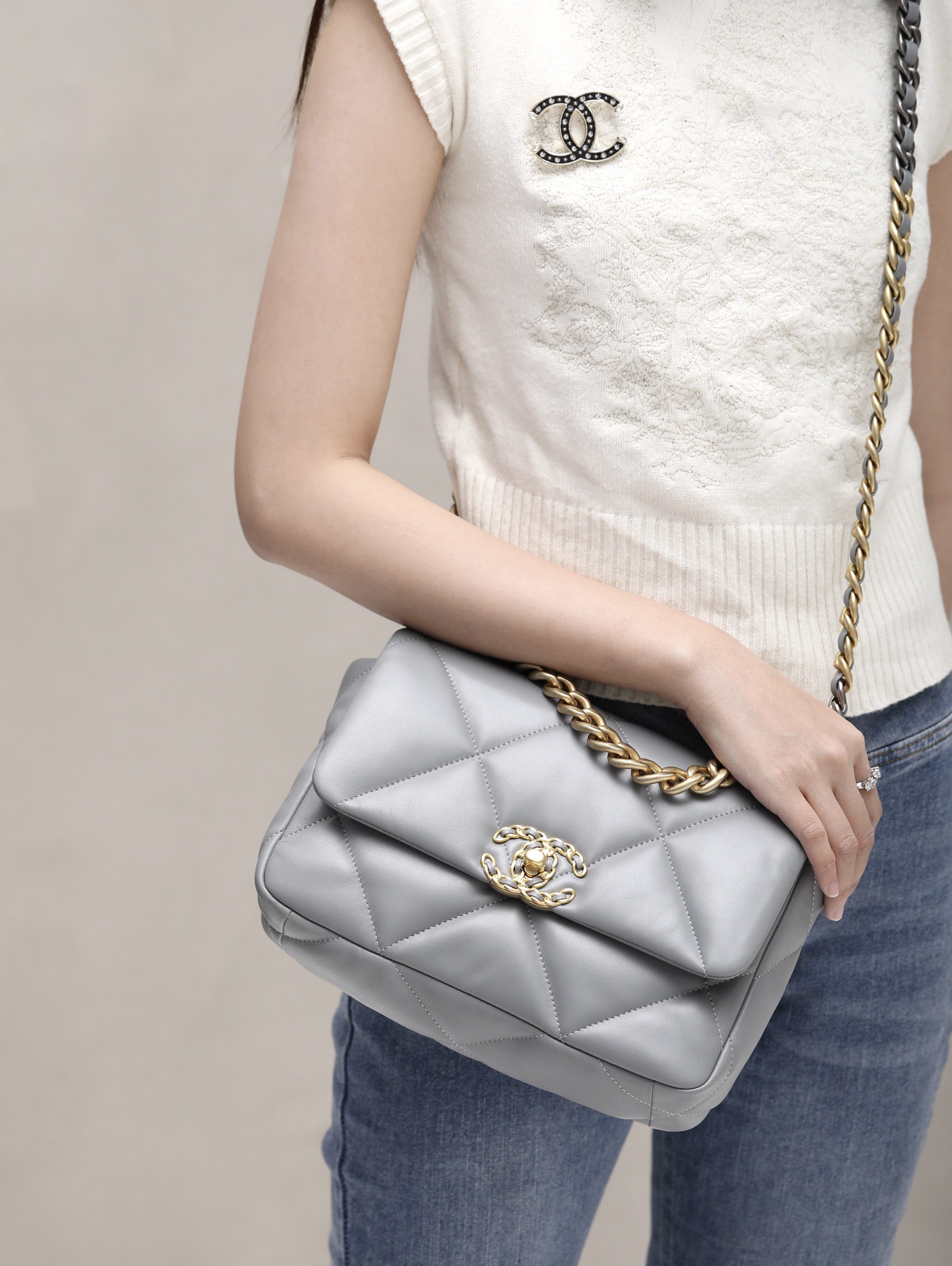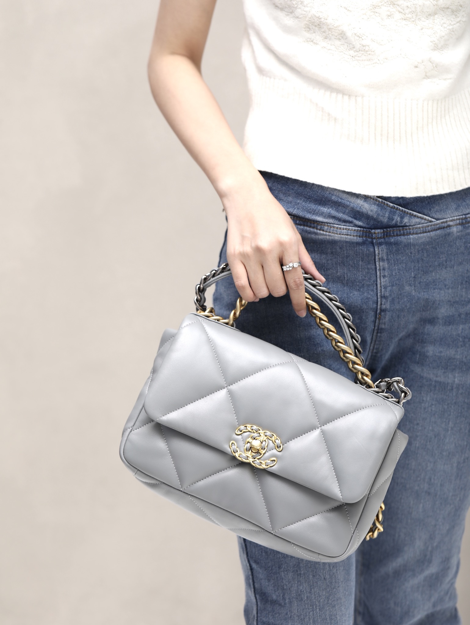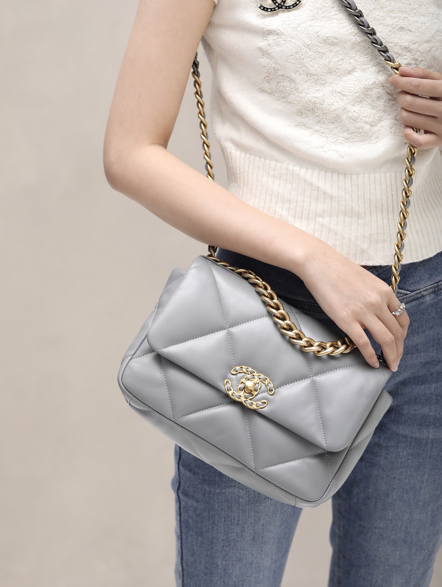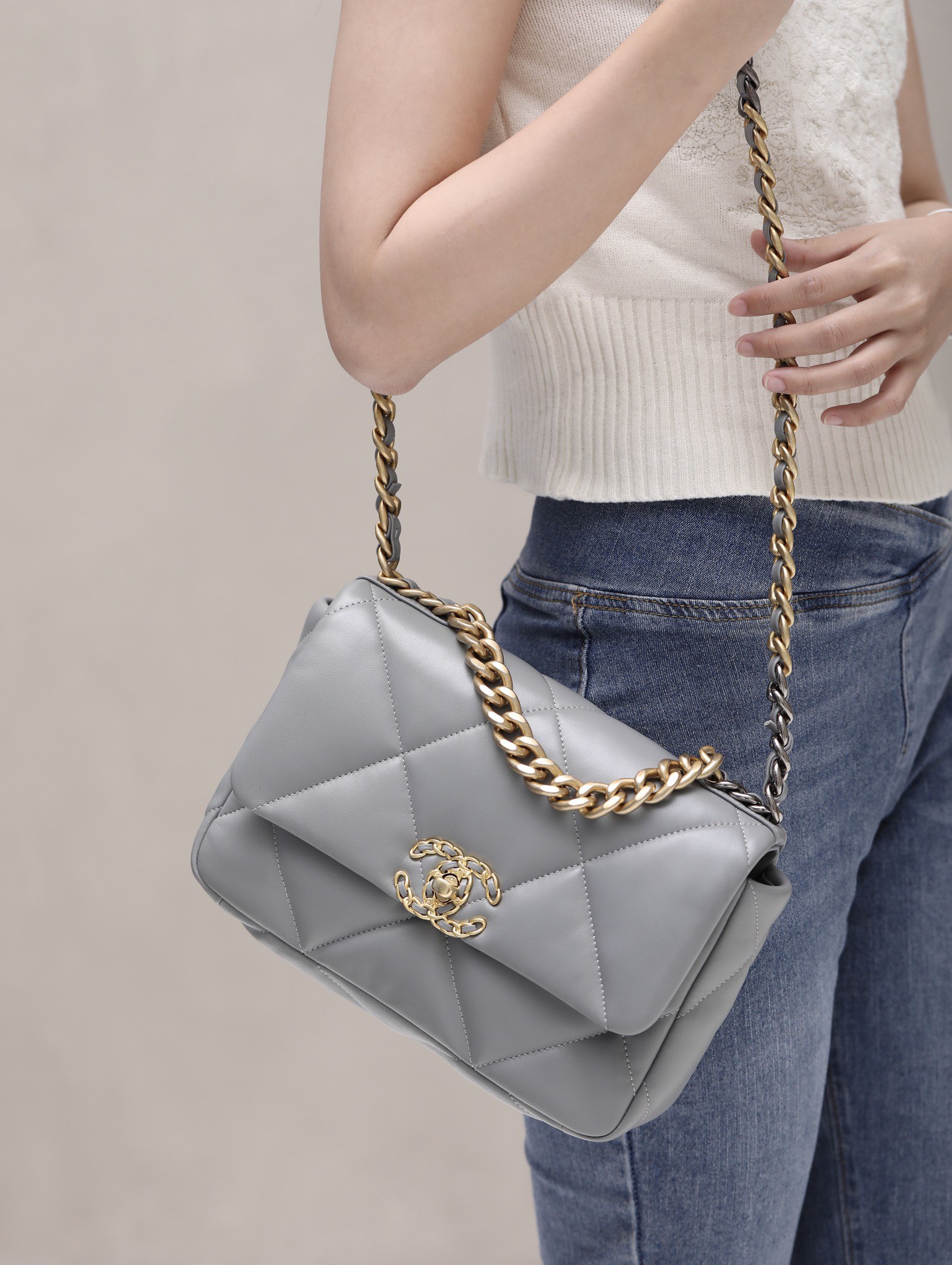 CHANEL 19 Flap Bag Lamb grey