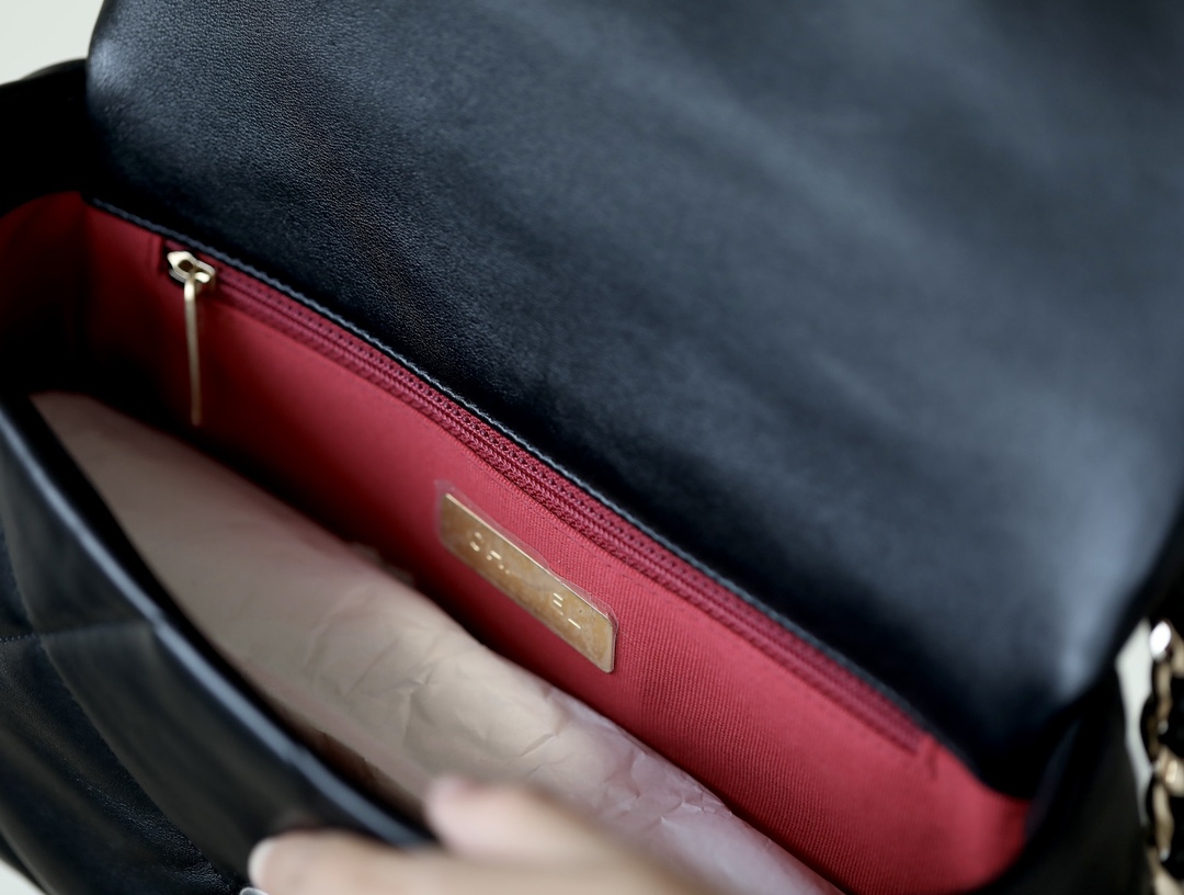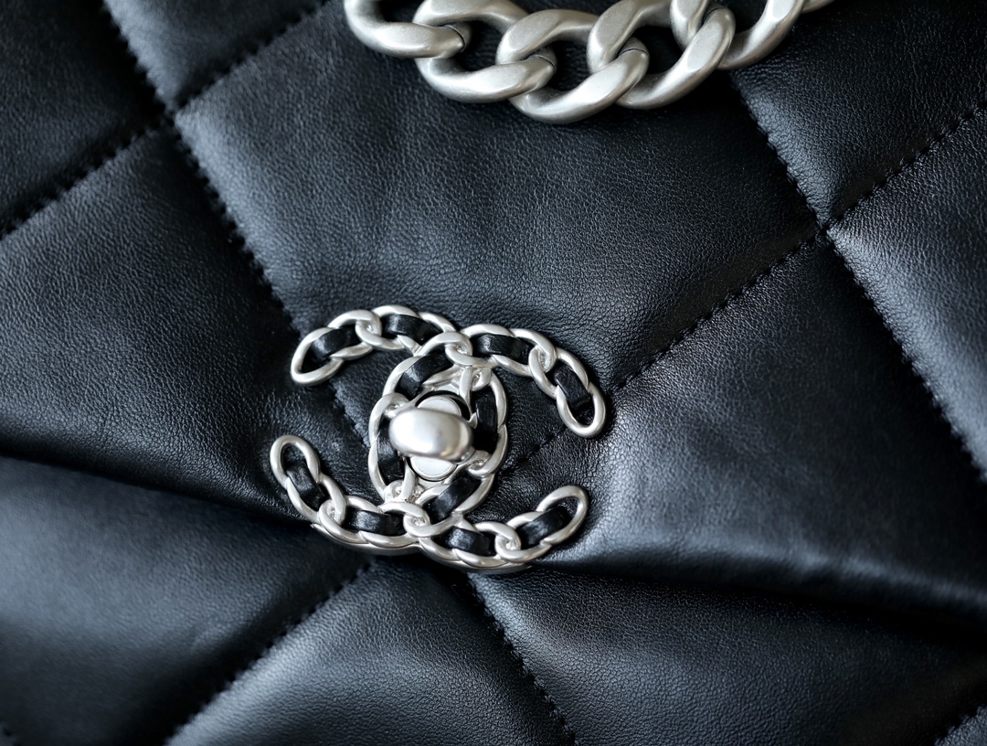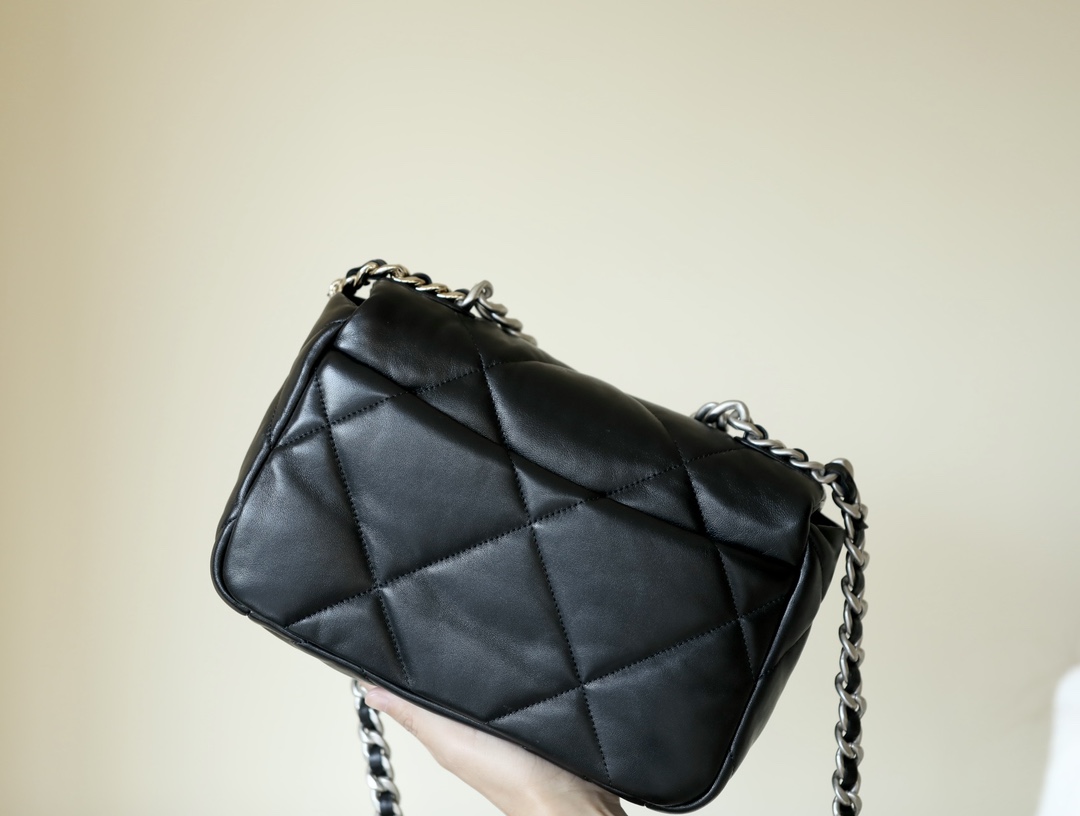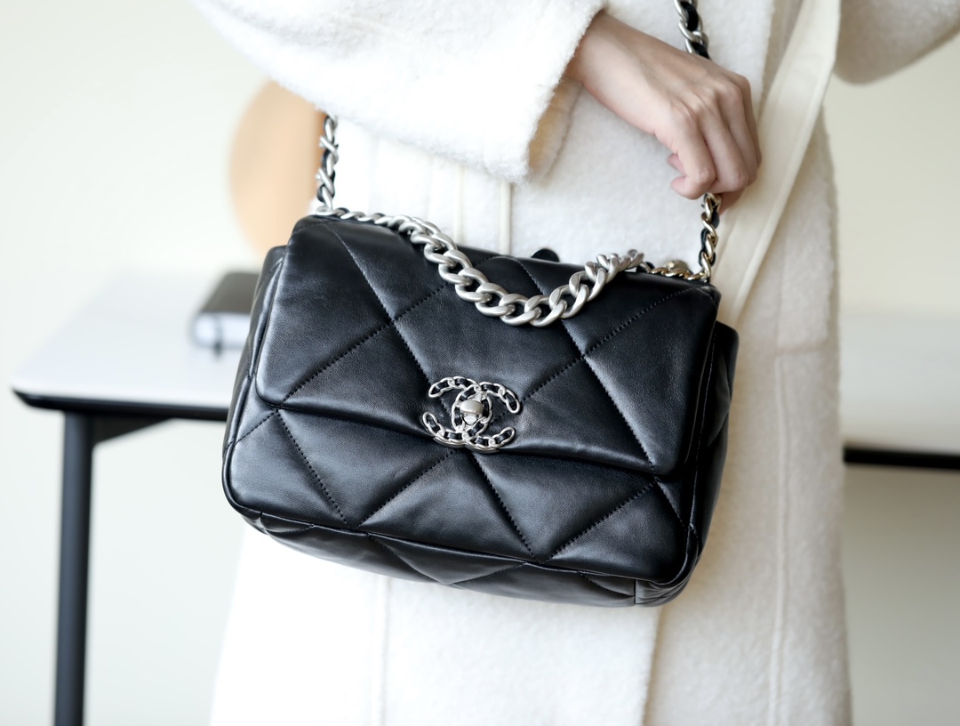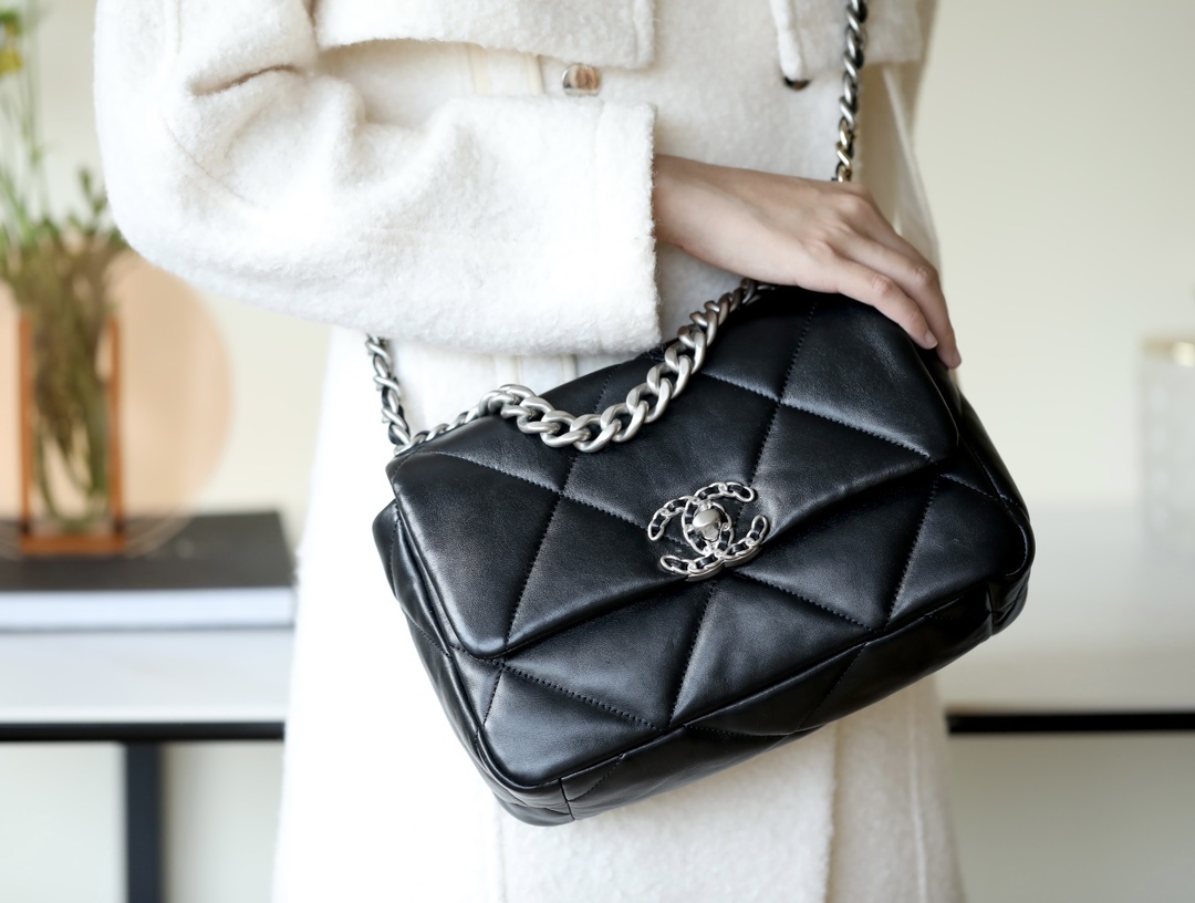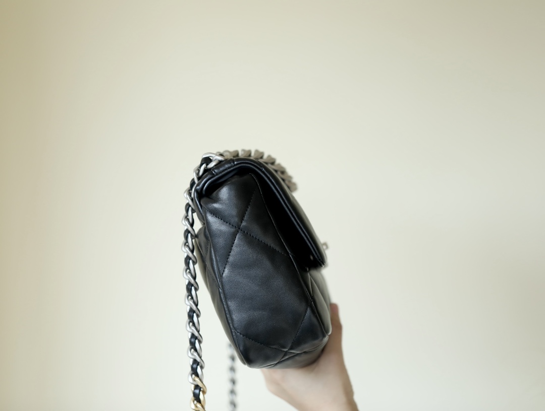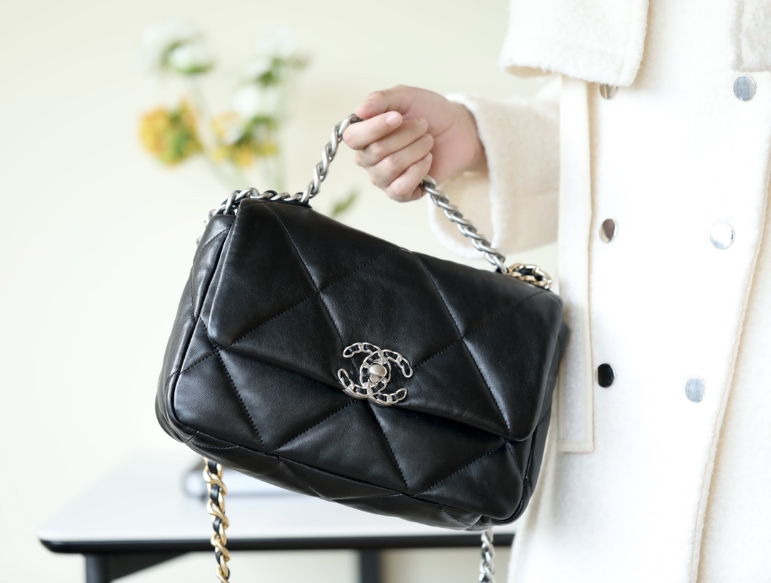 • CHANEL 19 Handbag Lambskin, Gold-Tone, Silver-Tone & Ruthenium-Finish Metal black