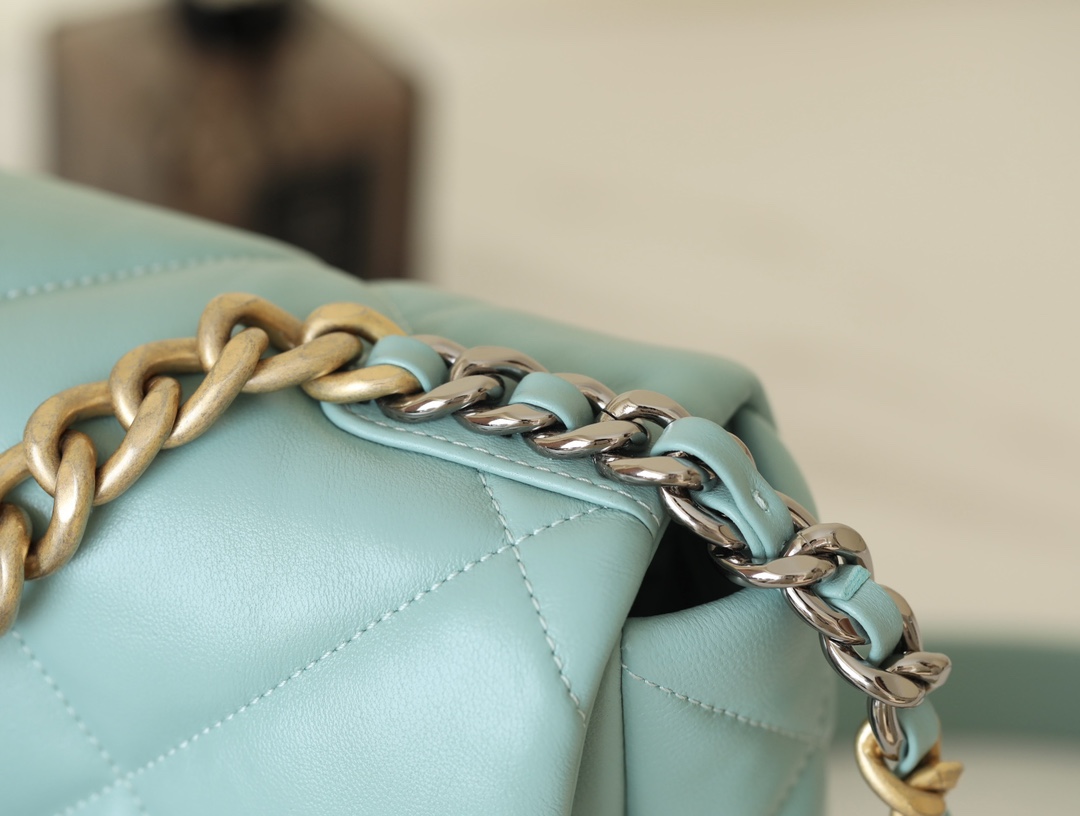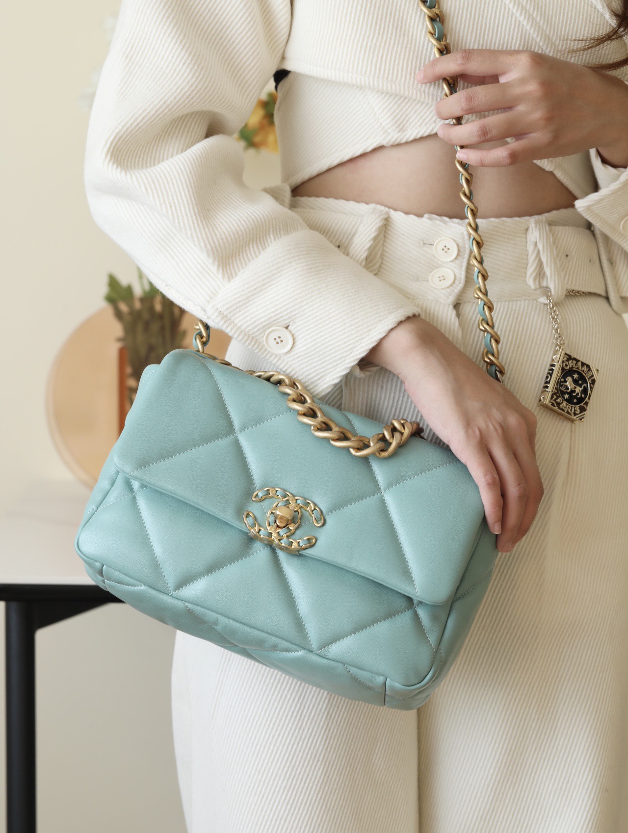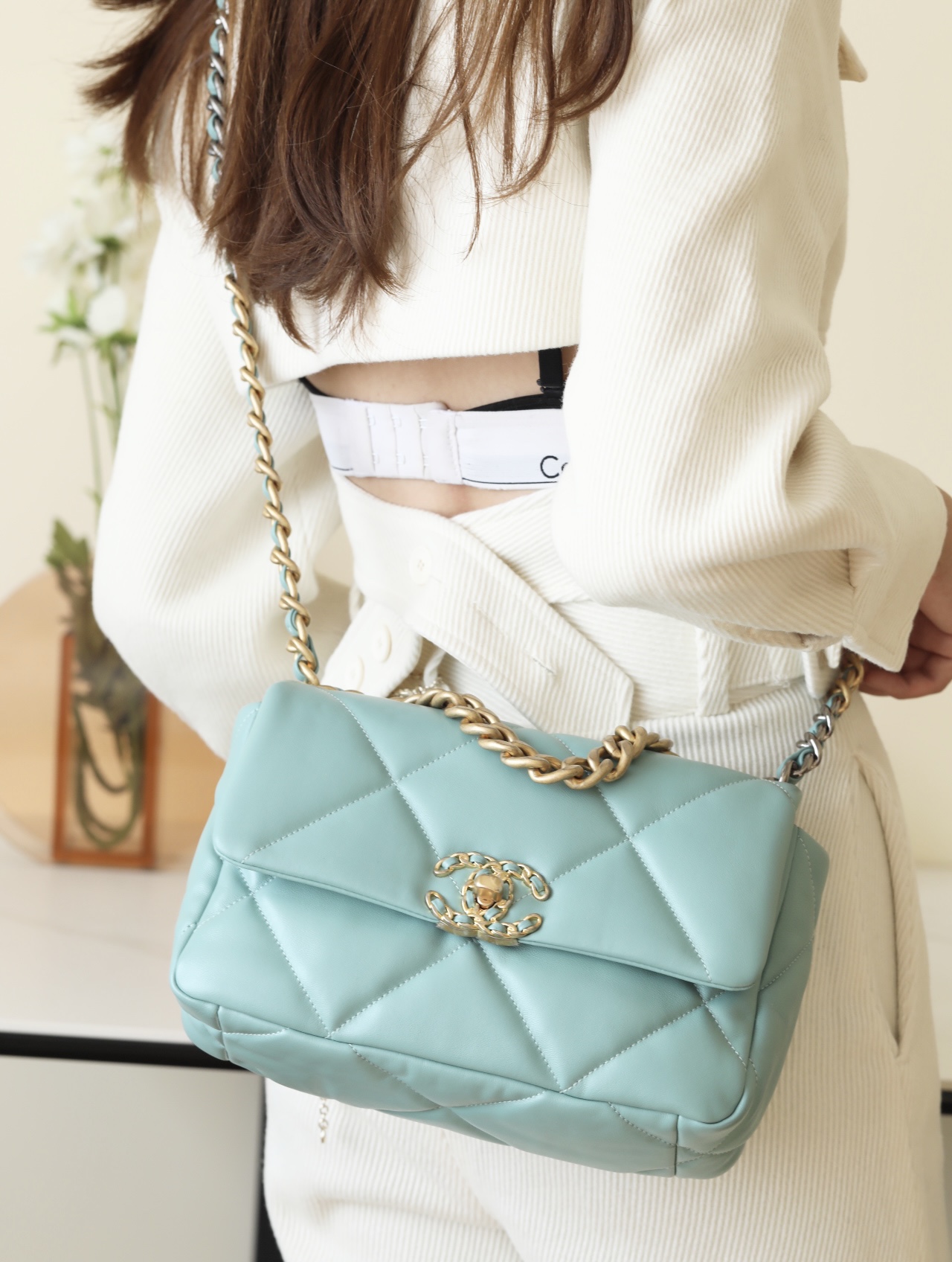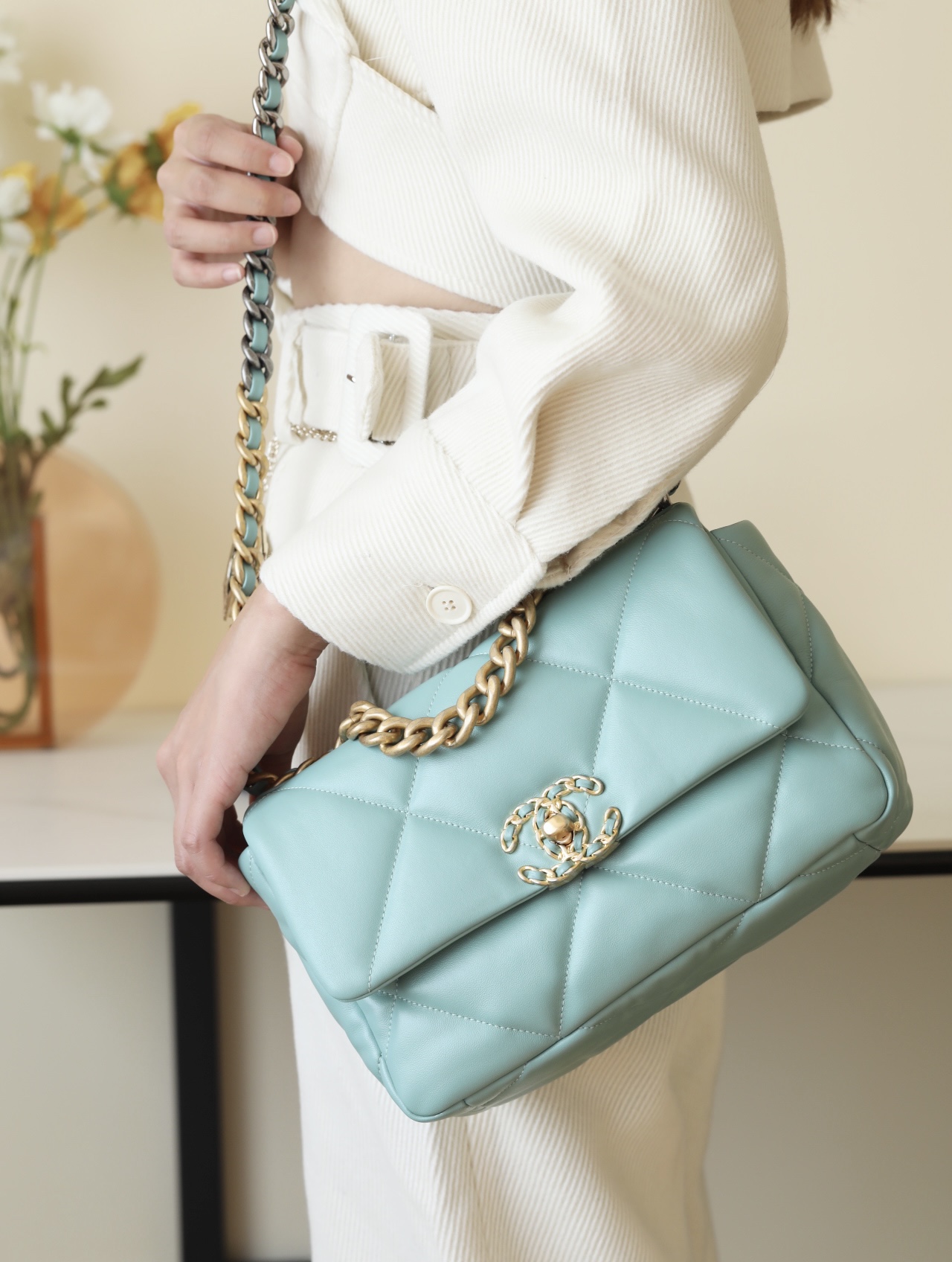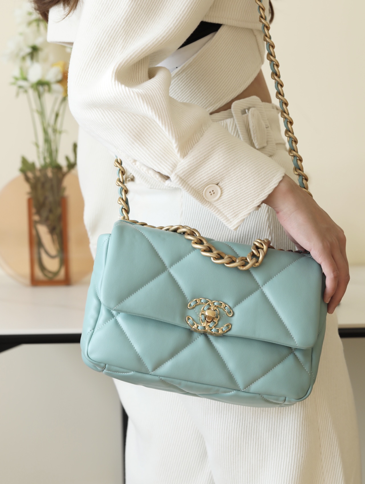 • CHANEL 19 Handbag Lambskin, Gold-Tone, Silver-Tone & Ruthenium-Finish Metal Mint Green