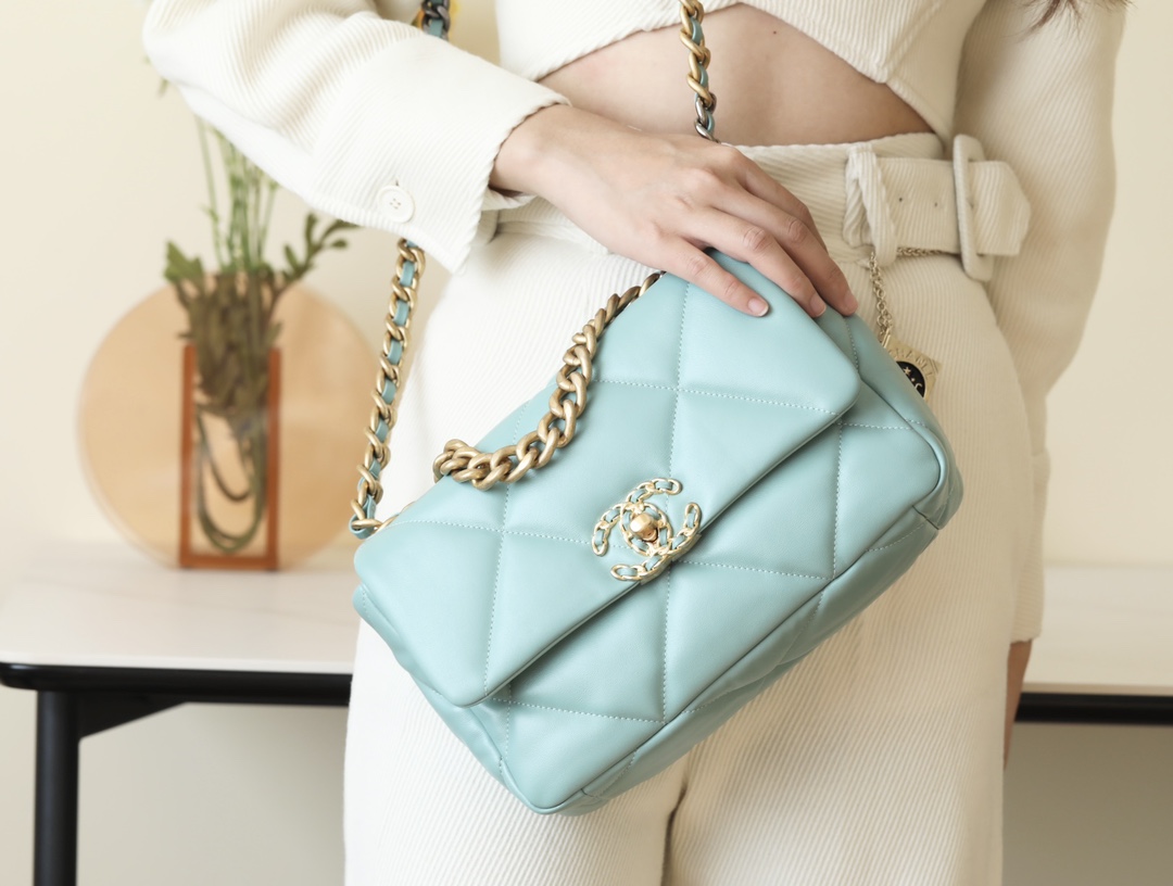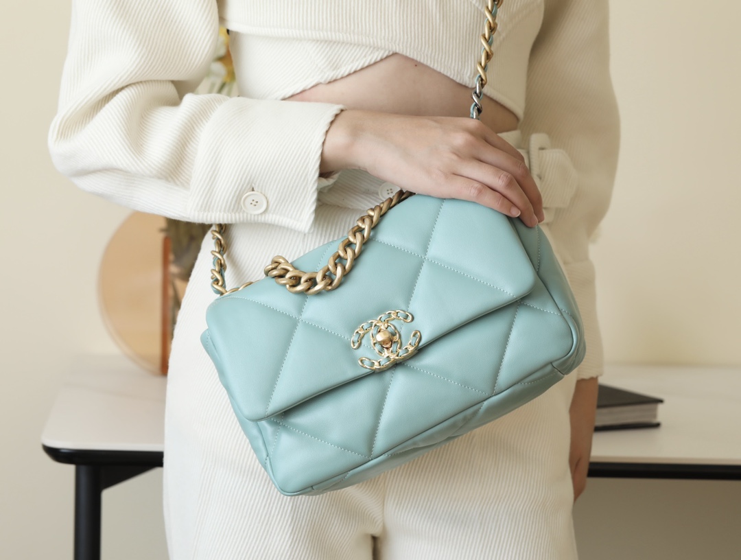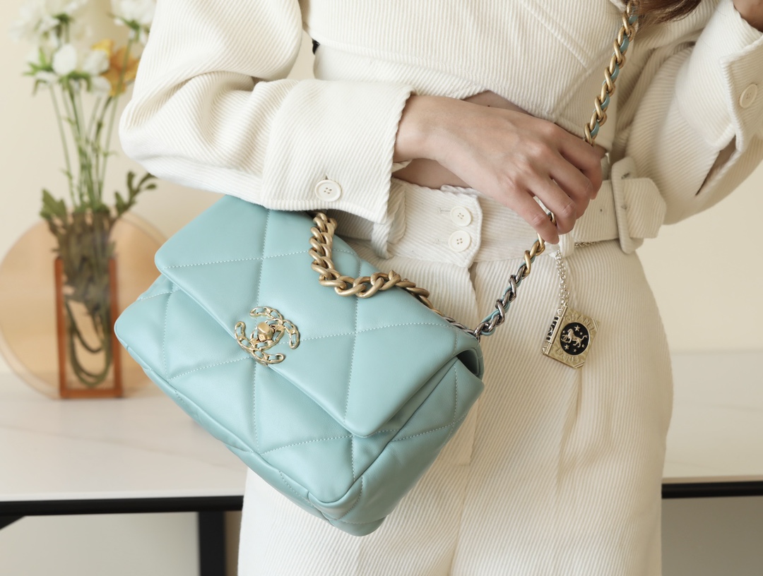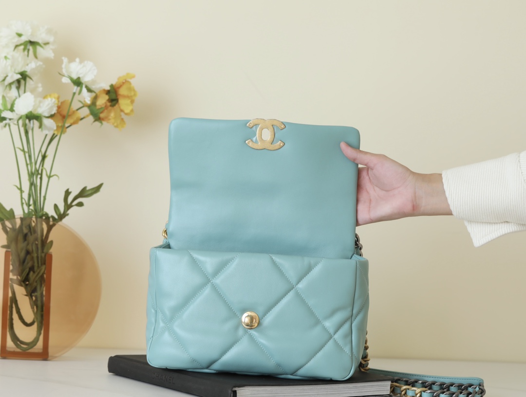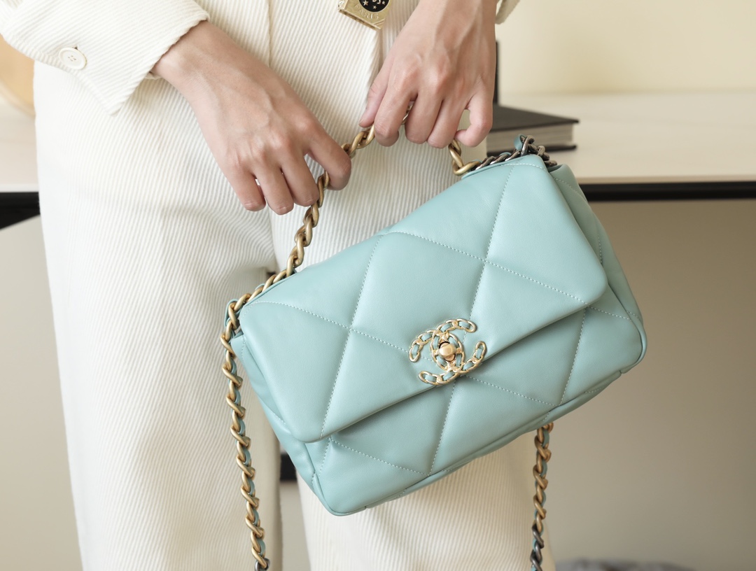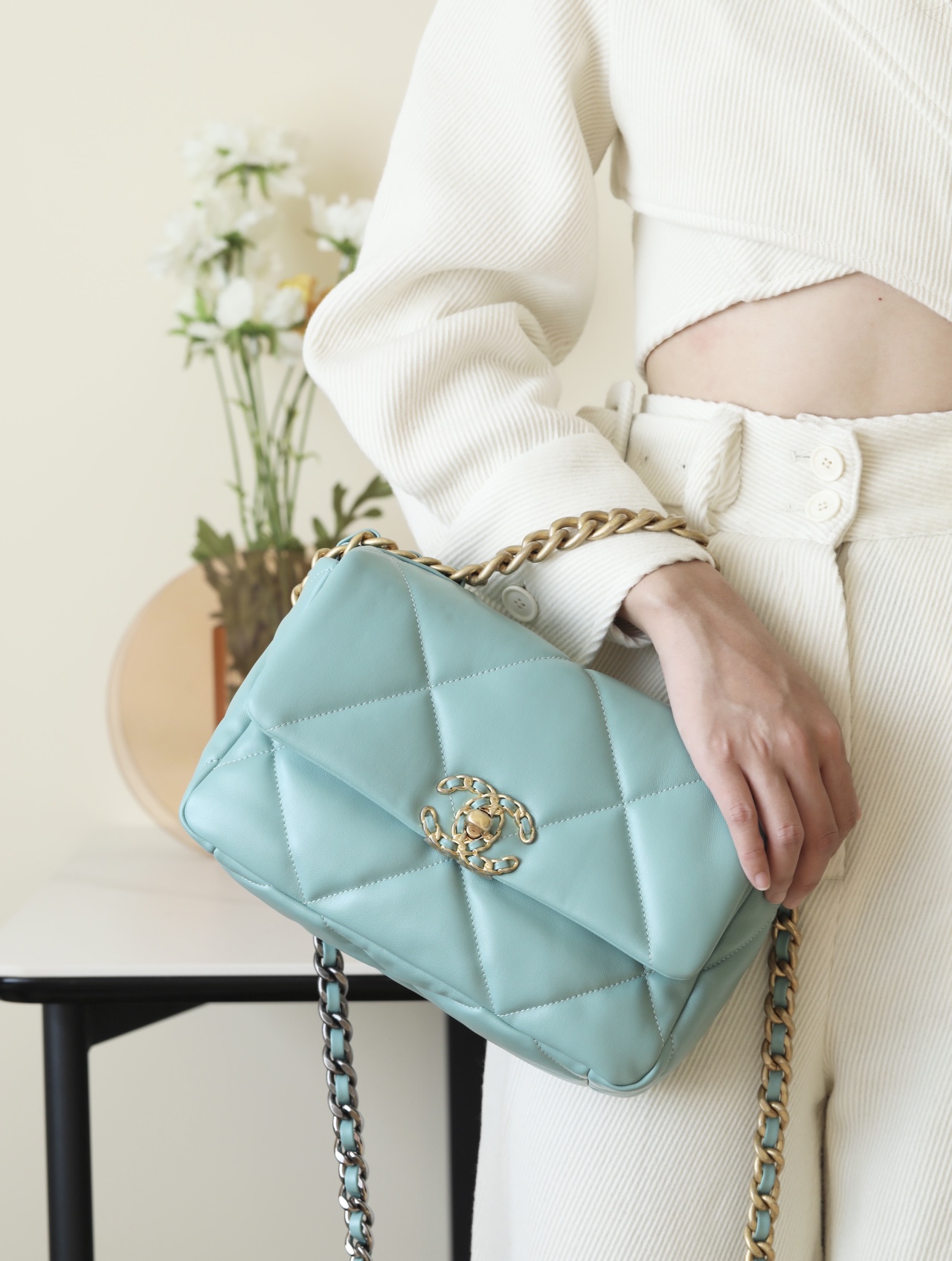 • CHANEL 19 Handbag Lambskin, Gold-Tone, Silver-Tone & Ruthenium-Finish Metal Mint Green