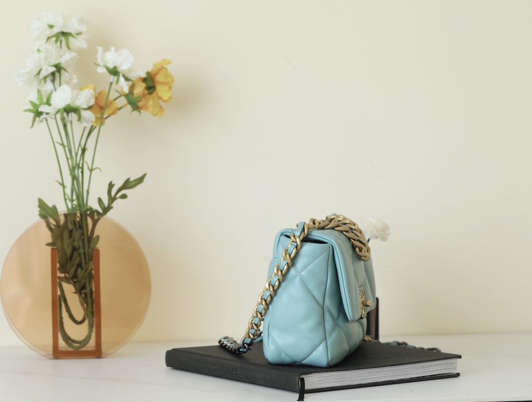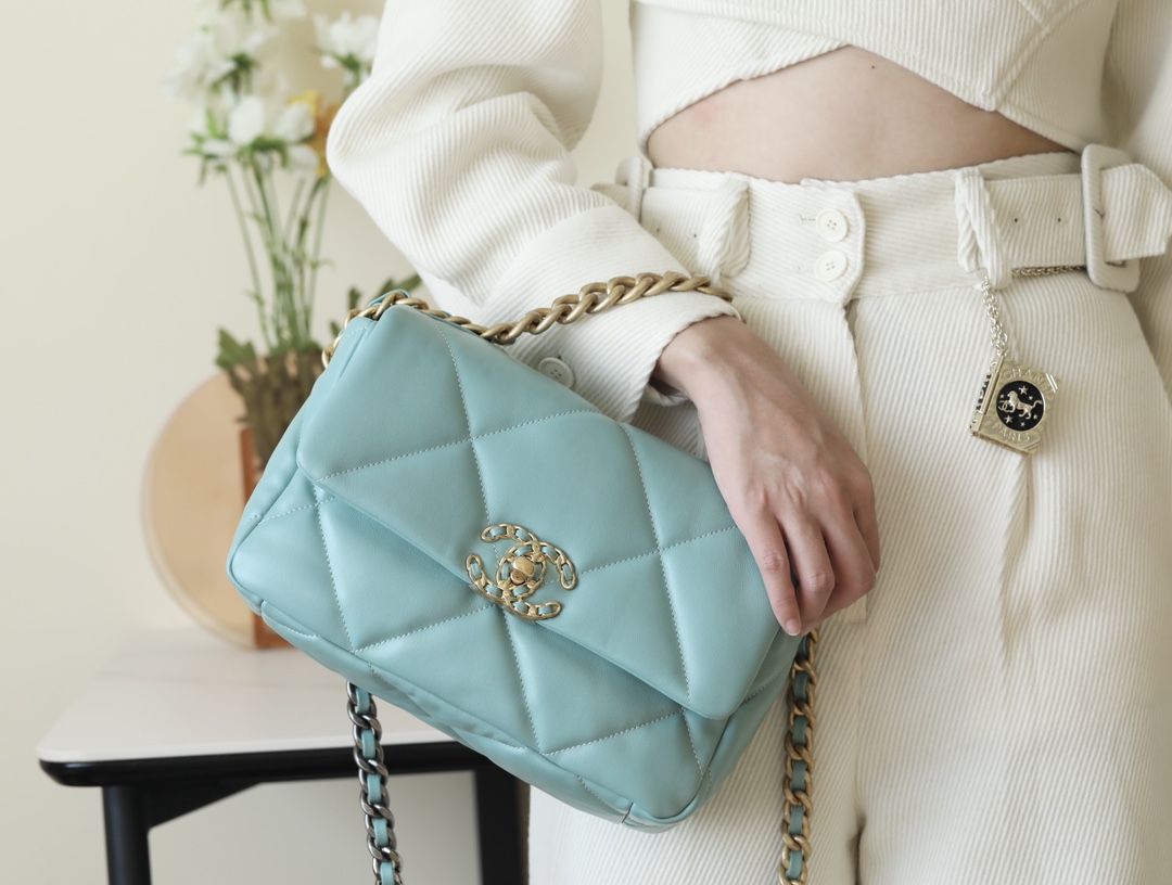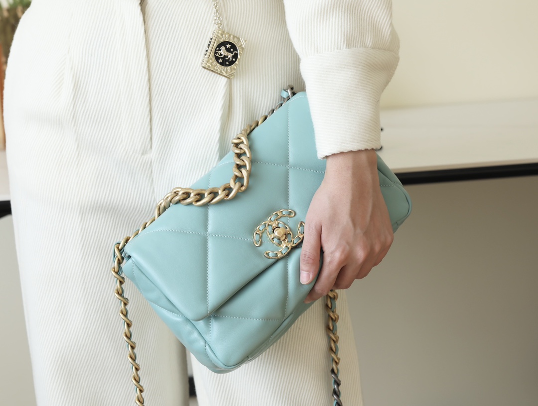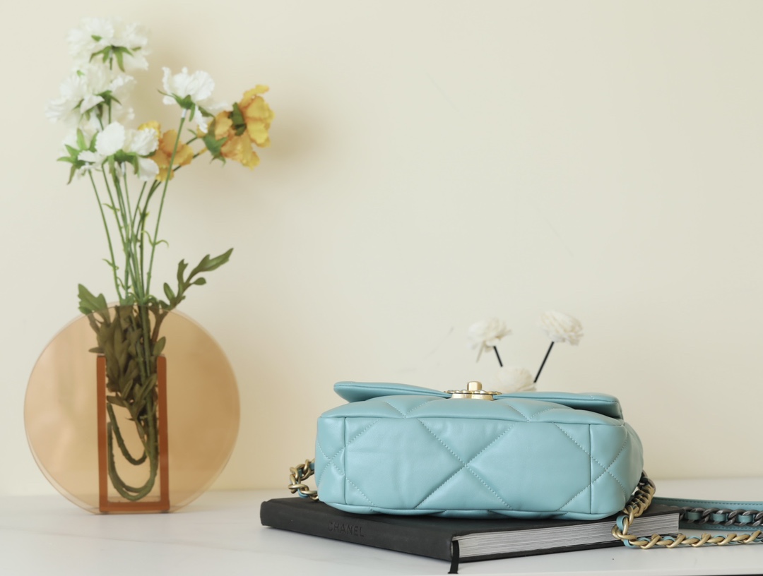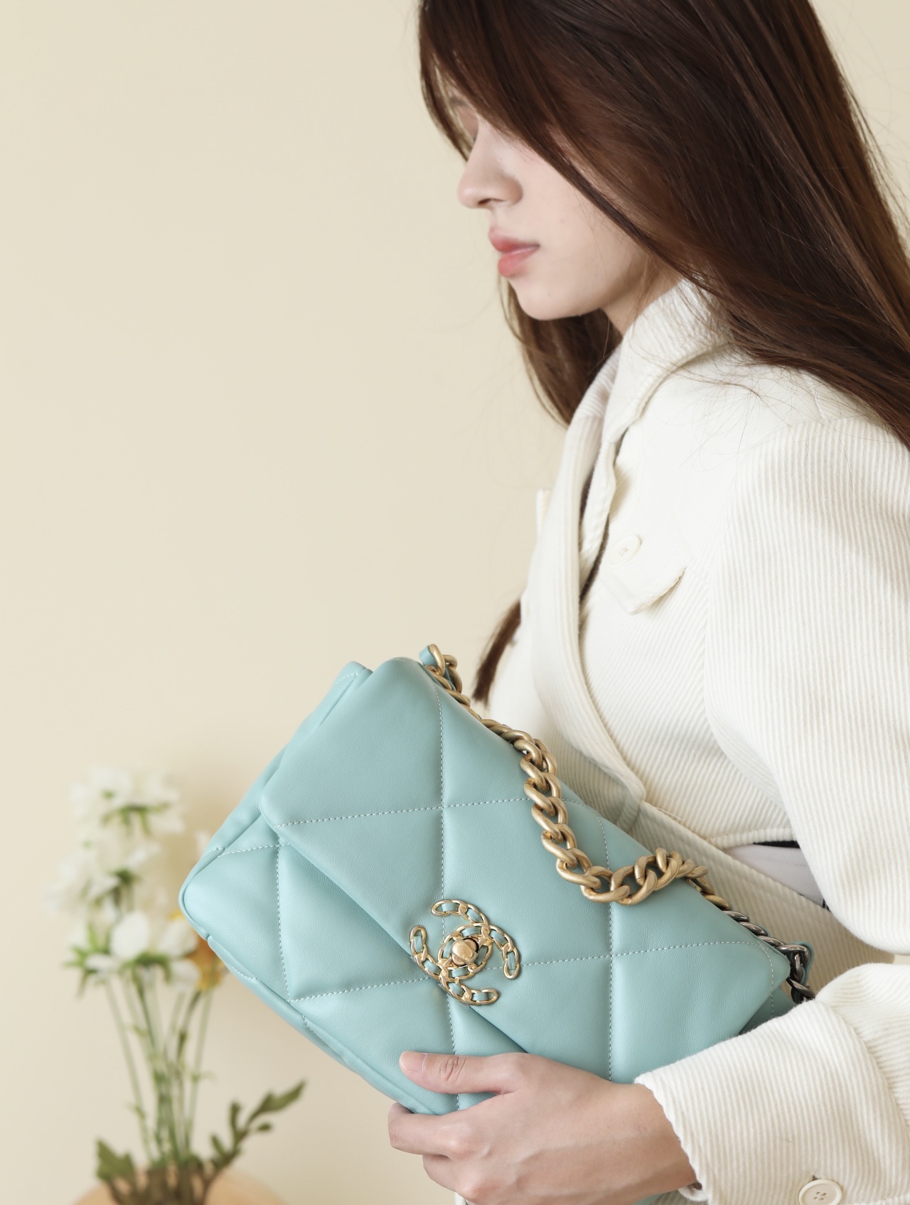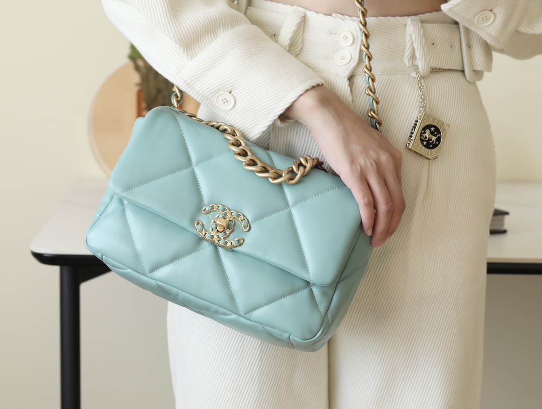 • CHANEL 19 Handbag Lambskin, Gold-Tone, Silver-Tone & Ruthenium-Finish Metal Mint Green