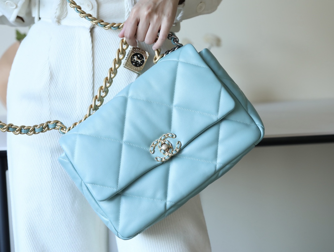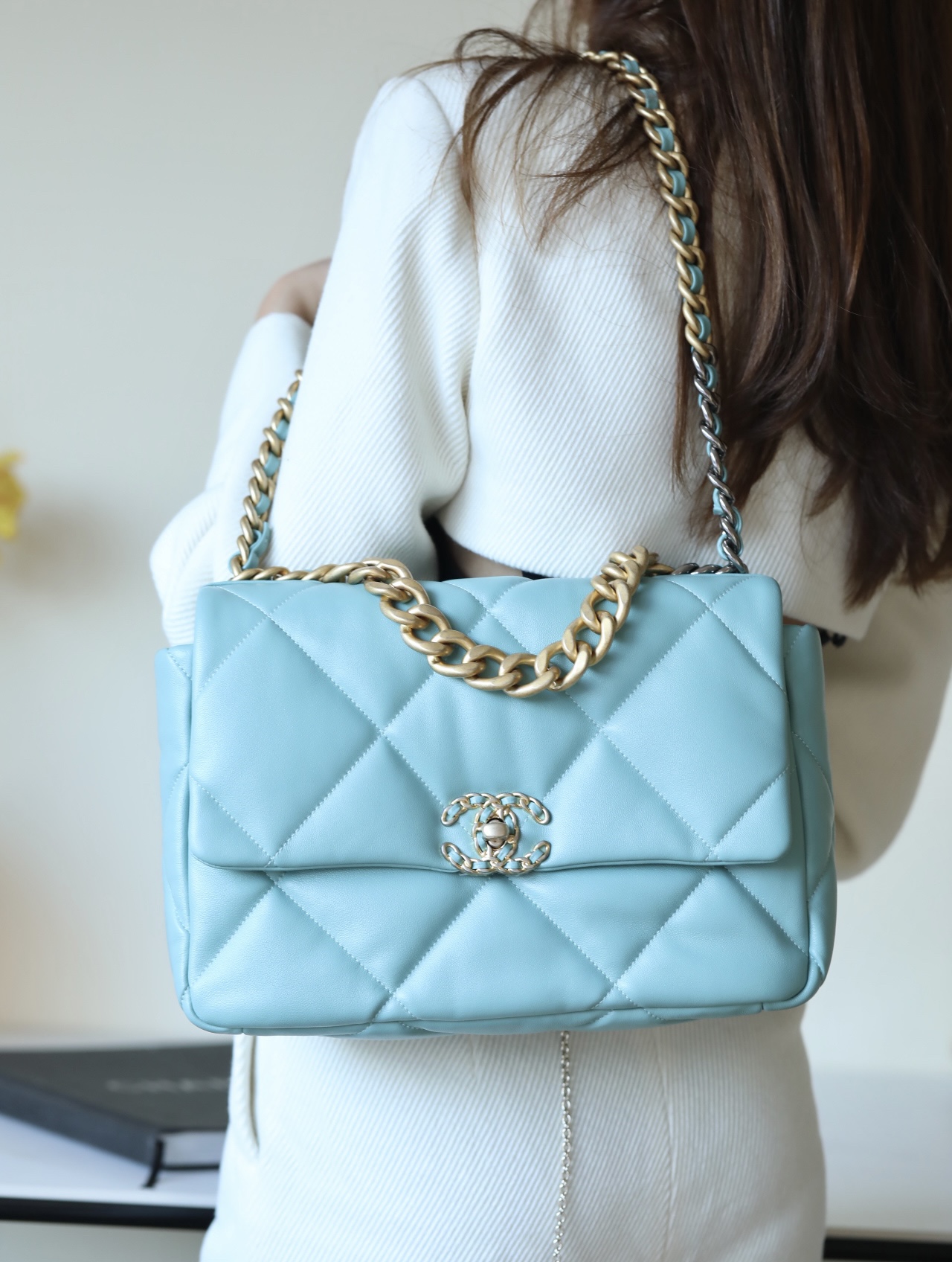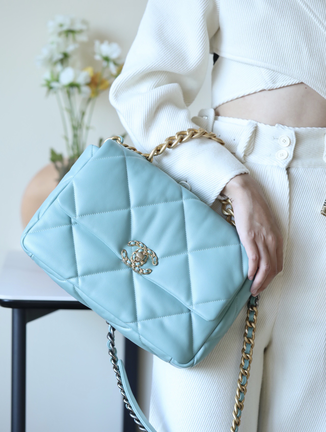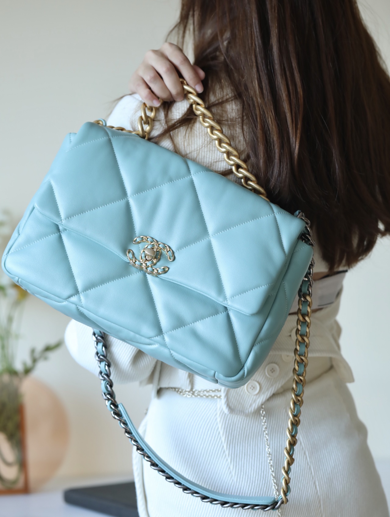 • CHANEL 19 Handbag Lambskin, Gold-Tone, Silver-Tone & Ruthenium-Finish Metal Mint Green