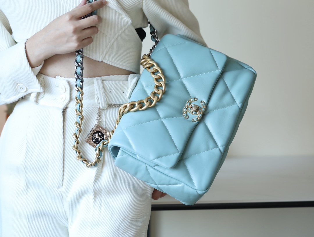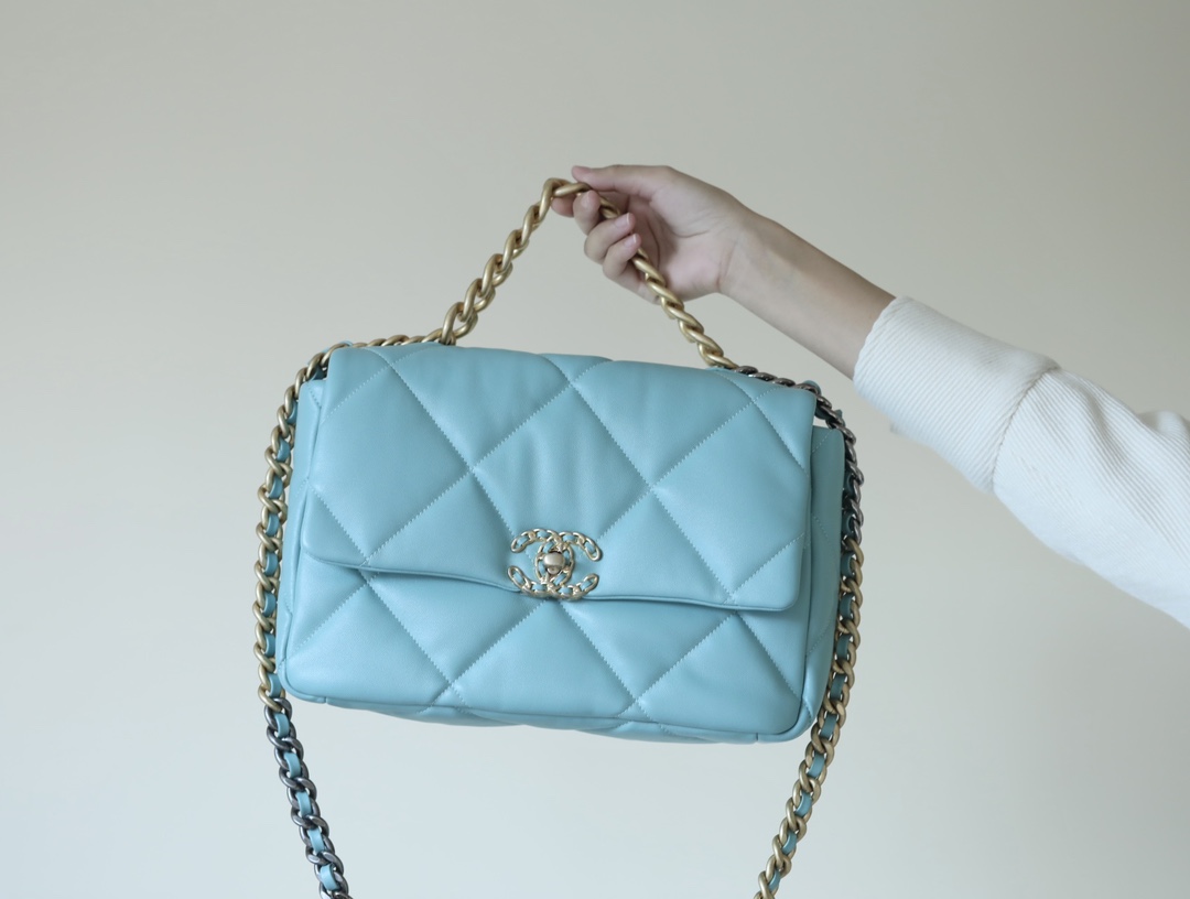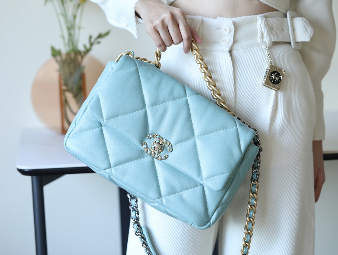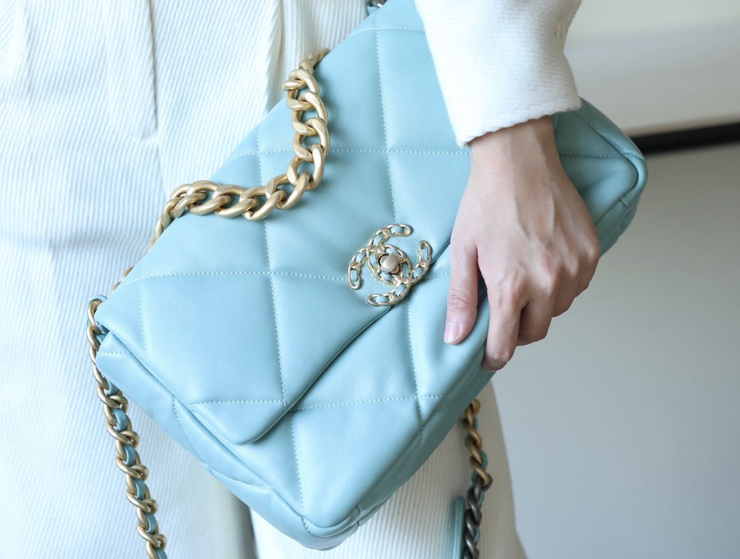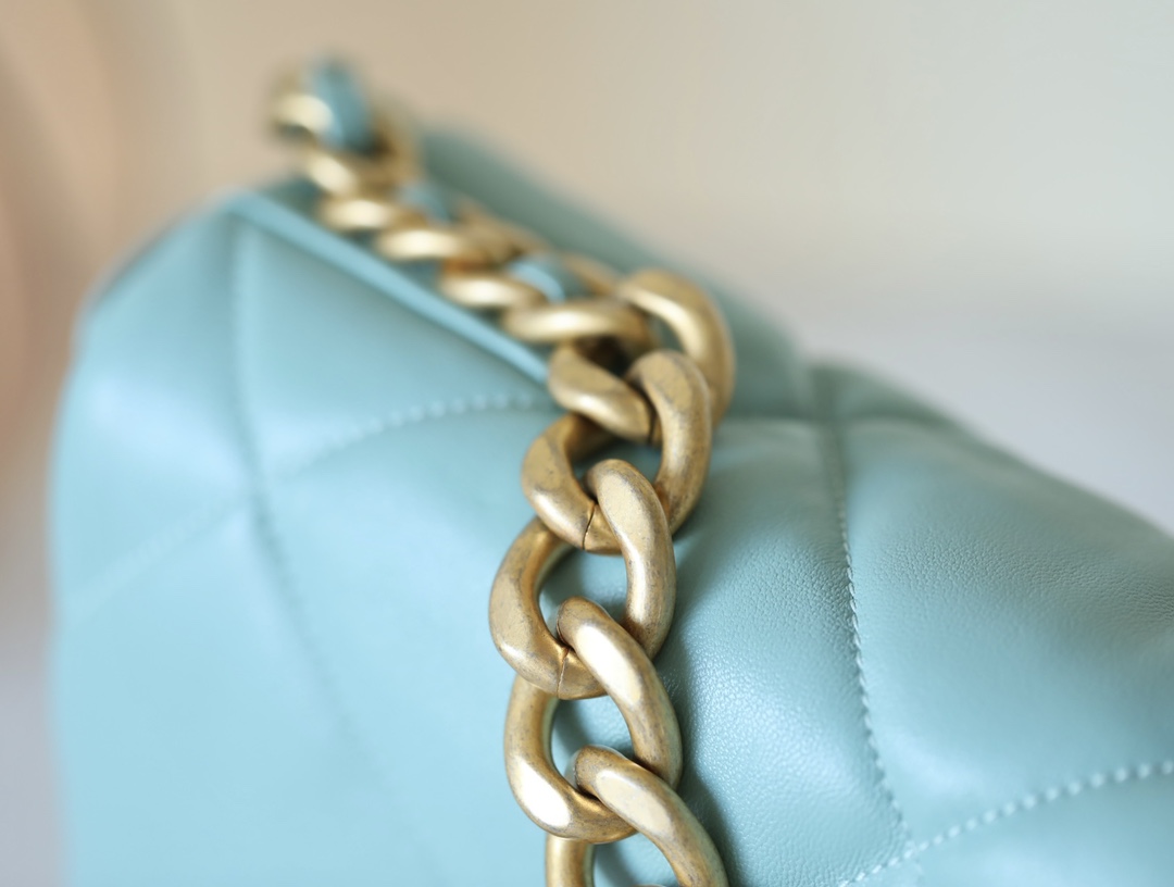 • CHANEL 19 Handbag Lambskin, Gold-Tone, Silver-Tone & Ruthenium-Finish Metal Mint Green