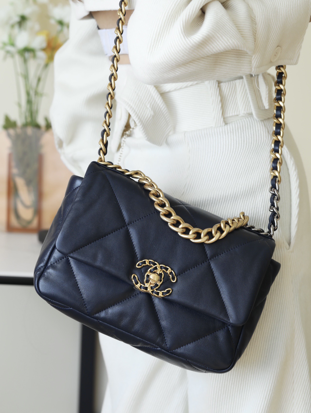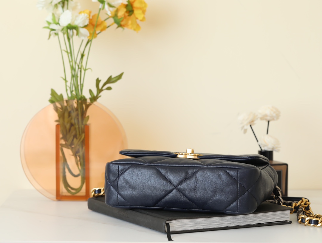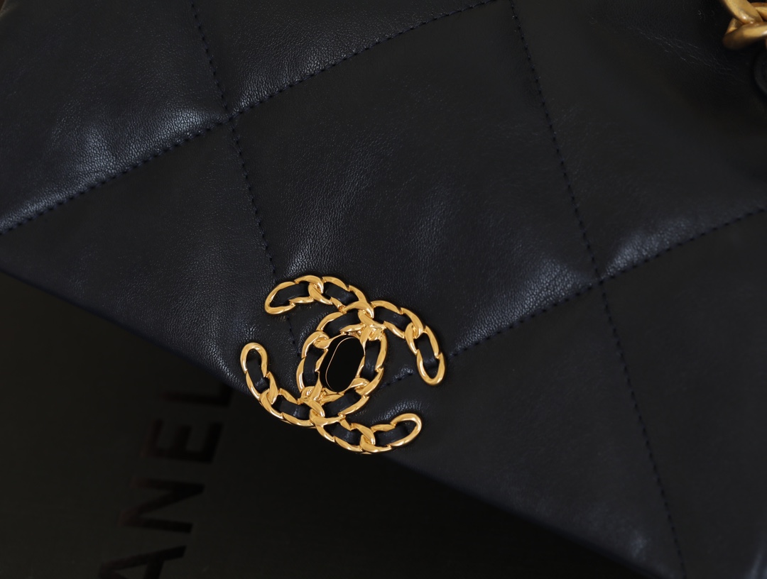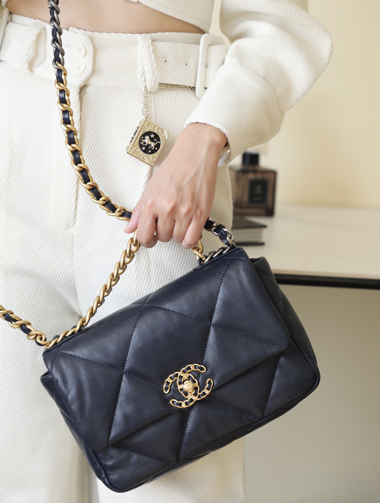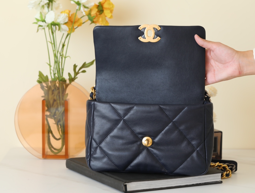• CHANEL 19 Handbag Lambskin, Gold-Tone, Silver-Tone & Ruthenium-Finish Metal navy blue