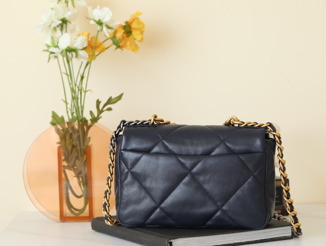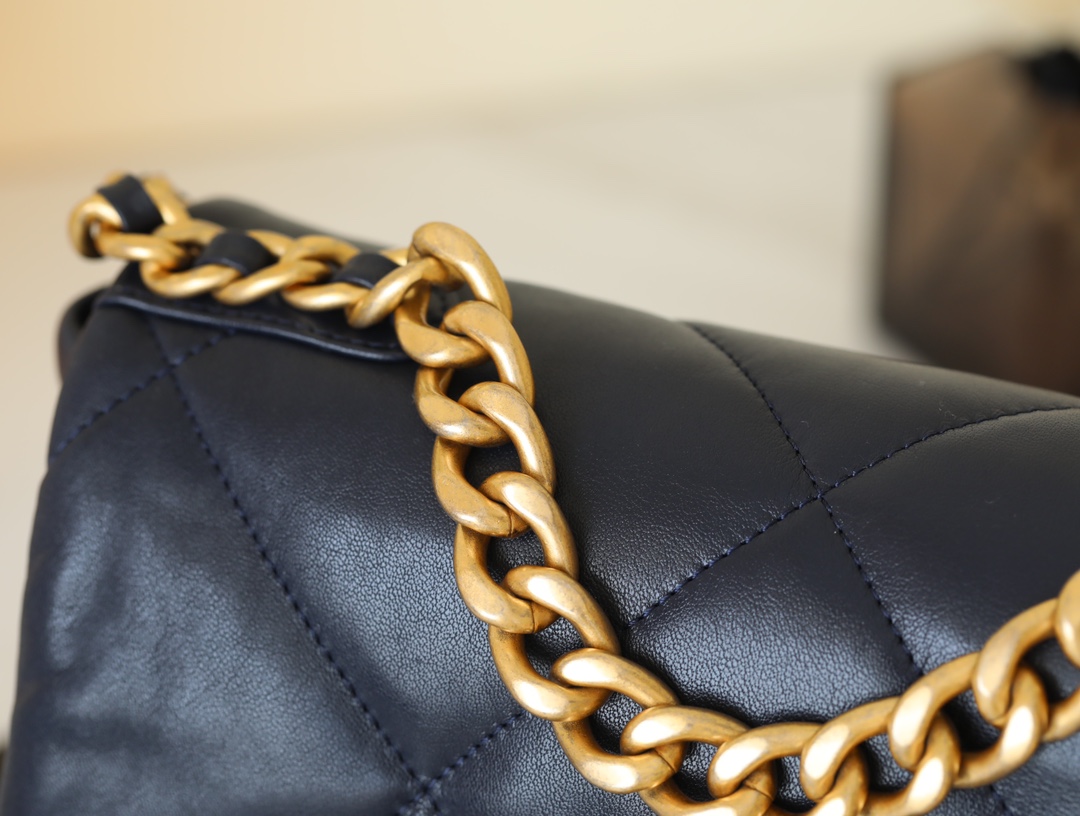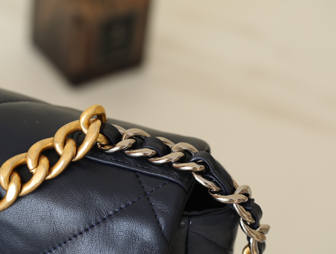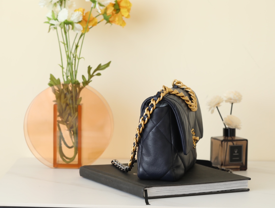 • CHANEL 19 Handbag Lambskin, Gold-Tone, Silver-Tone & Ruthenium-Finish Metal navy blue