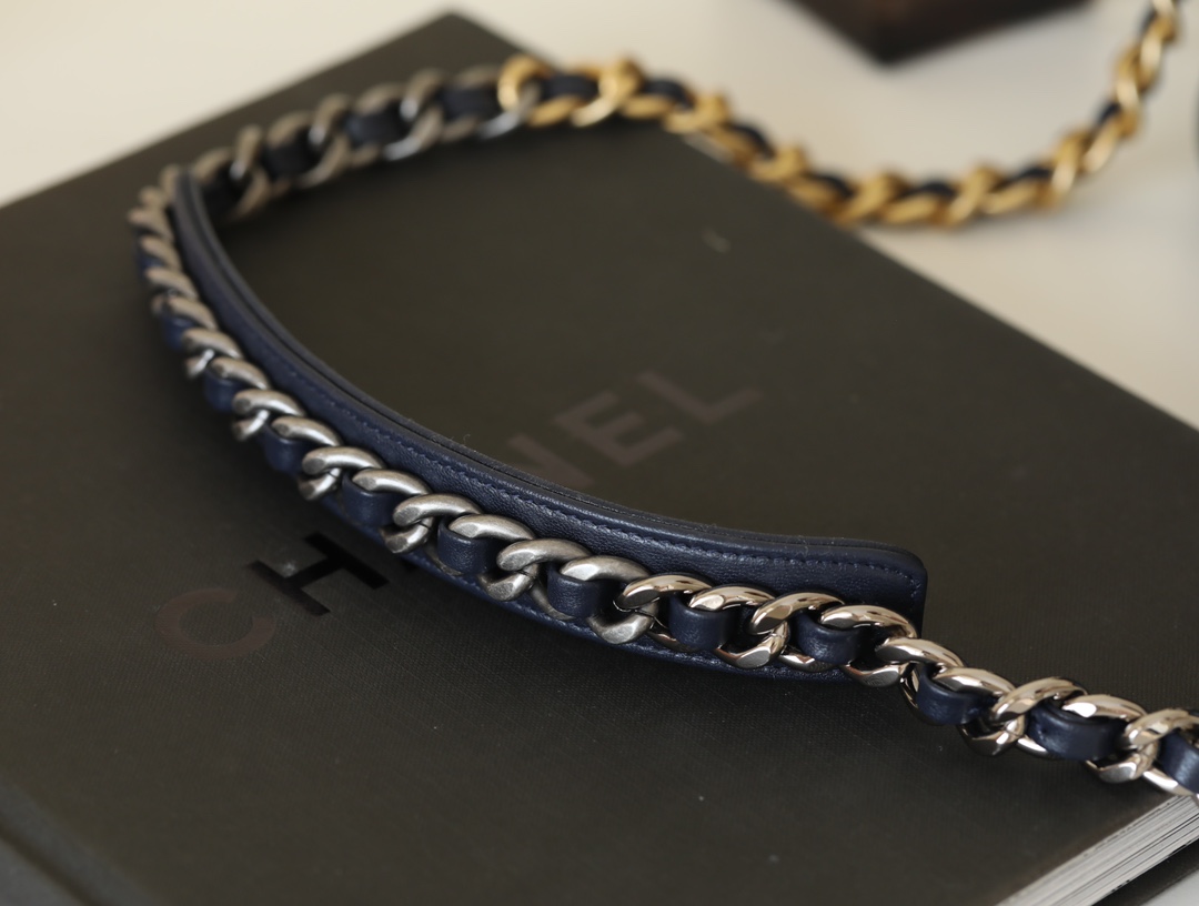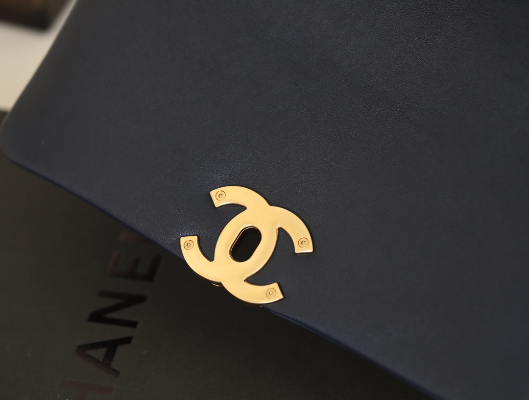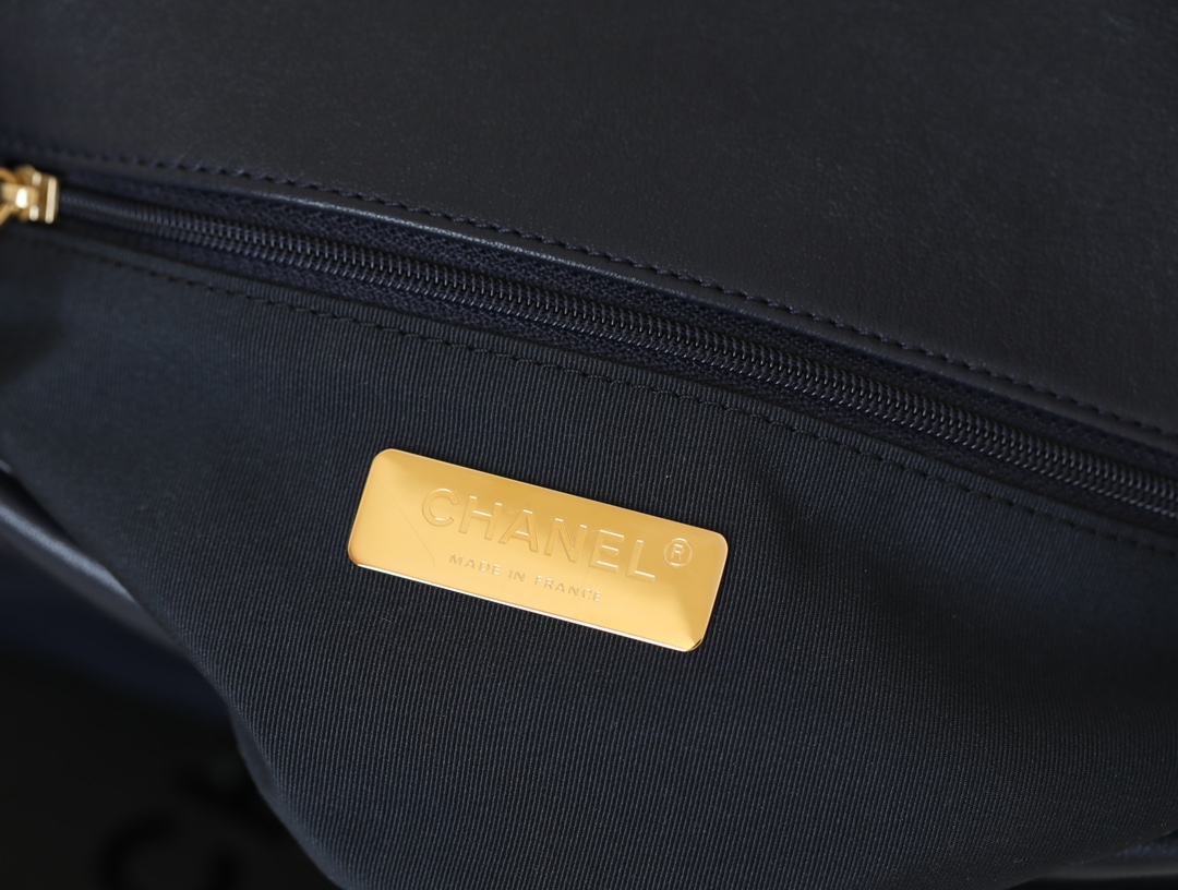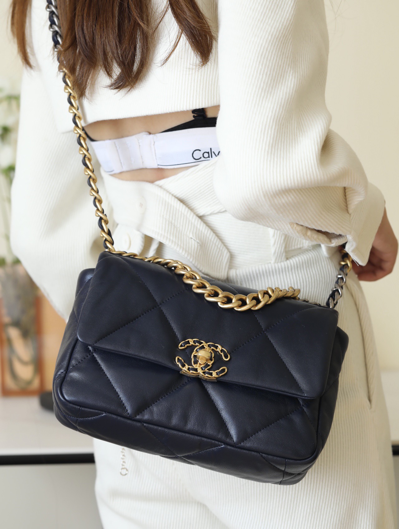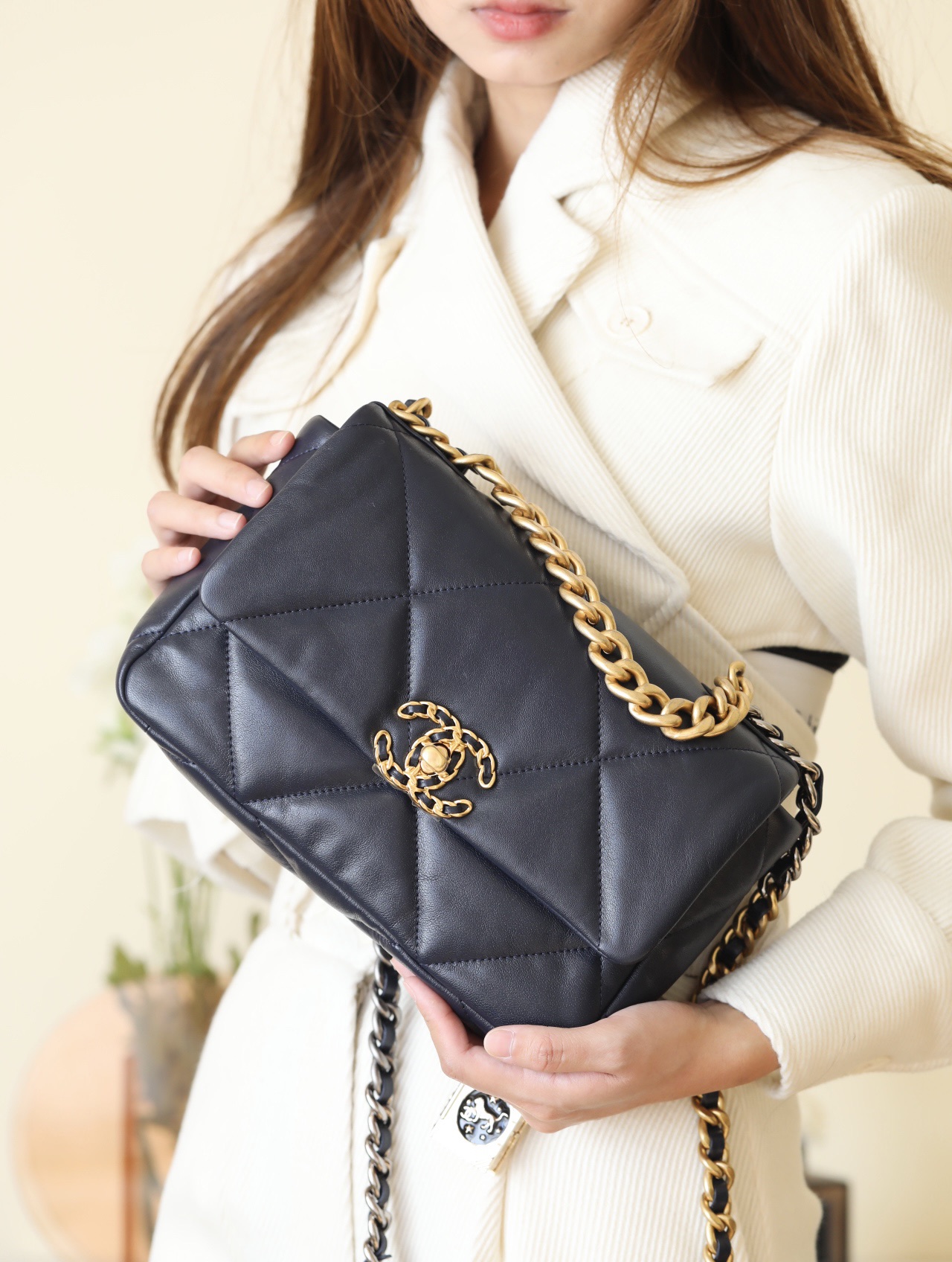 • CHANEL 19 Handbag Lambskin, Gold-Tone, Silver-Tone & Ruthenium-Finish Metal navy blue
