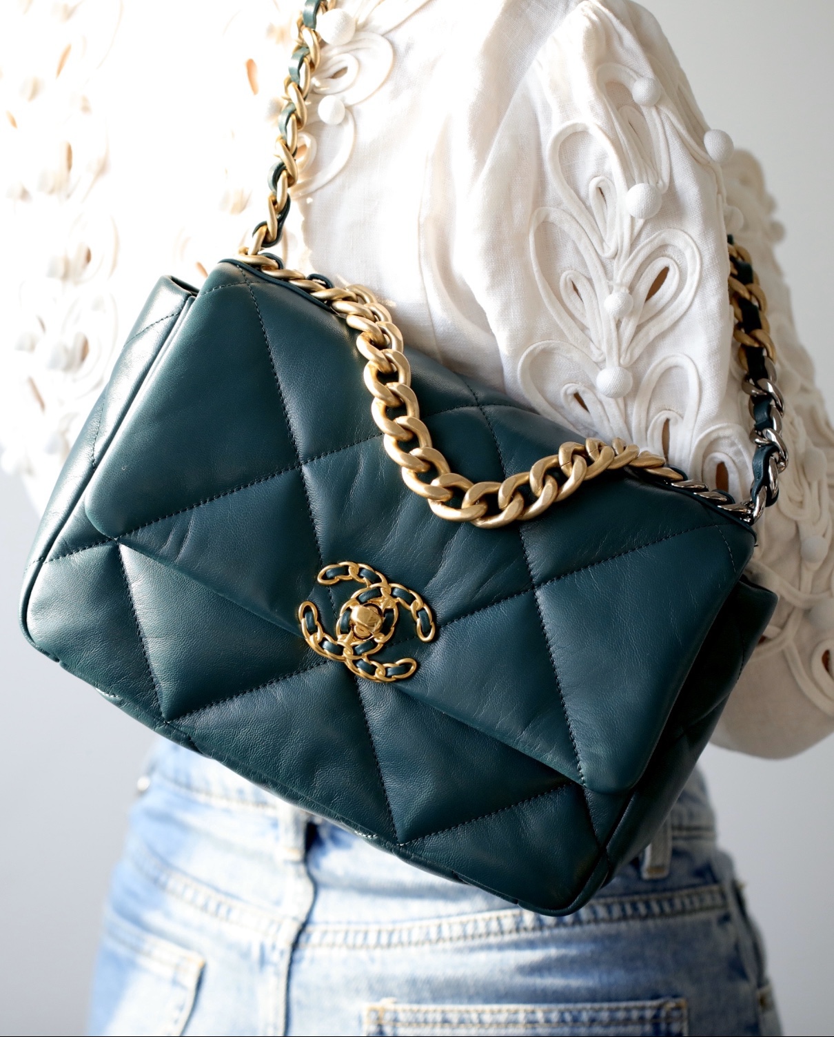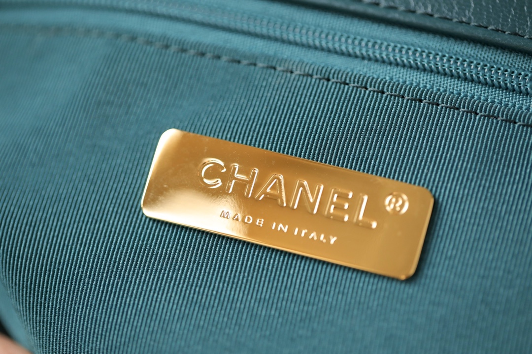 • CHANEL 19 Lambskin Gold Hardware in dark green