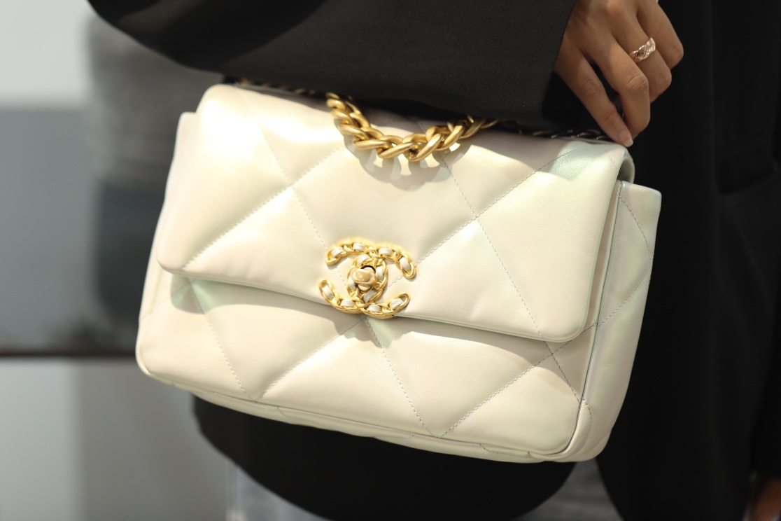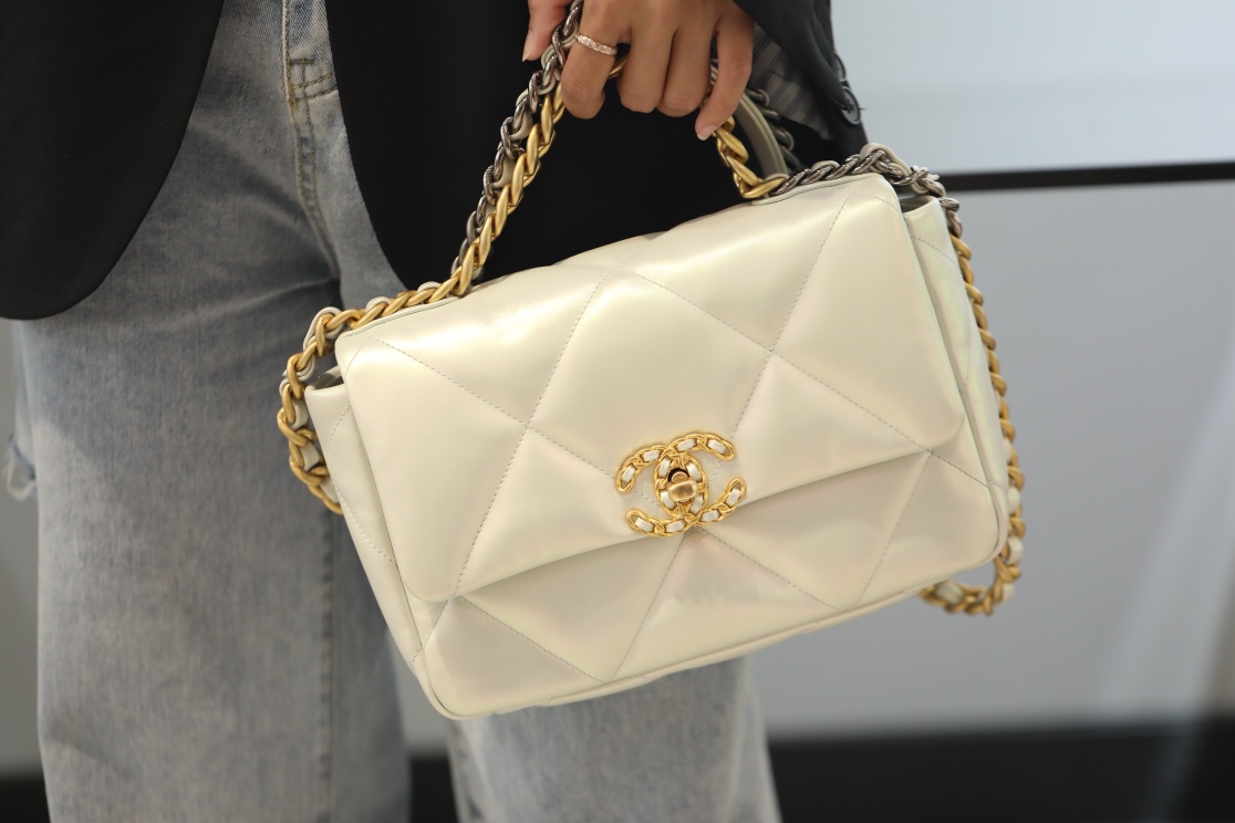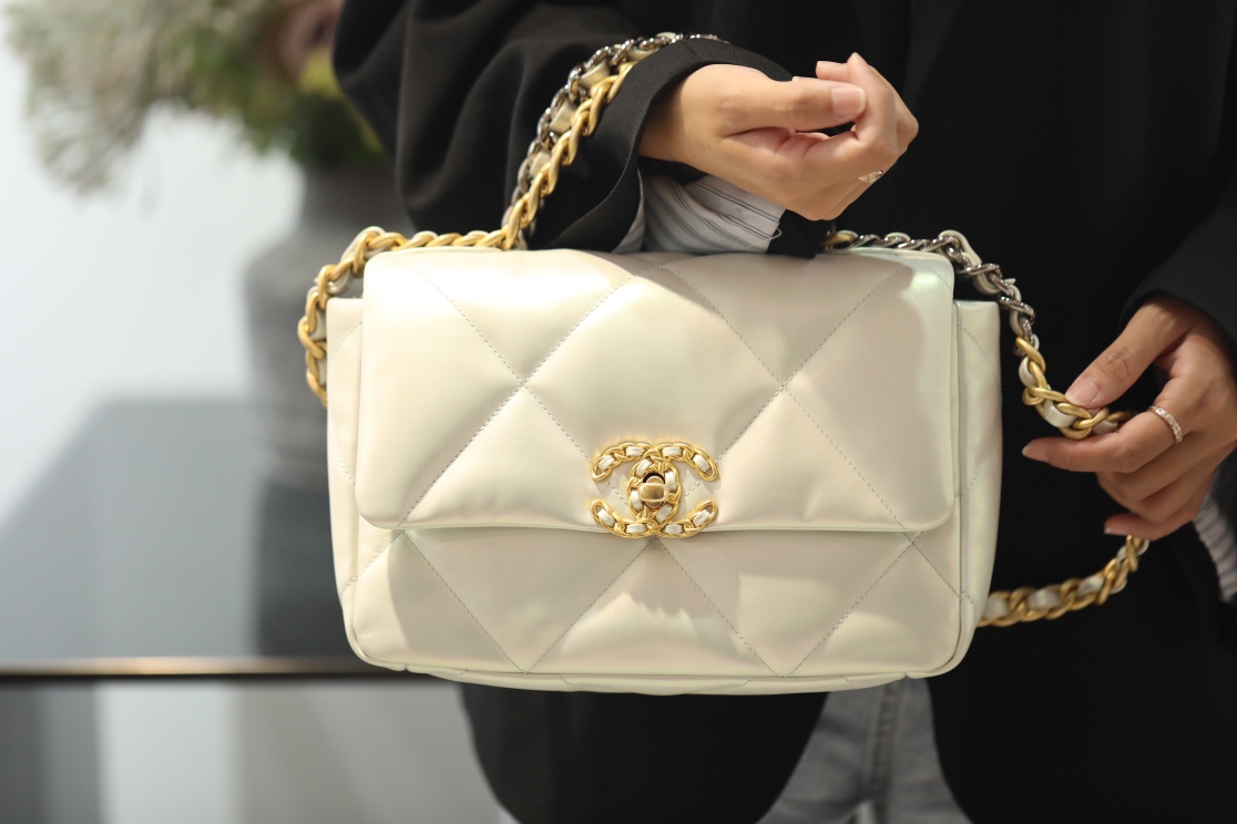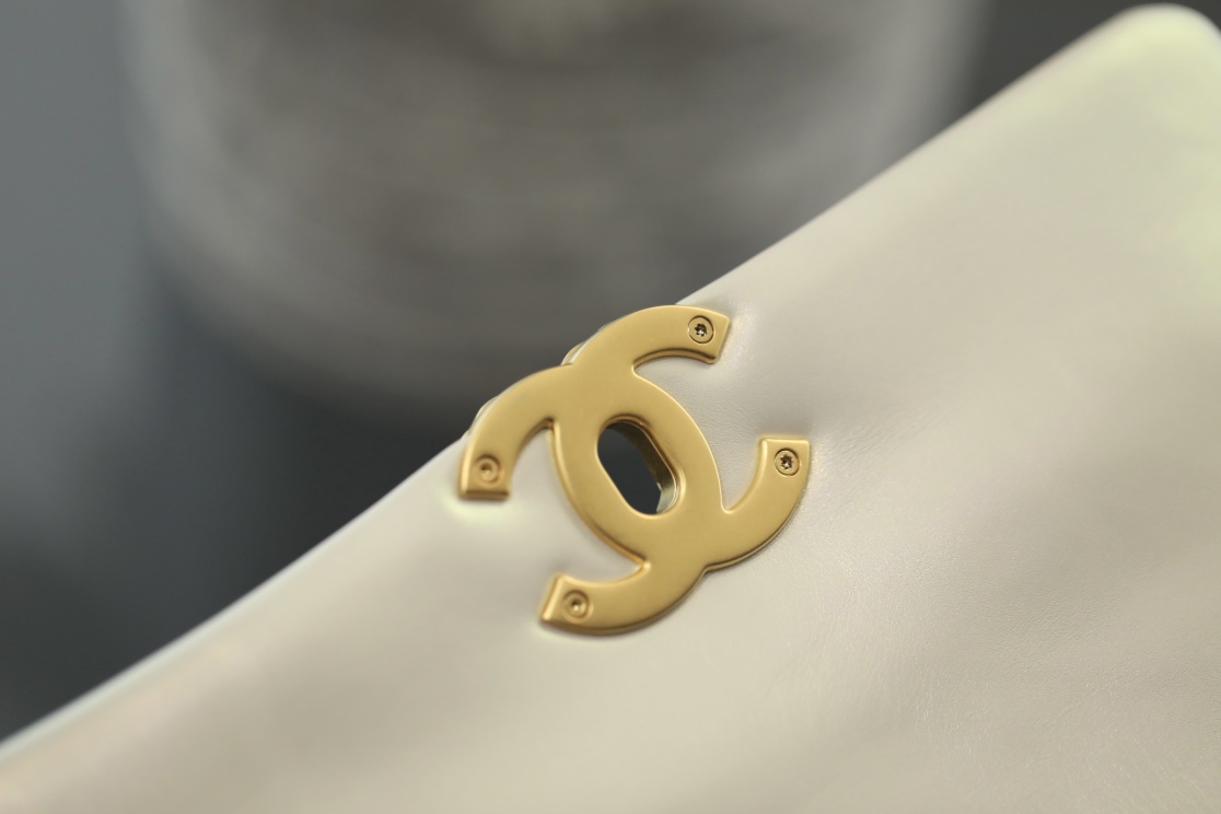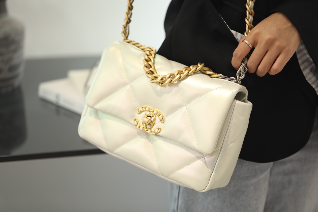 • CHANEL 19 Lambskin Gold Hardware in Pearl White
