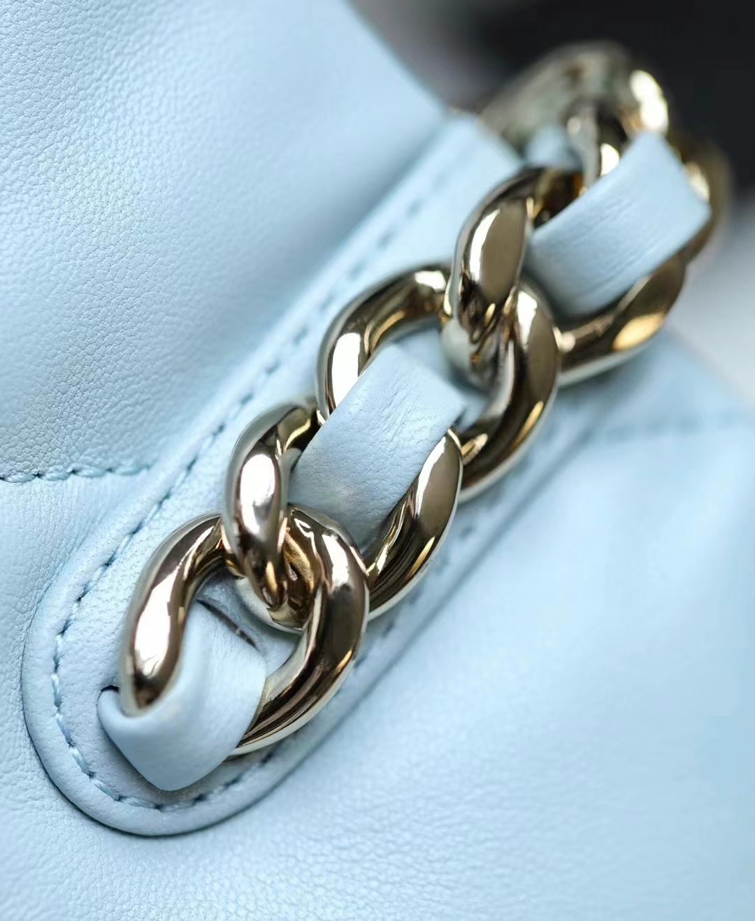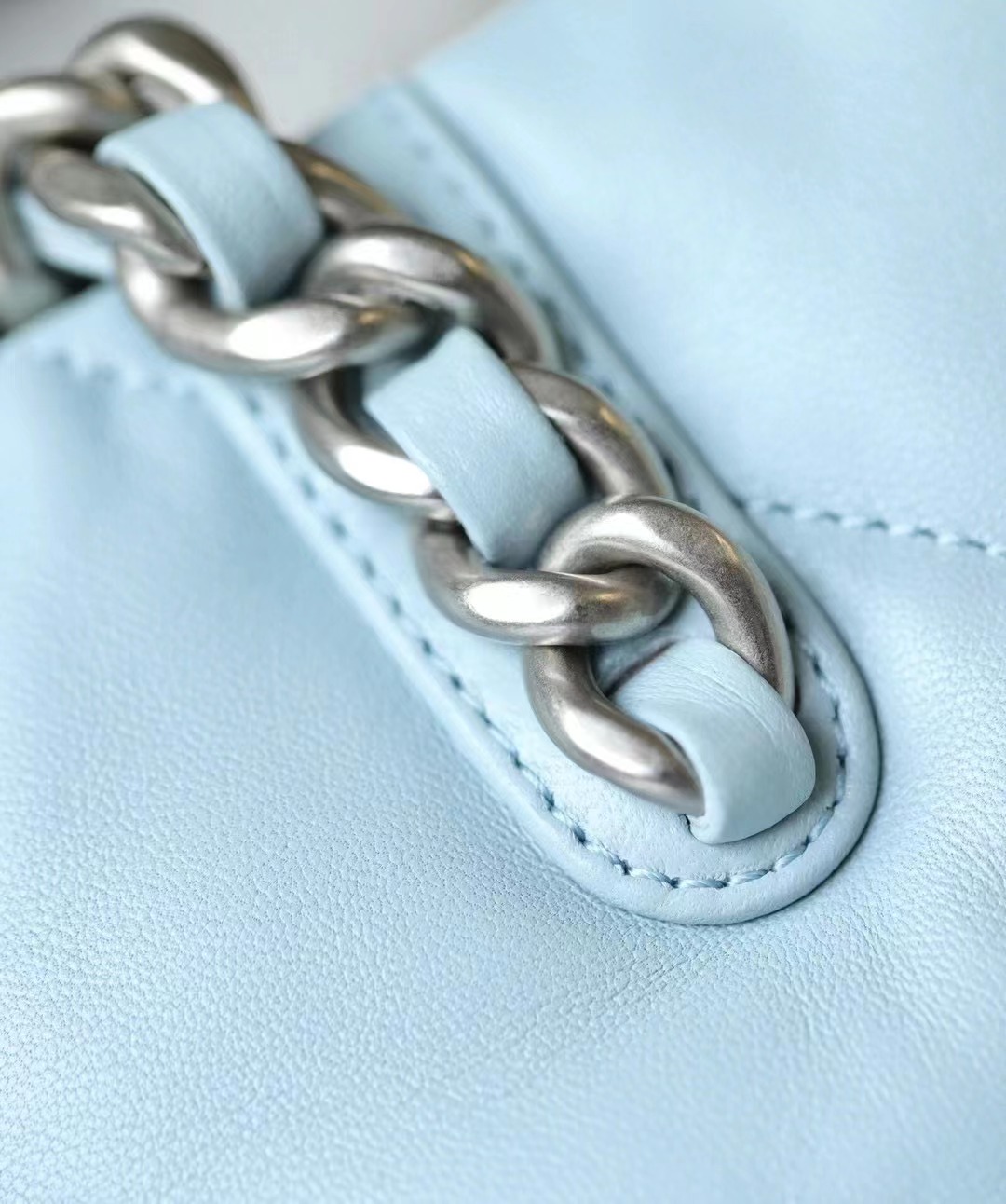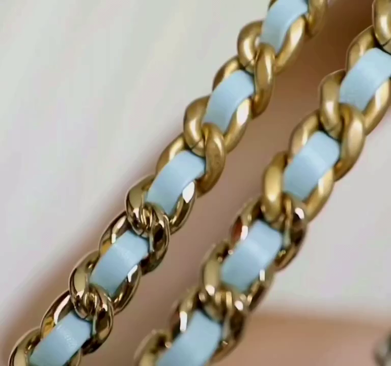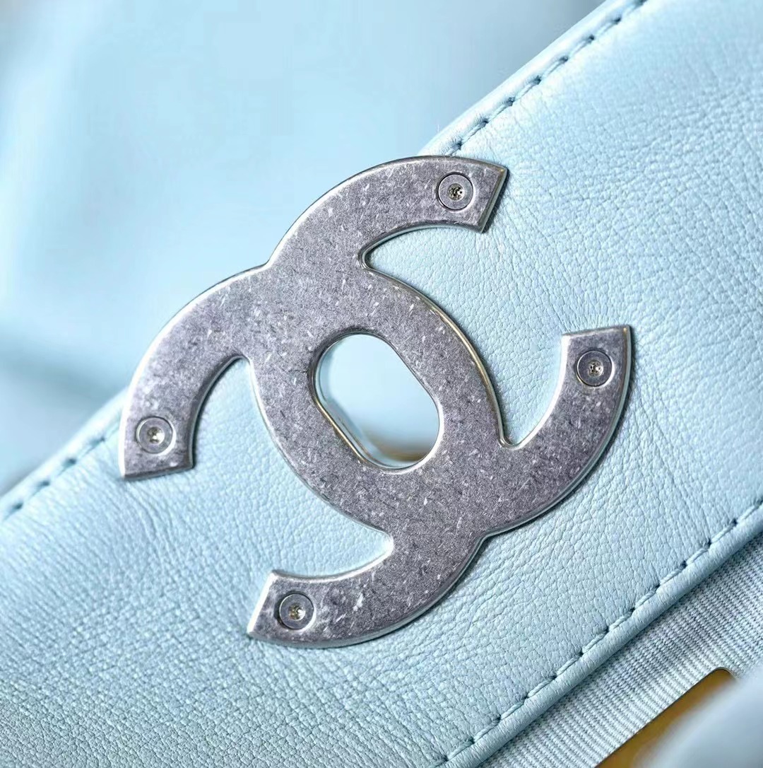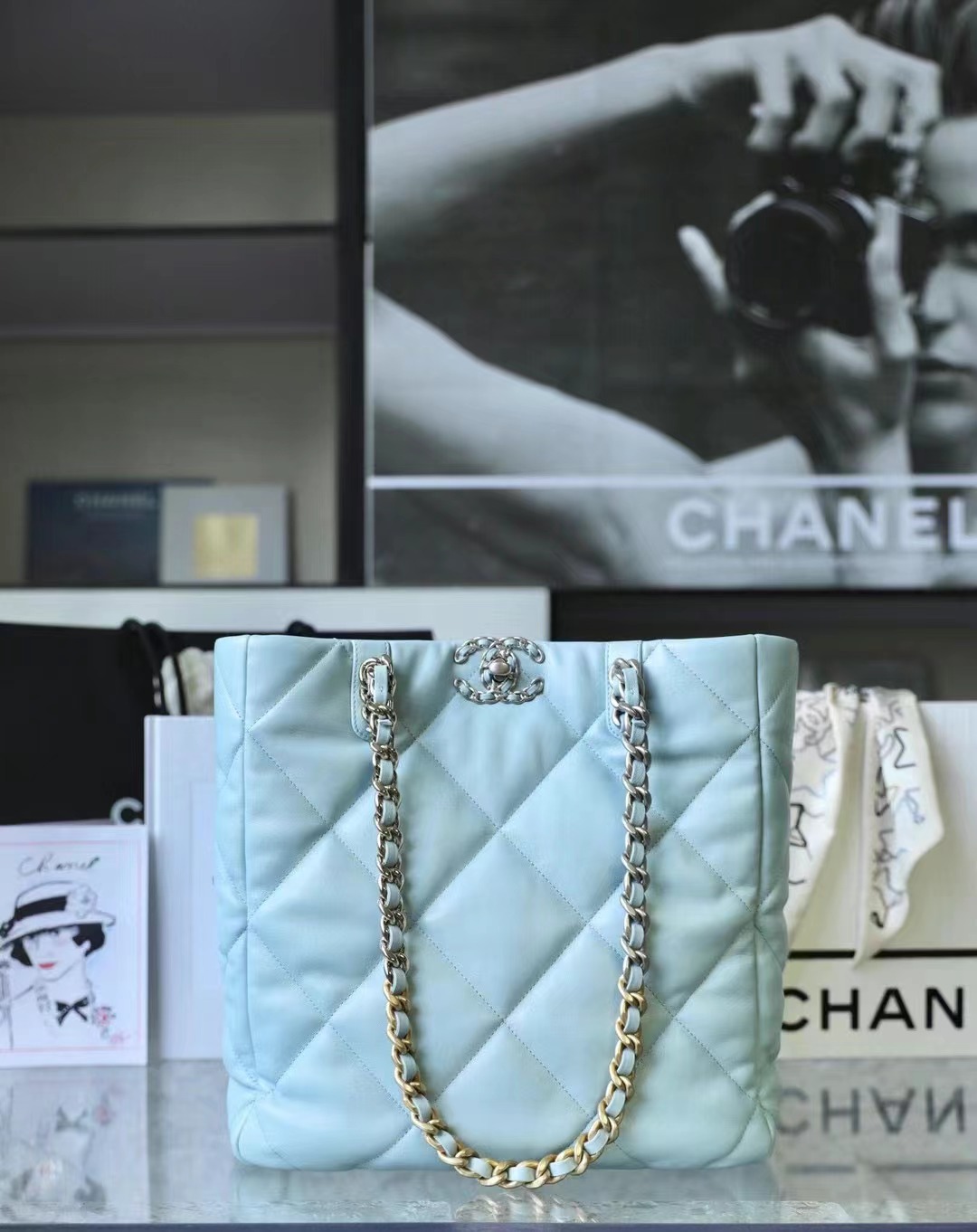 • CHANEL 19 Shopping Bag Shiny Lambskin, Gold-Tone, Silver-Tone & Ruthenium-Finish Metal baby blue
