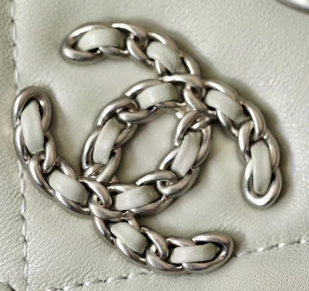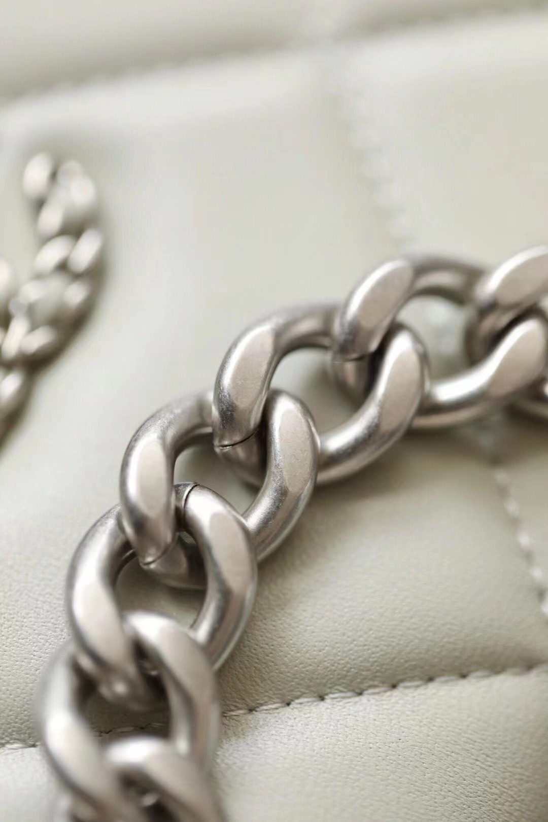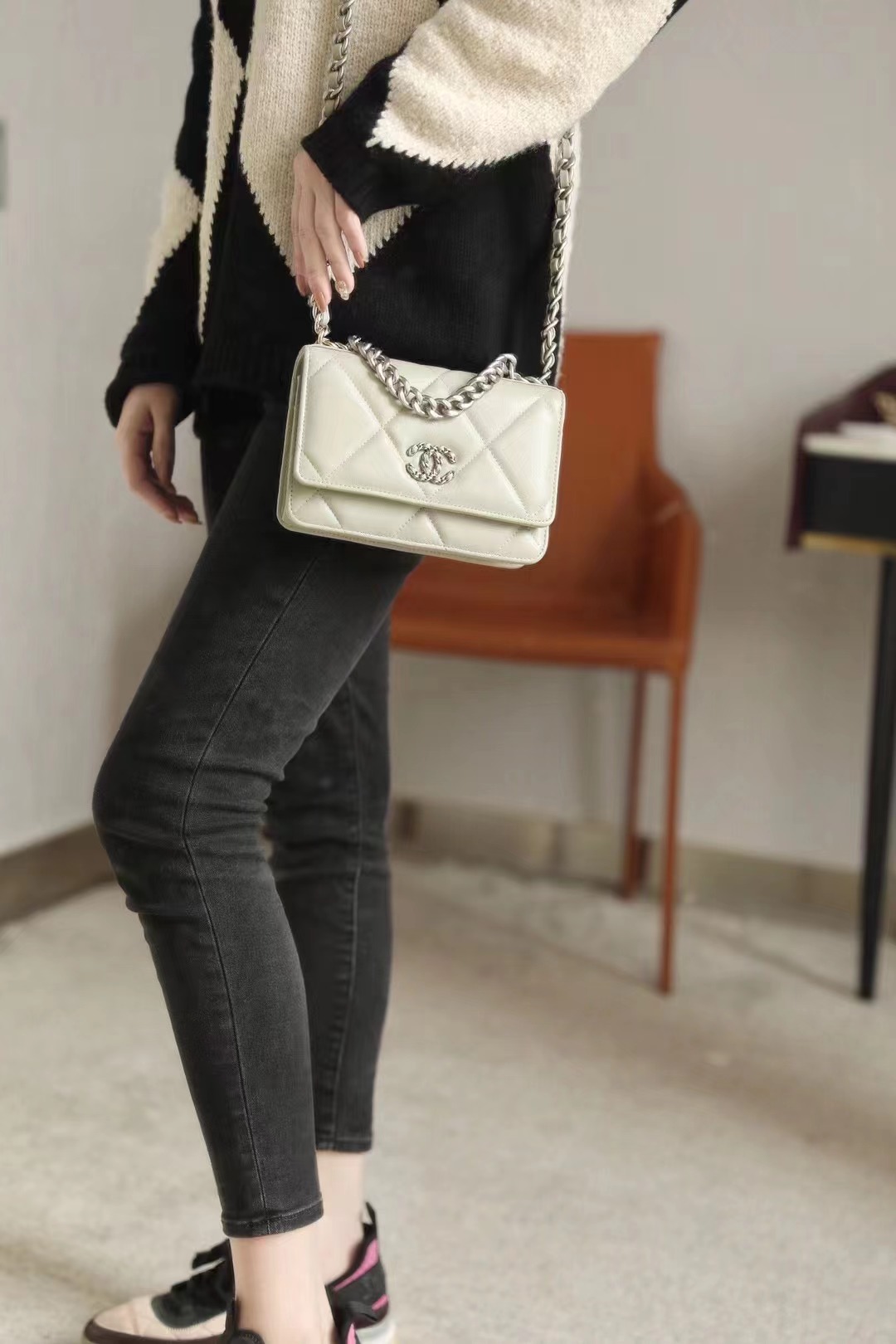 CHANEL 19 Wallet on Chain Lambskin & silver Metallic Pearl Gray