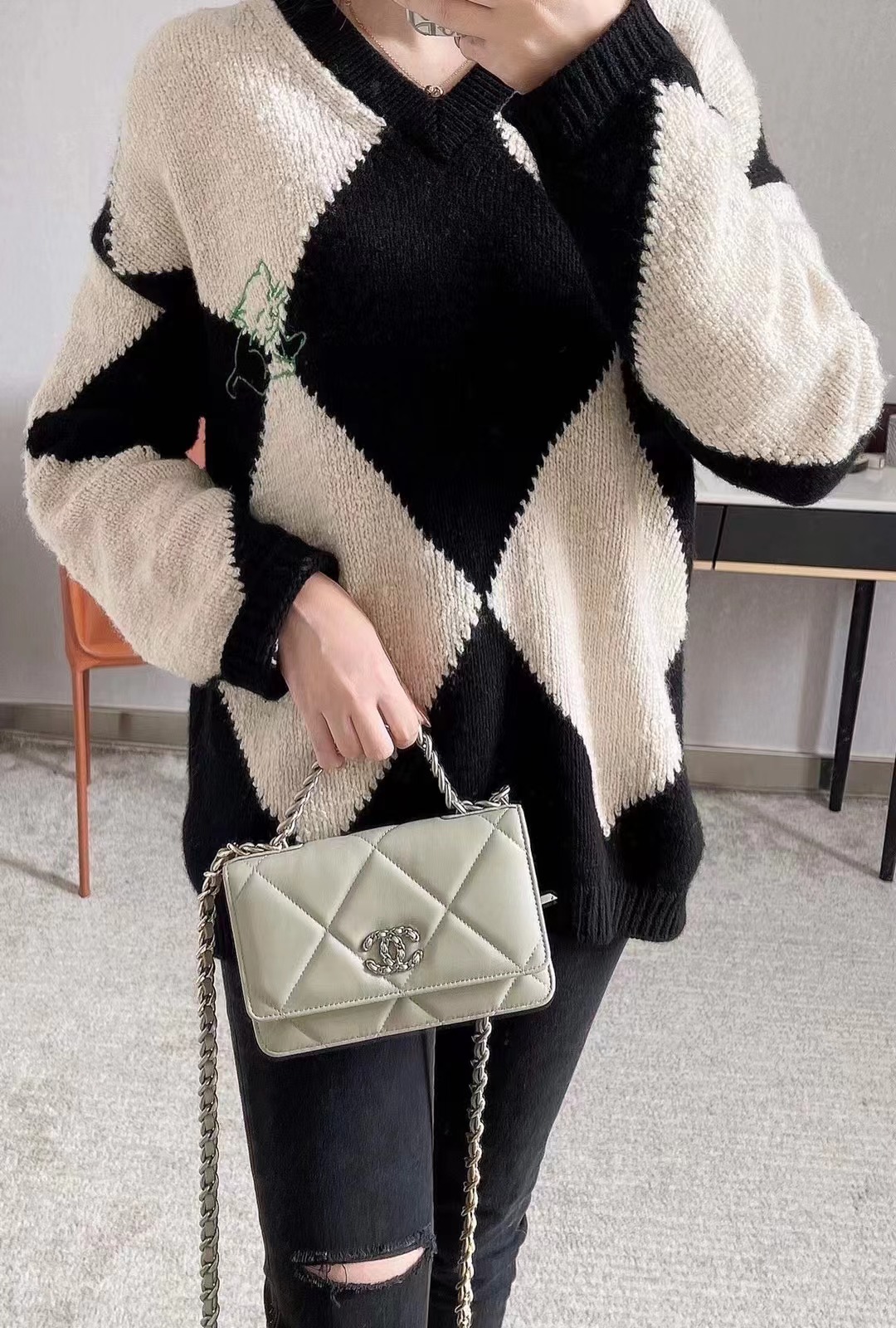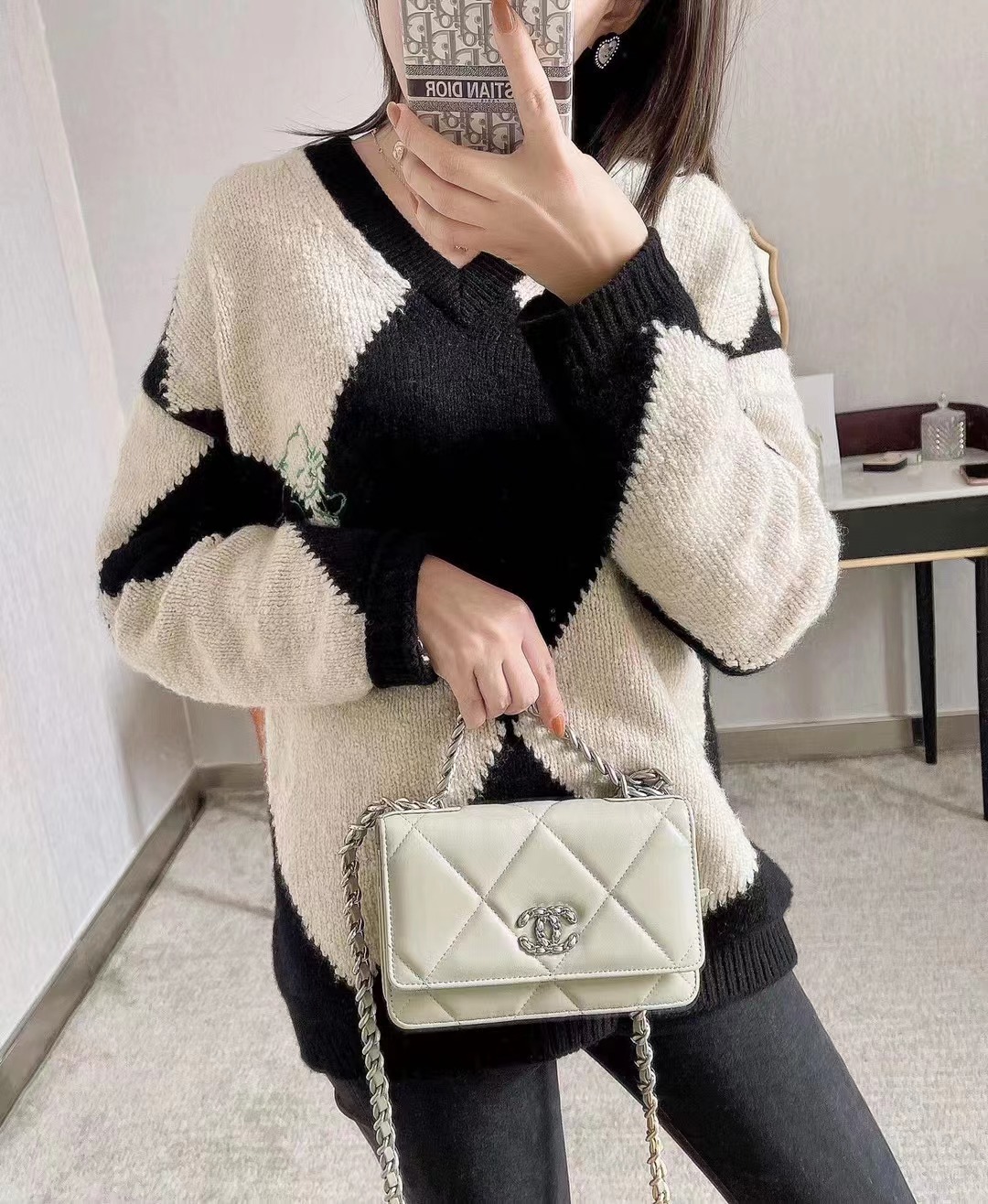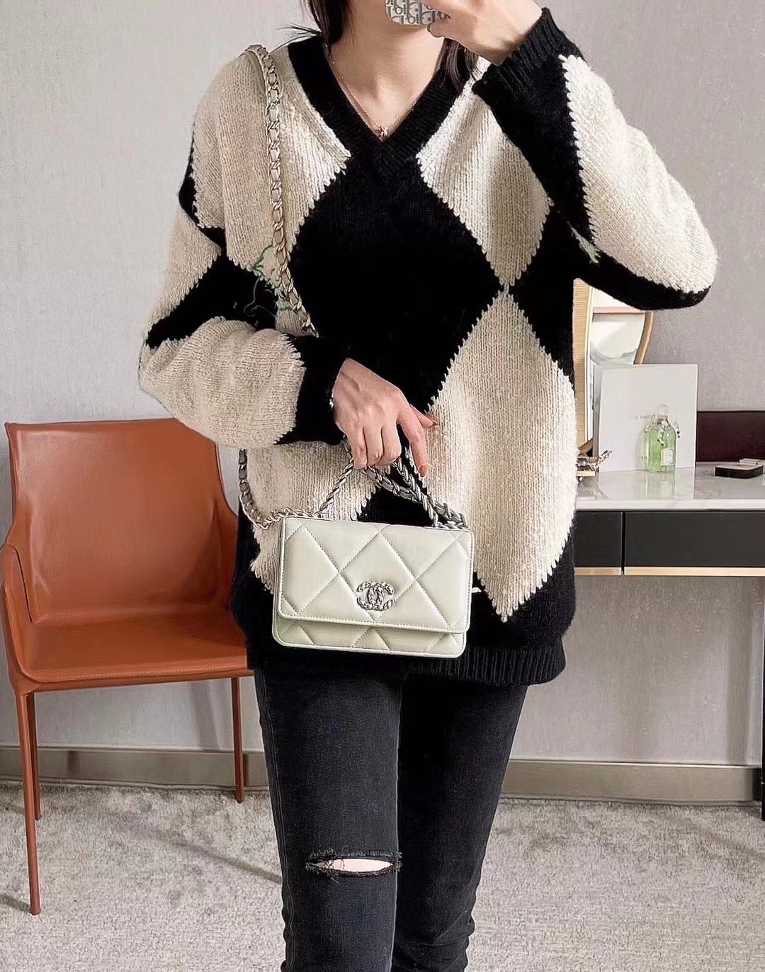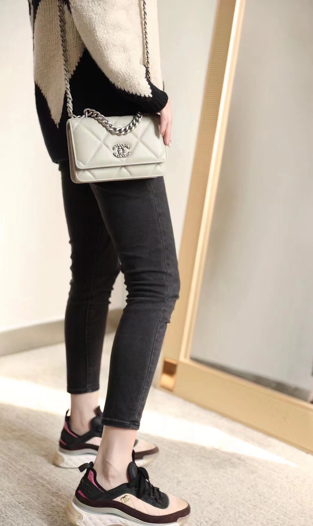 • CHANEL 19 Wallet on Chain Lambskin & silver Metallic Pearl Gray
