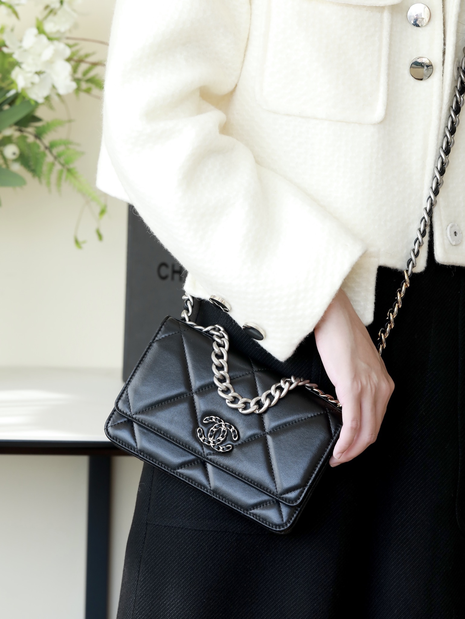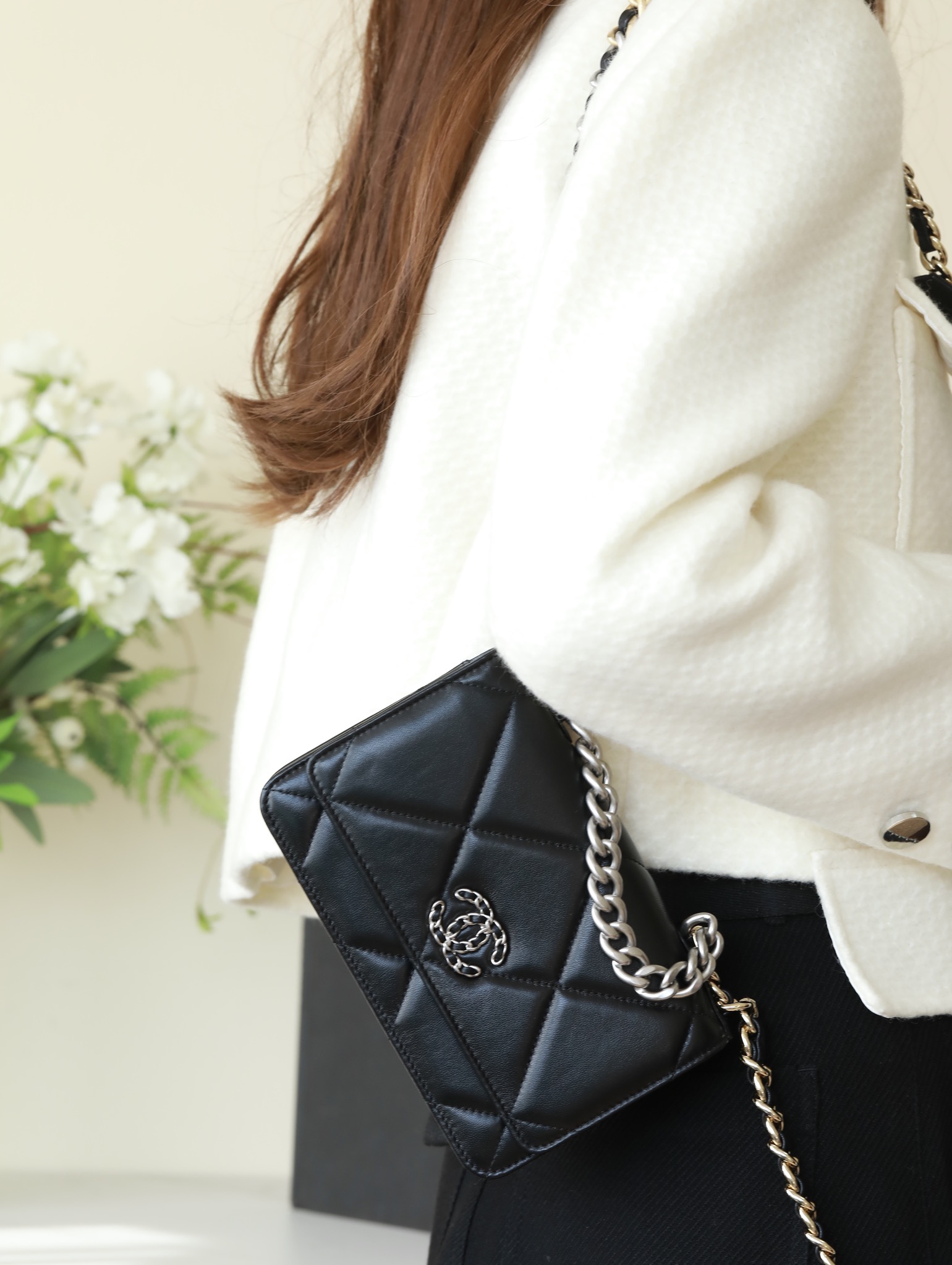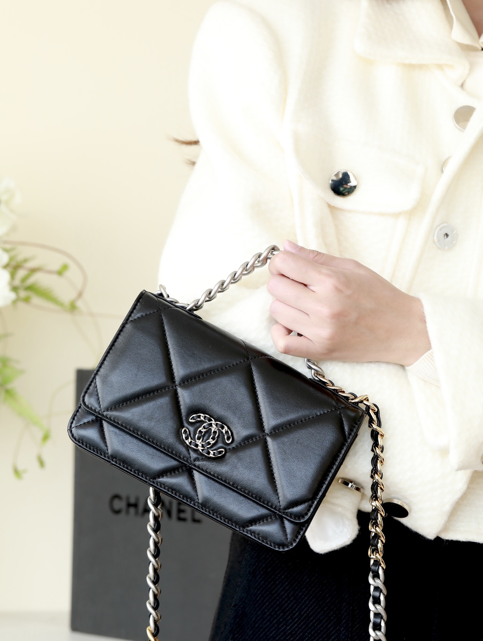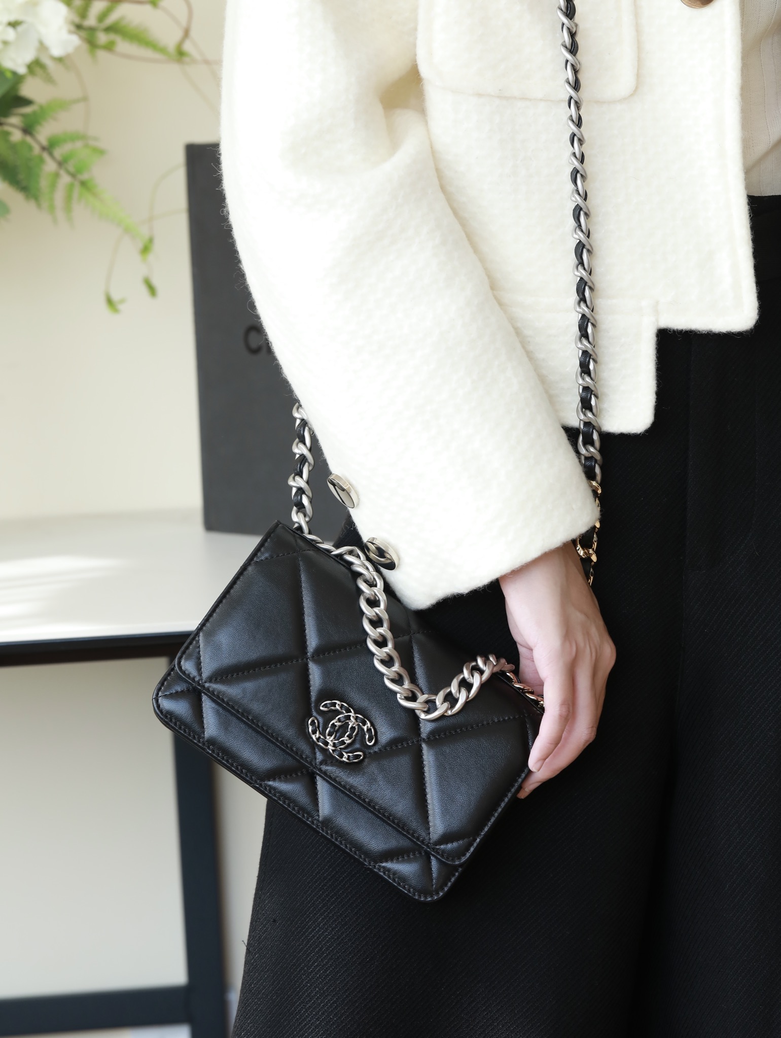 CHANEL 19 Wallet on Chain WOC black Lambskin
