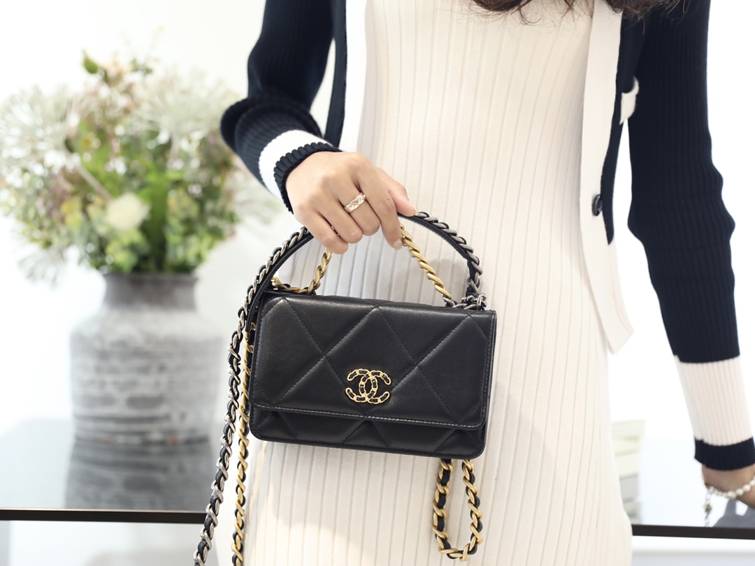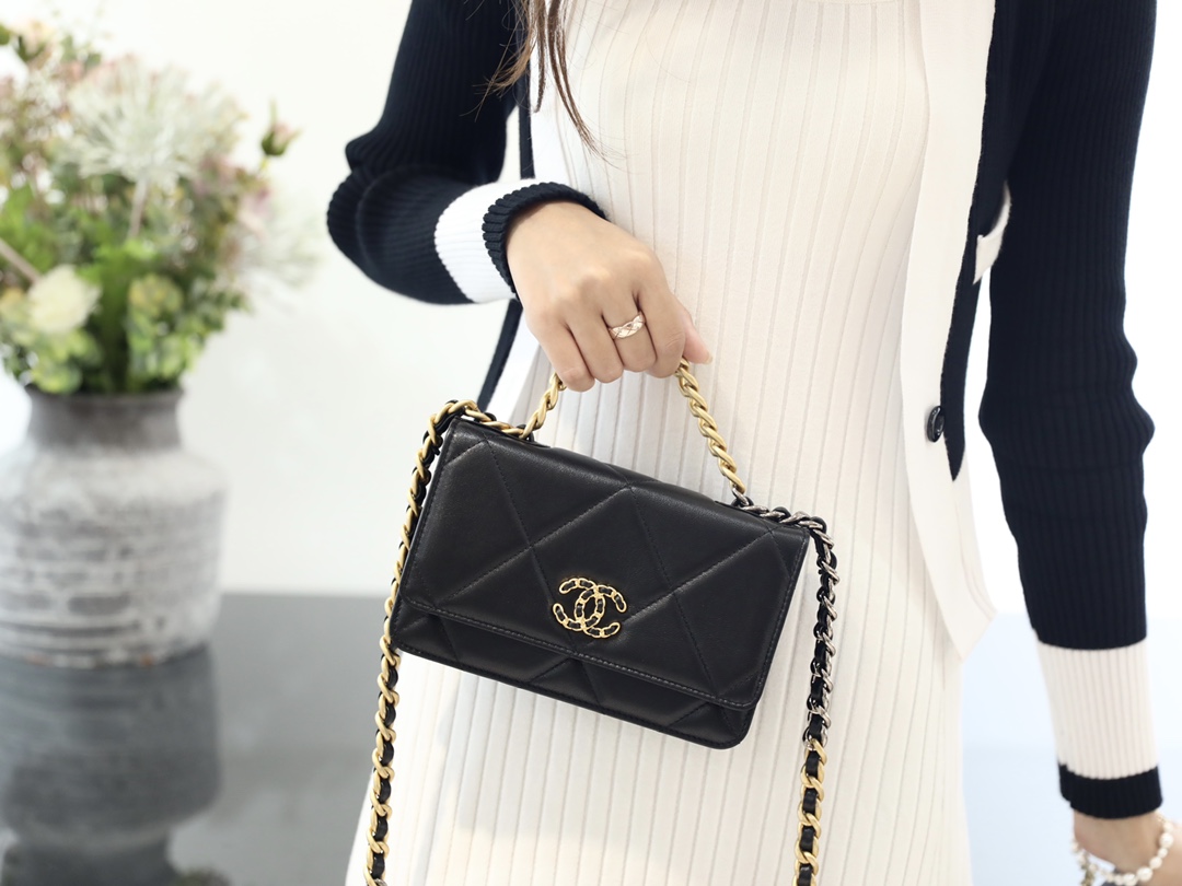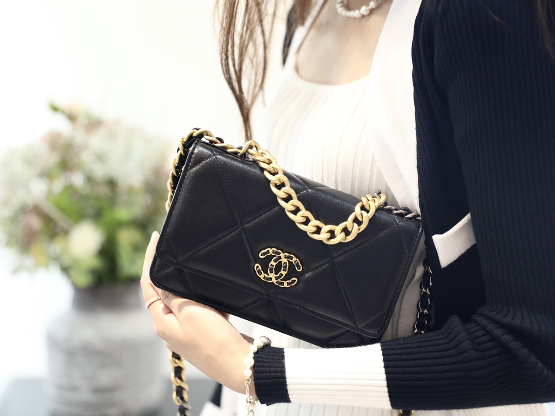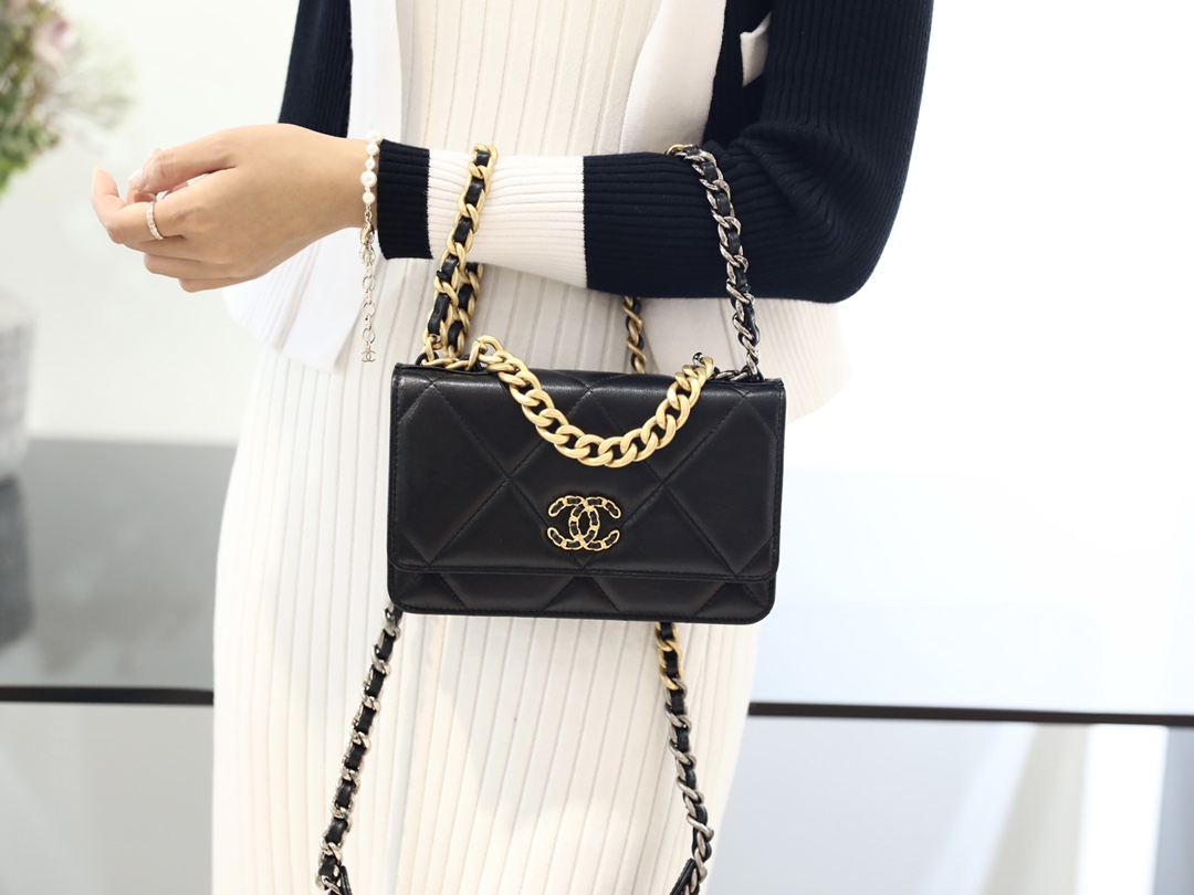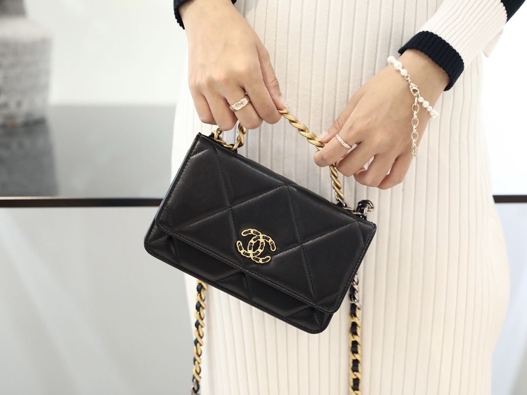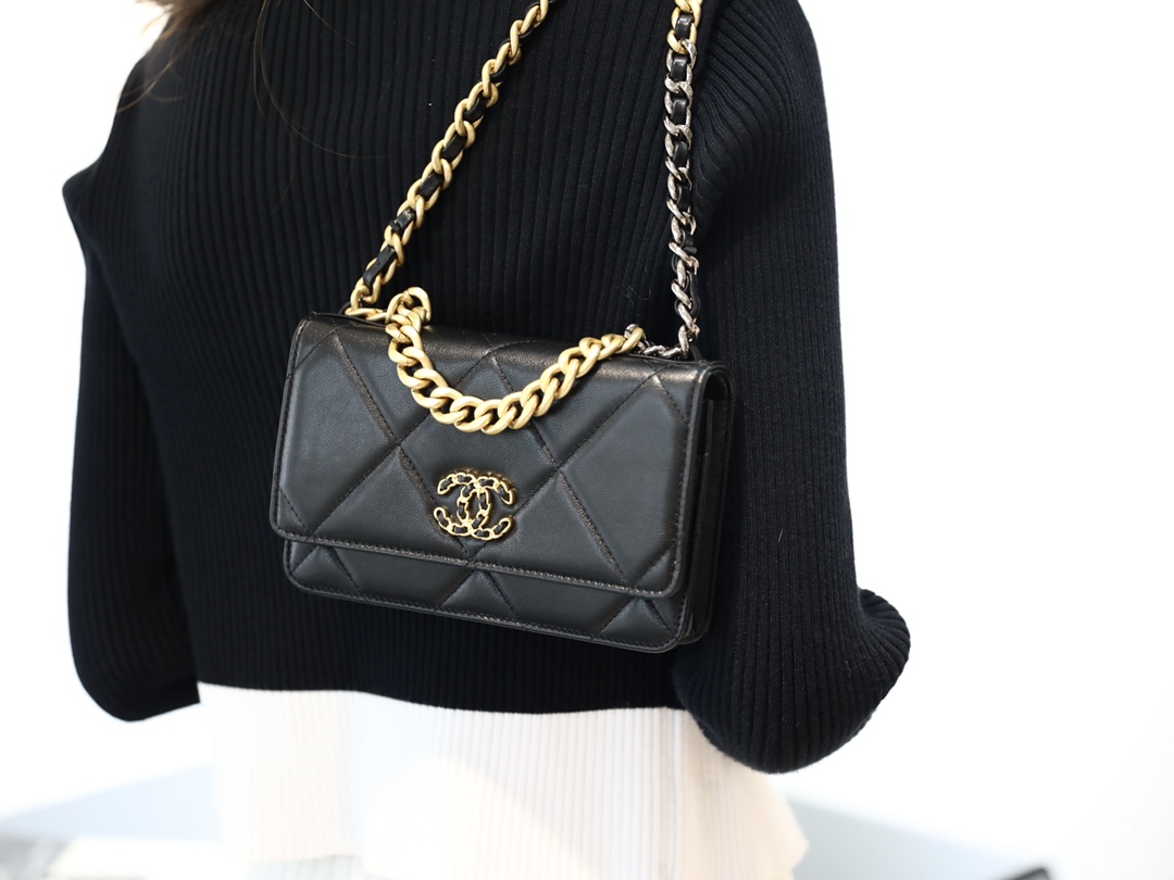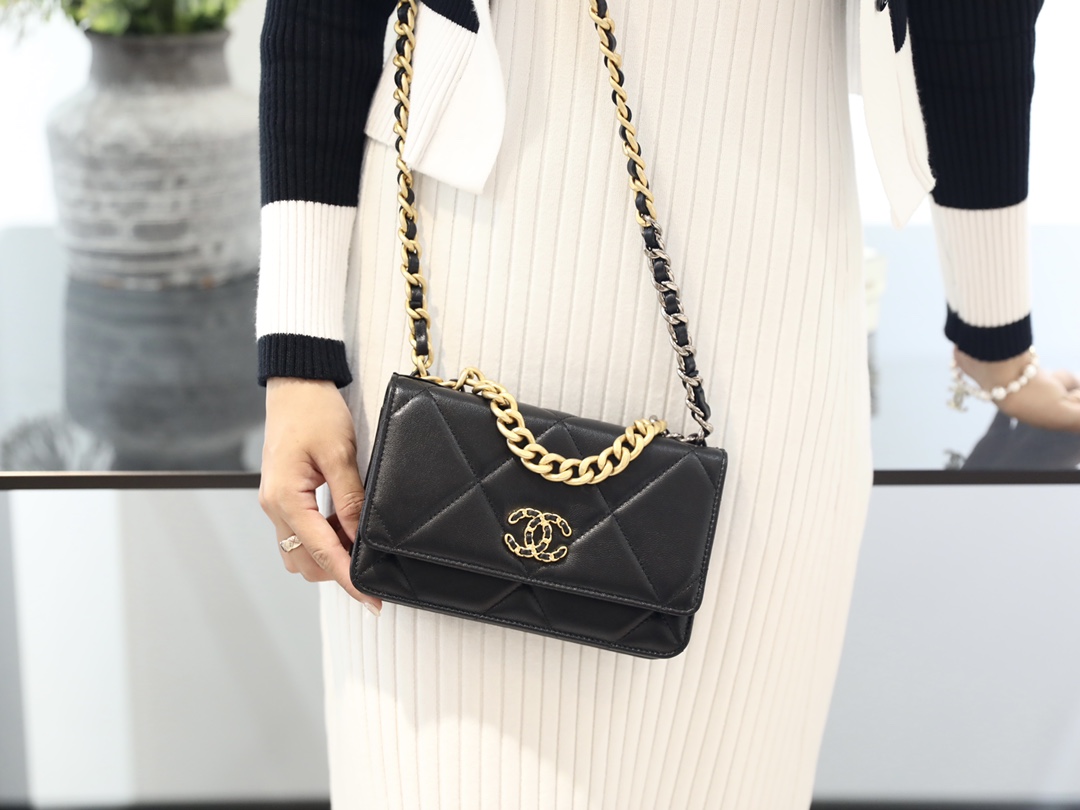 CHANEL 19 Wallet on Chain WOC black Lambskin