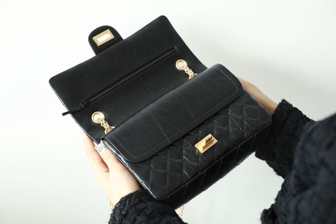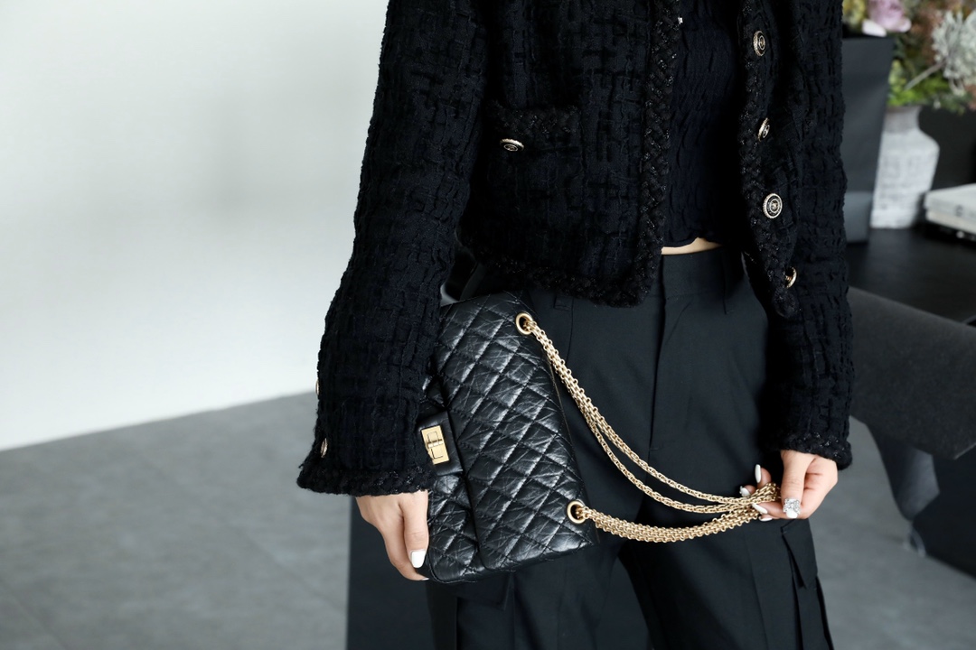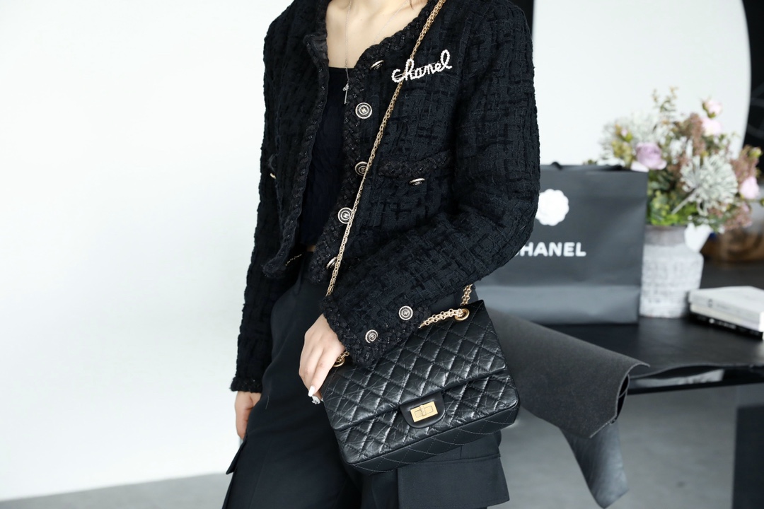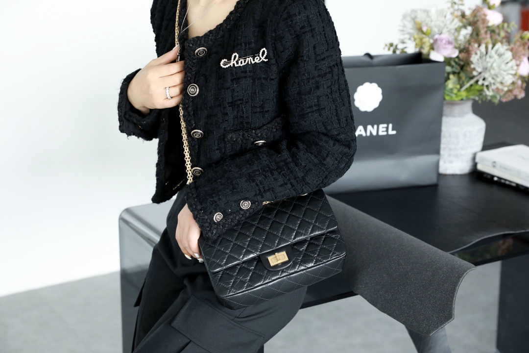 • CHANEL 2.55 Handbag Aged Calfskin & Gold-Tone Metal Black