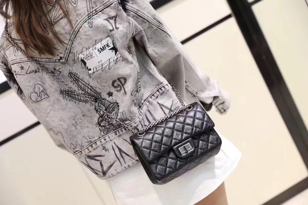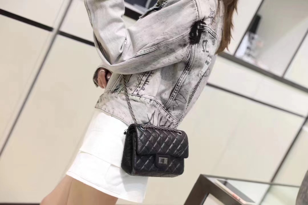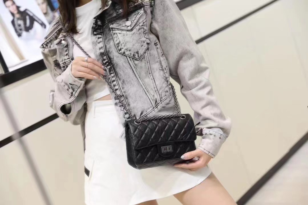 Chanel 2.55 reissues mini Aged Calfskin & silver-Tone Metal Black