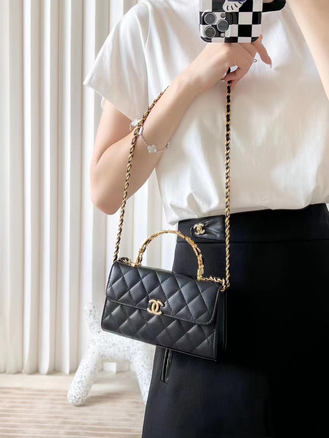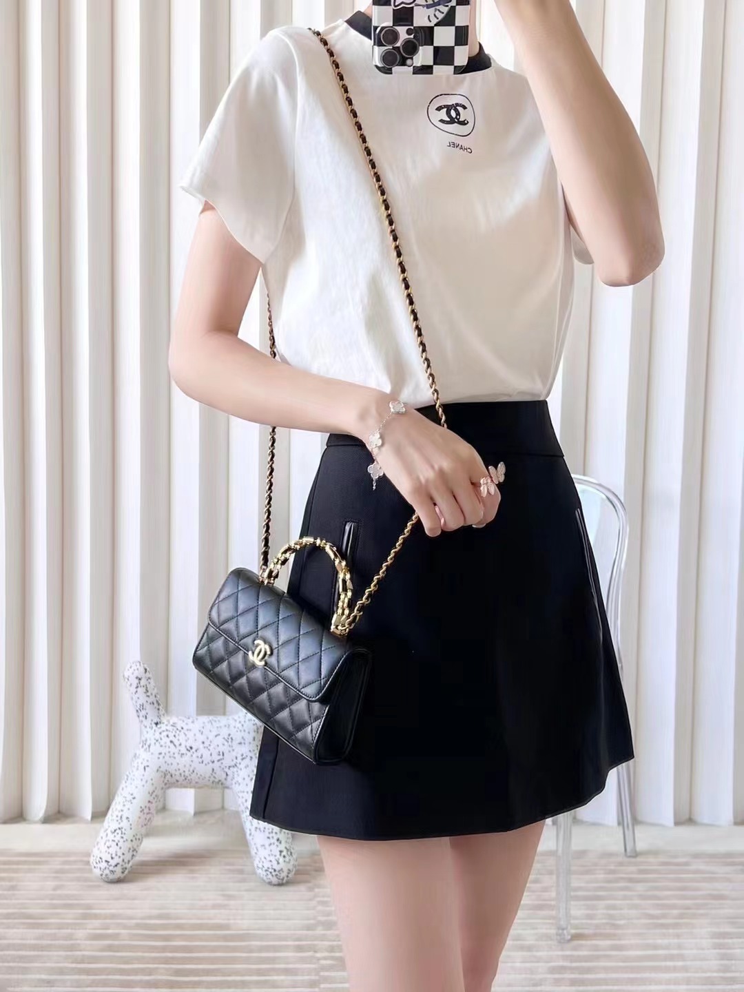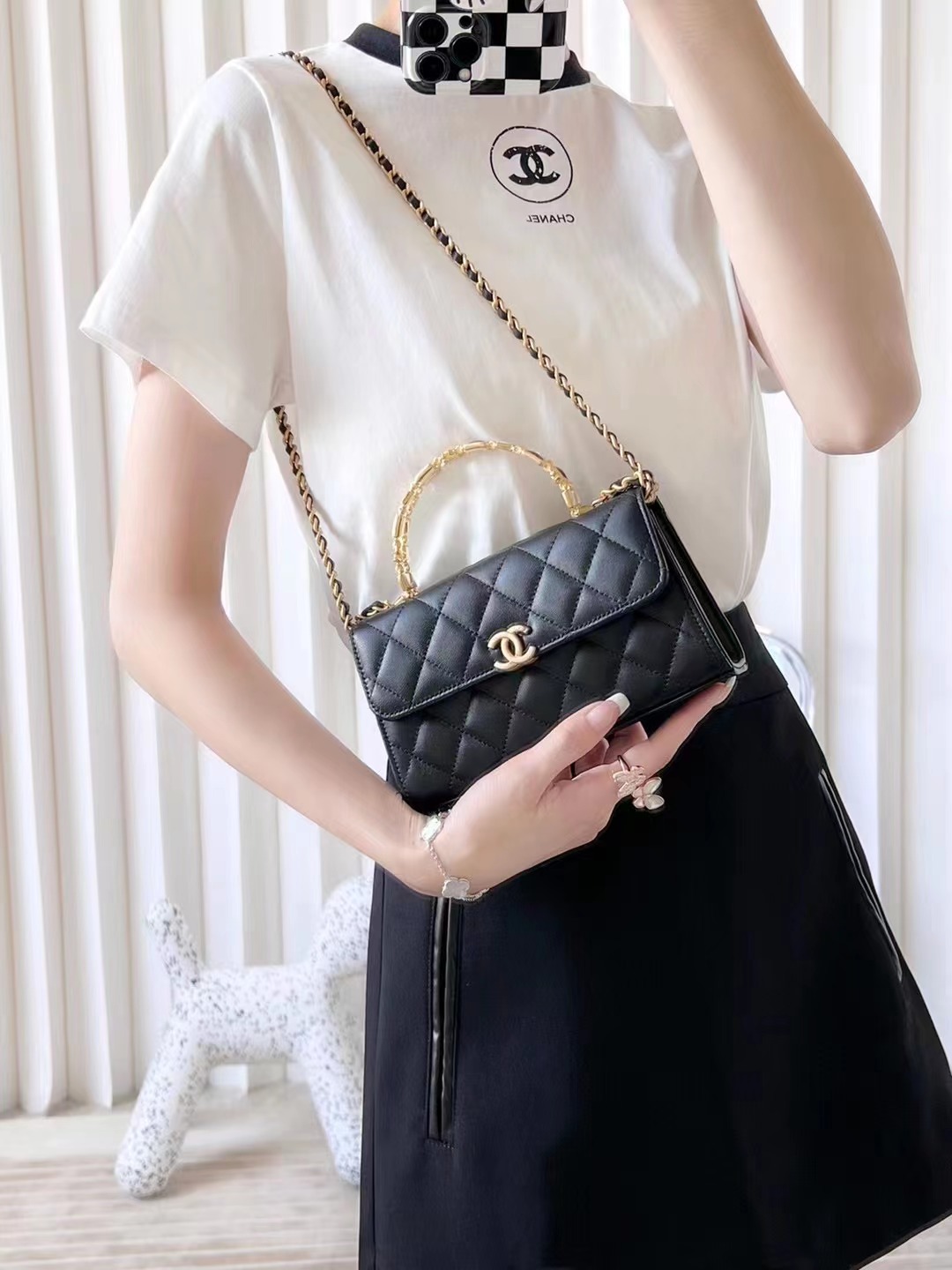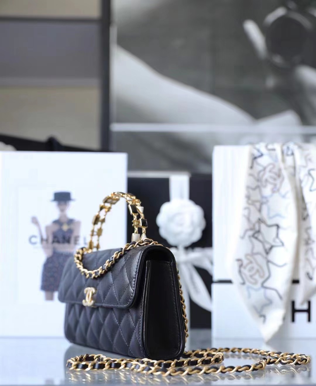 • Chanel 22/23 long phone bag vintage Enamel wrist Calfskin & Gold-Tone Metal black