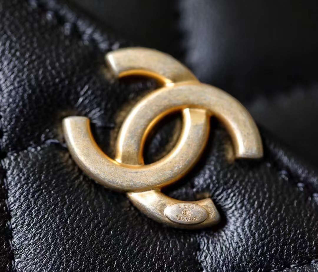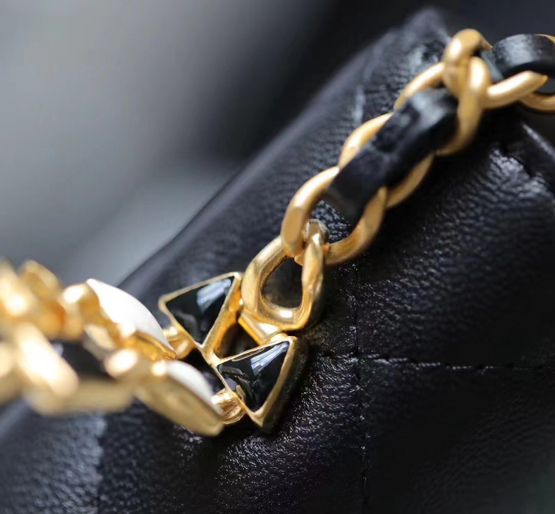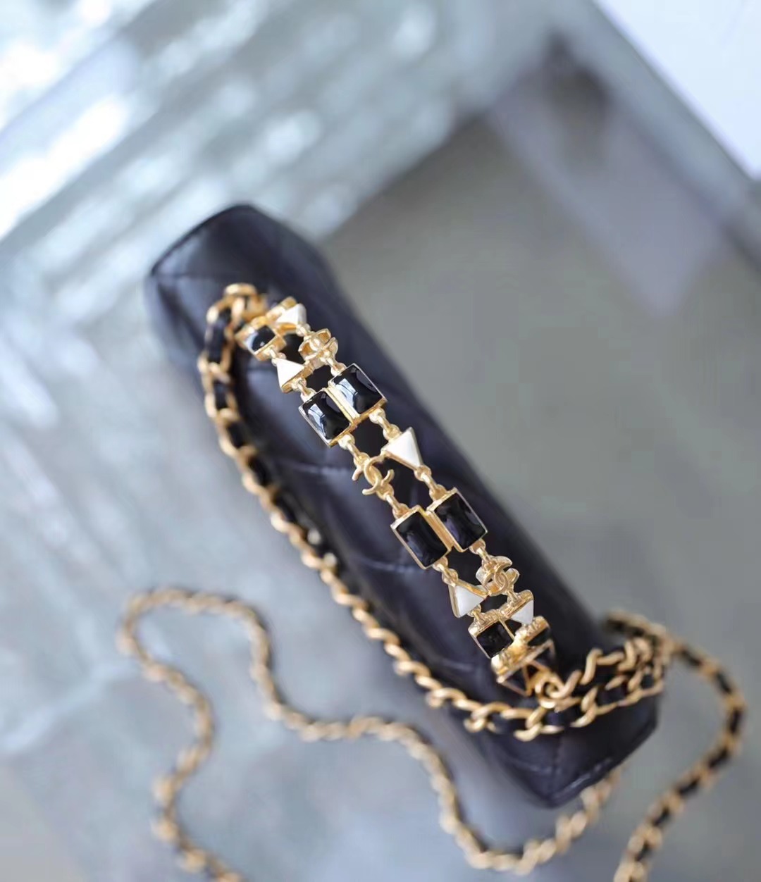 Chanel 22/23 long phone bag vintage Enamel wrist Calfskin & Gold-Tone Metal black