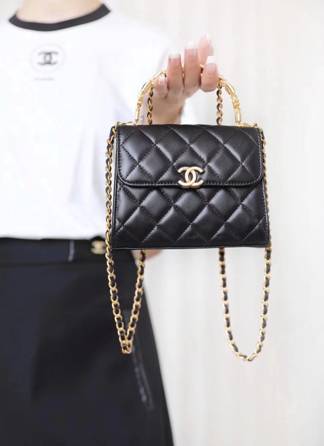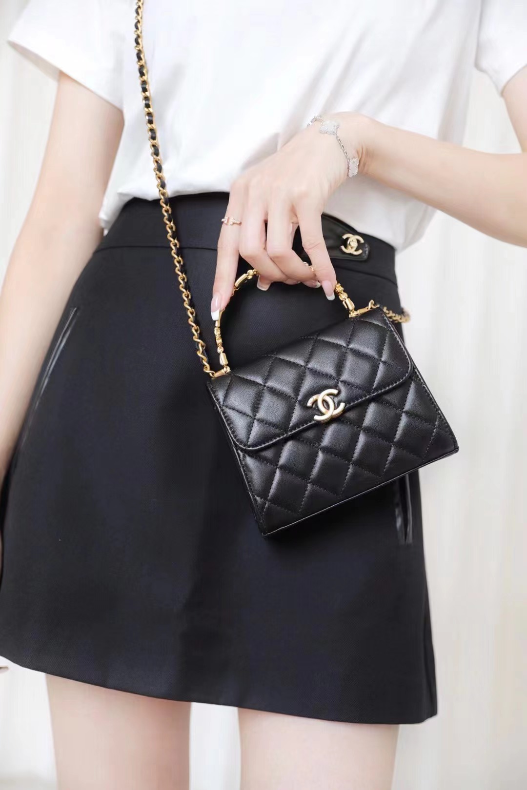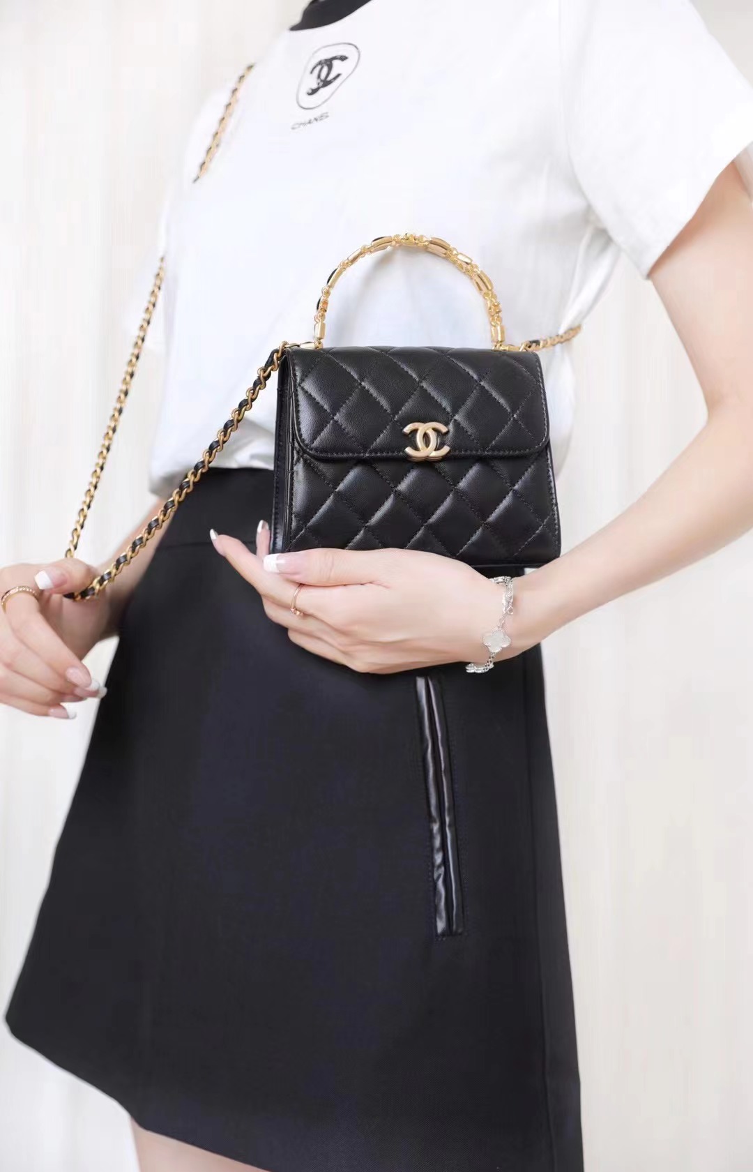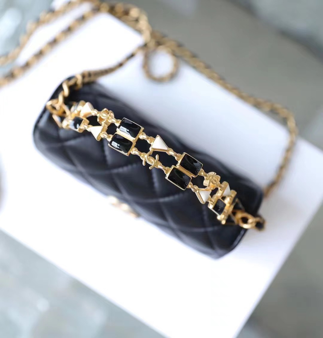 Chanel 22/23 Medium phone bag vintage Enamel wrist Calfskin & Gold-Tone Metal black