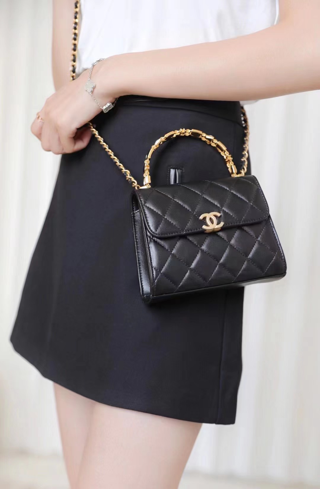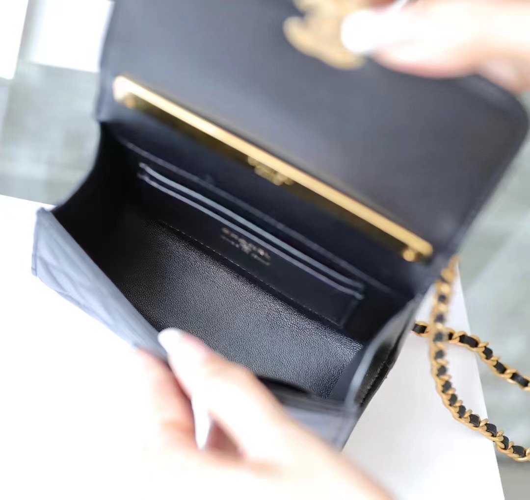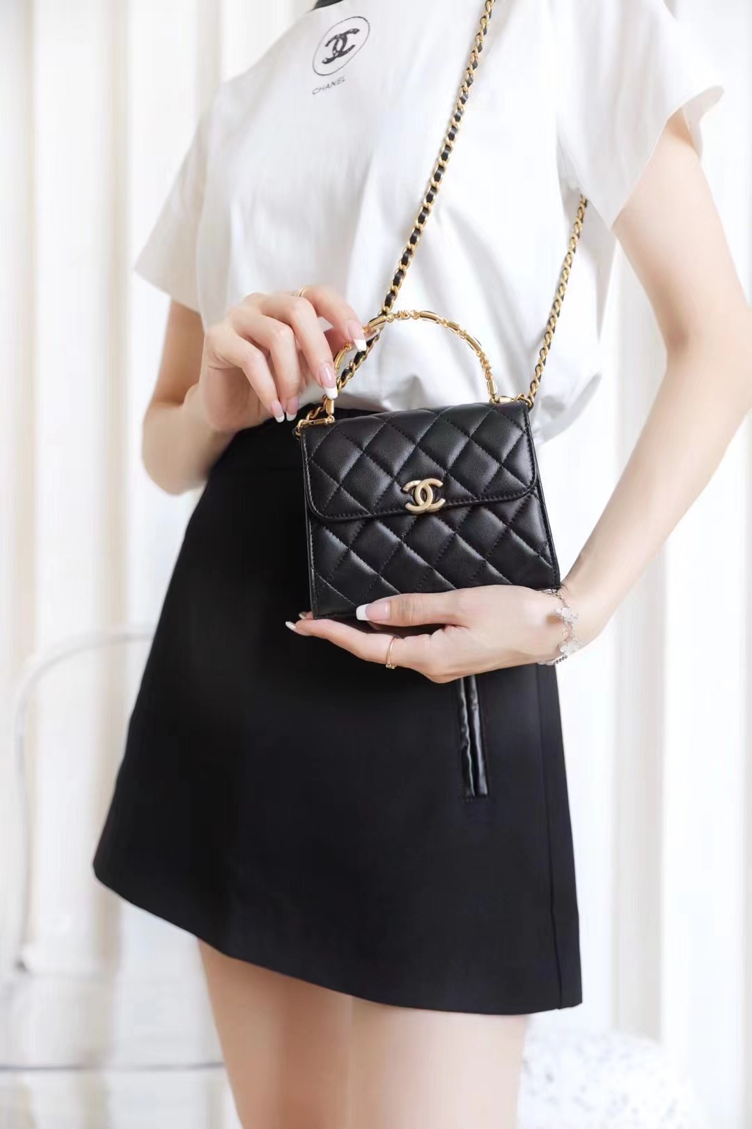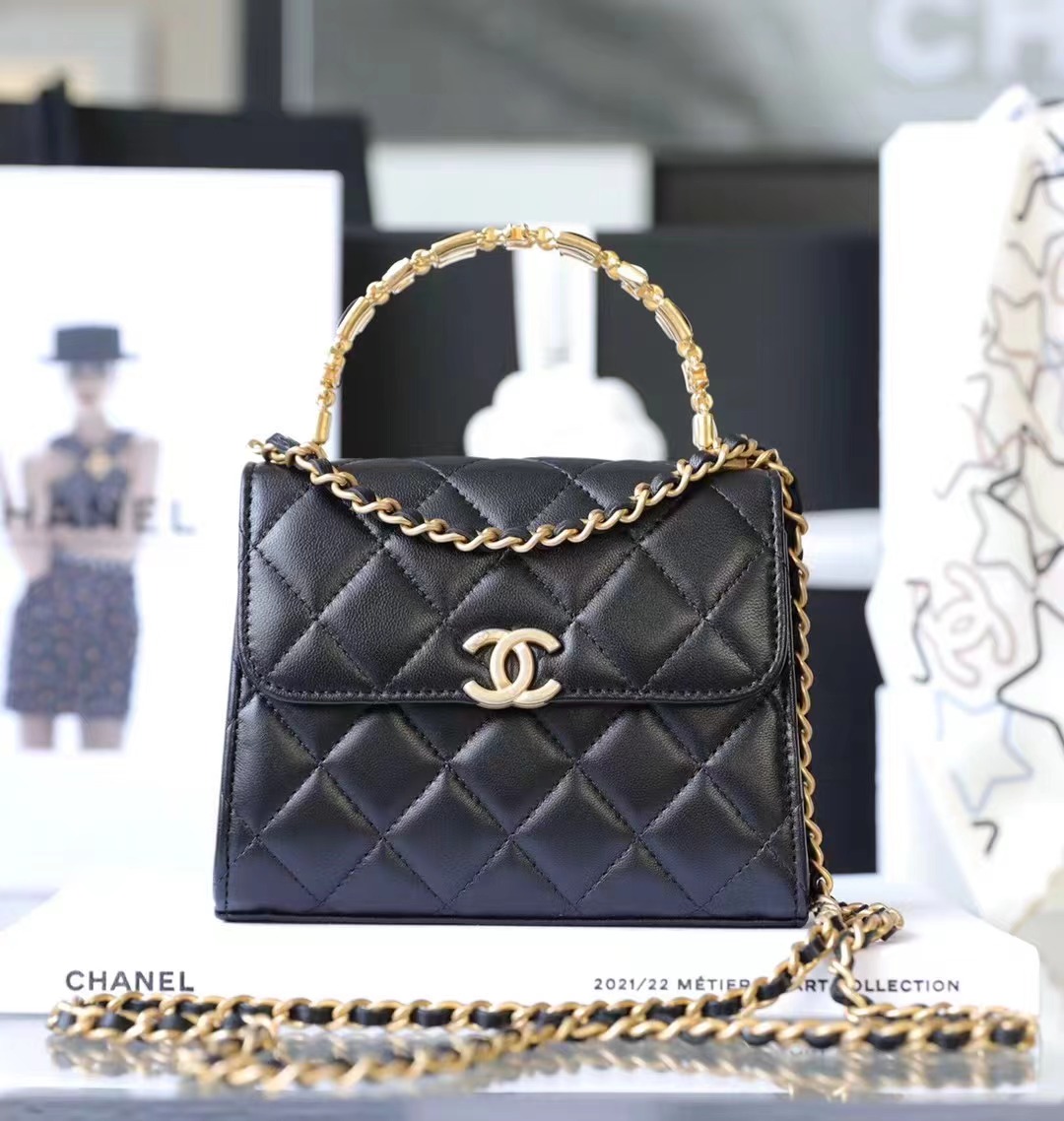 Chanel 22/23 Medium phone bag vintage Enamel wrist Calfskin & Gold-Tone Metal black