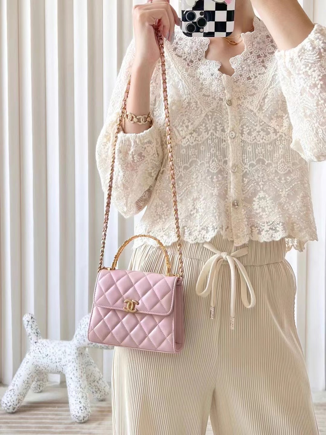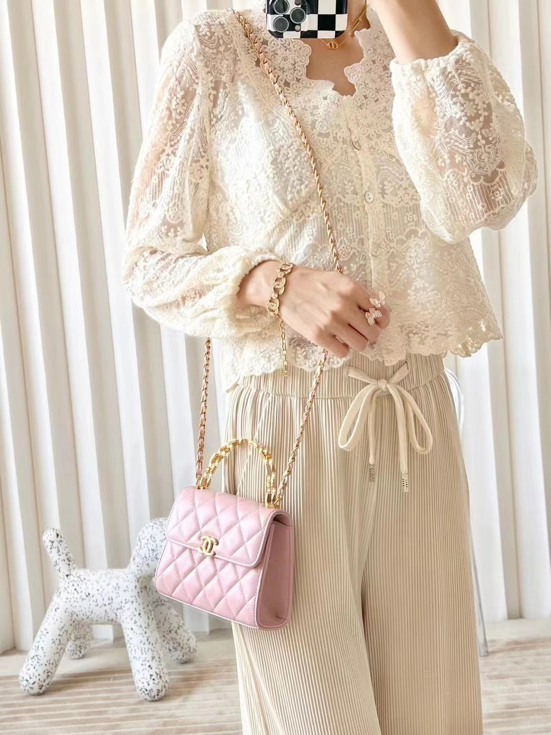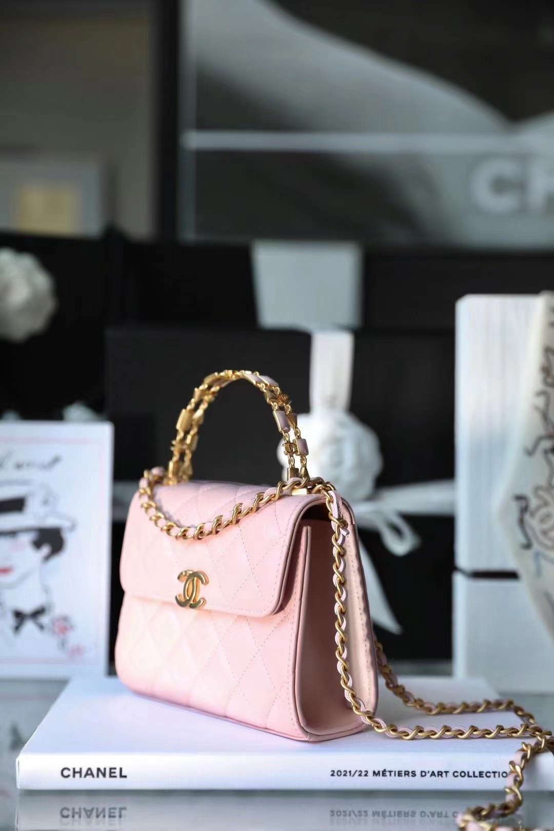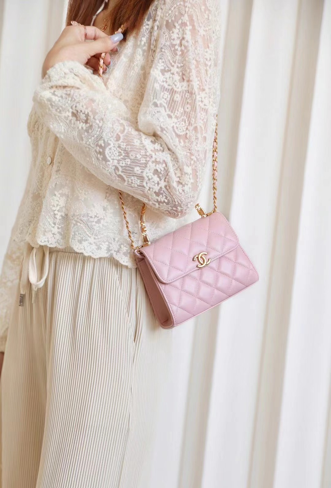 Chanel 22/23 Medium phone bag vintage Enamel wrist Calfskin & Gold-Tone Metal Pink