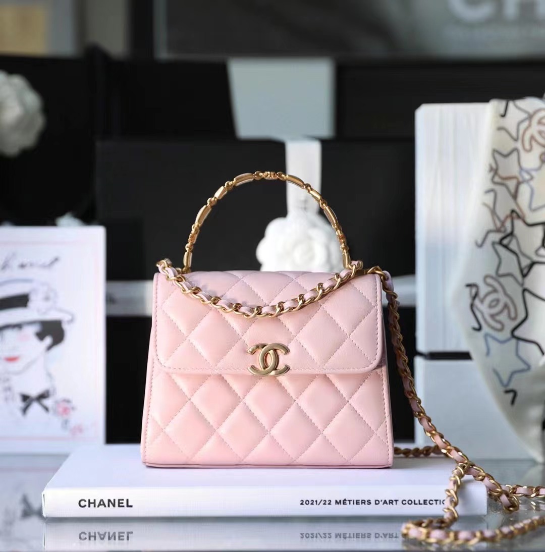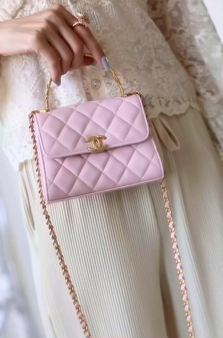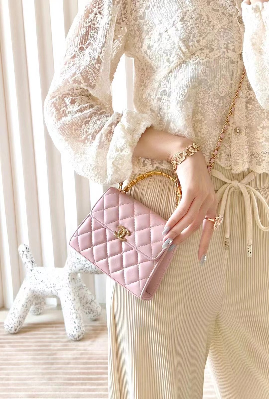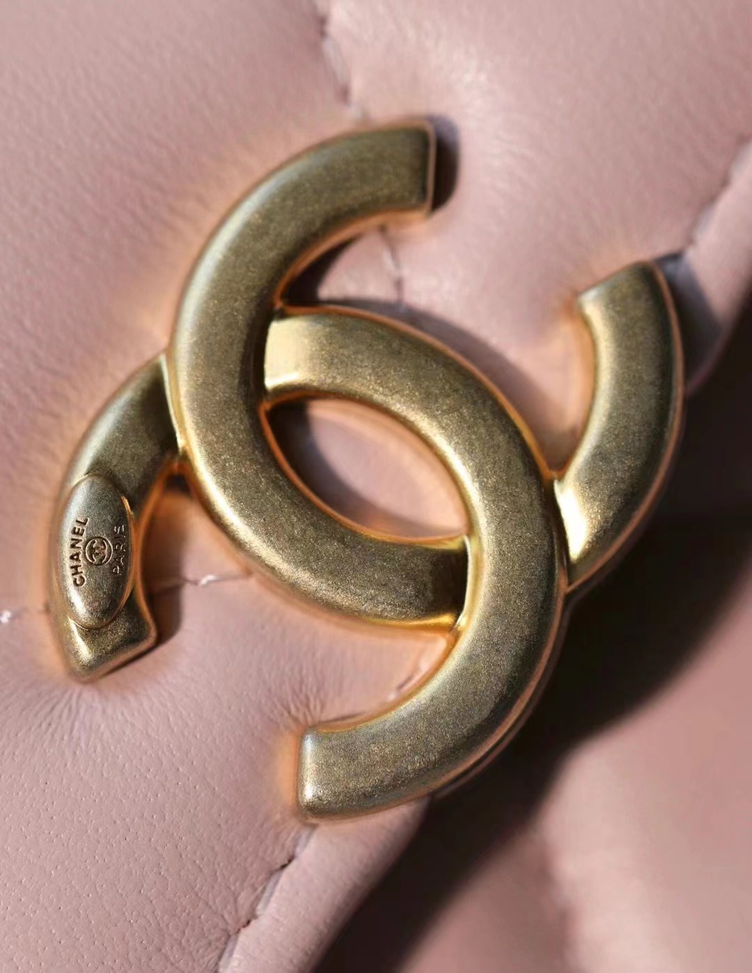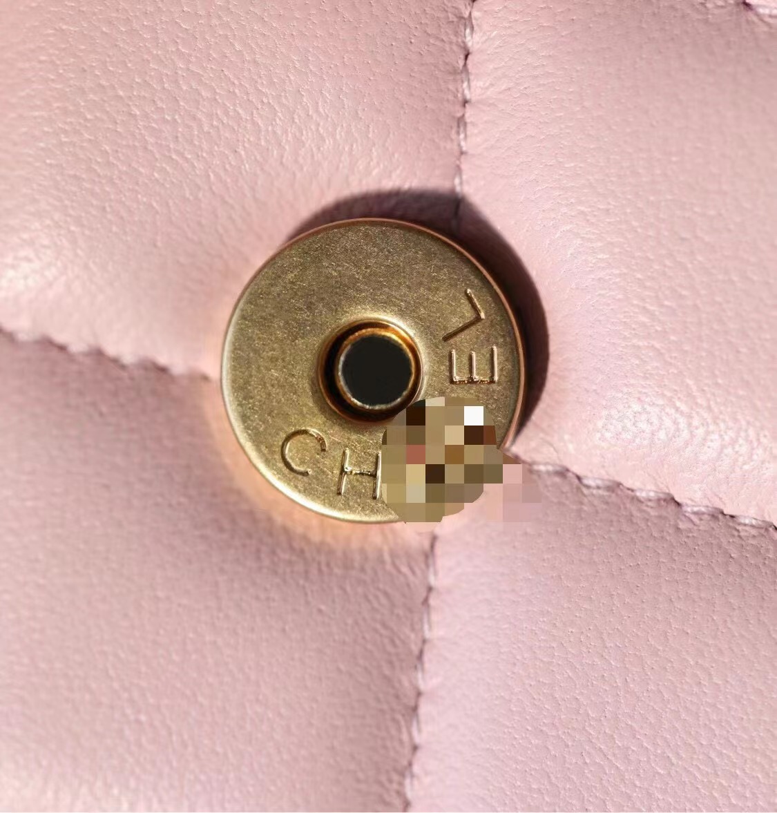 • Chanel 22/23 Medium phone bag vintage Enamel wrist Calfskin & Gold-Tone Metal Pink
