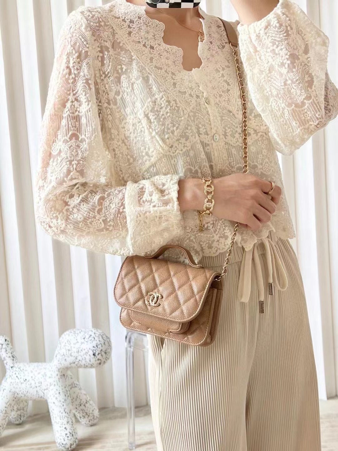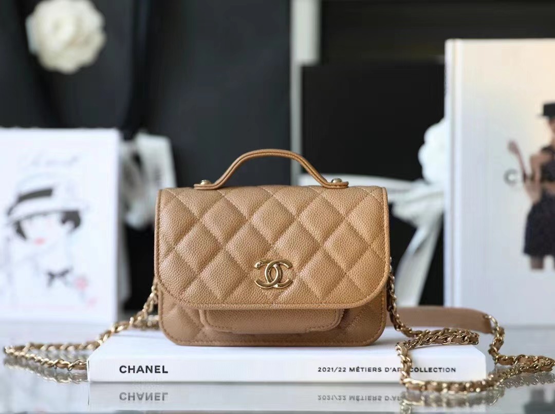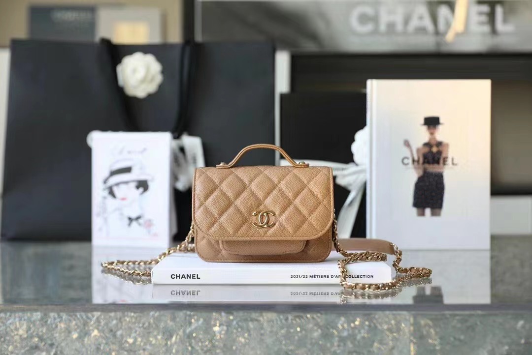 • Chanel 22/23 mini messenger bag/Chain bag Grained Calfskin & Gold-Tone Metal chai