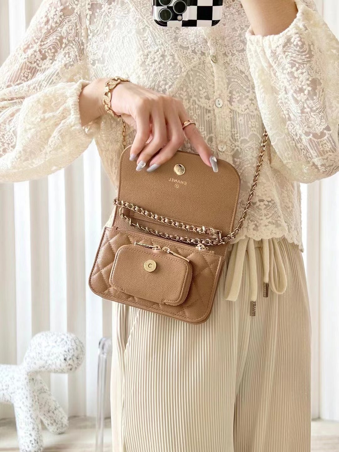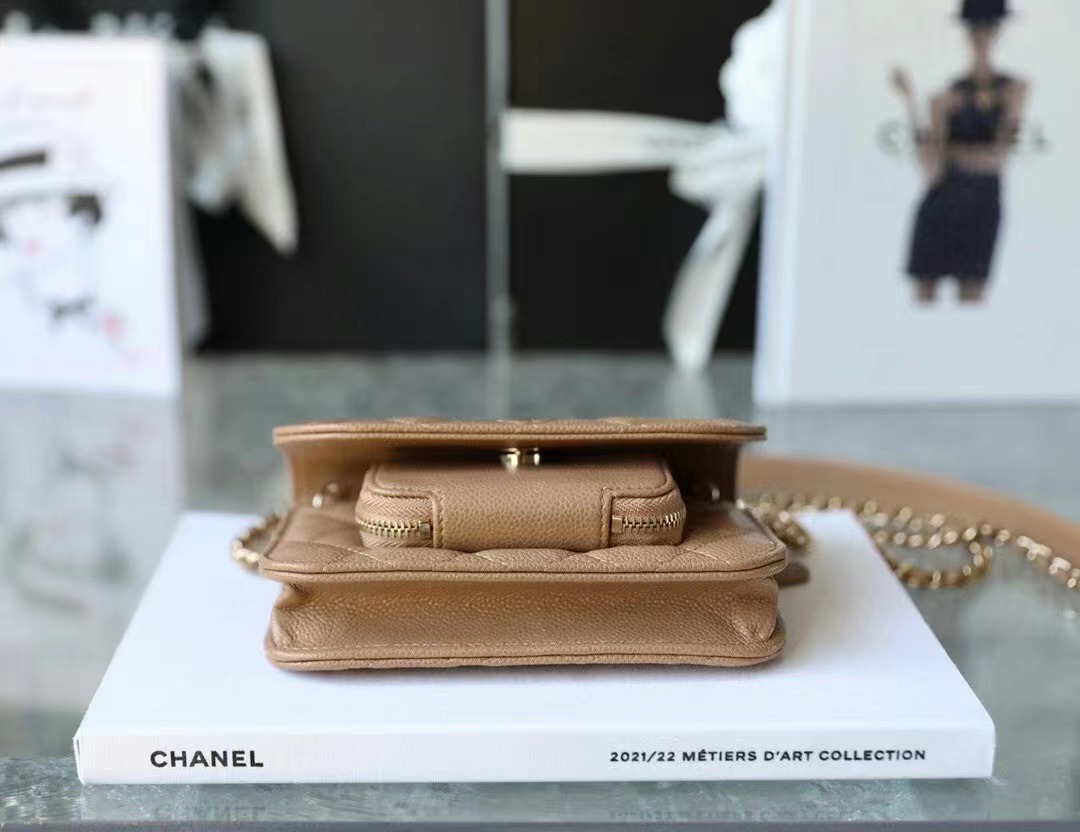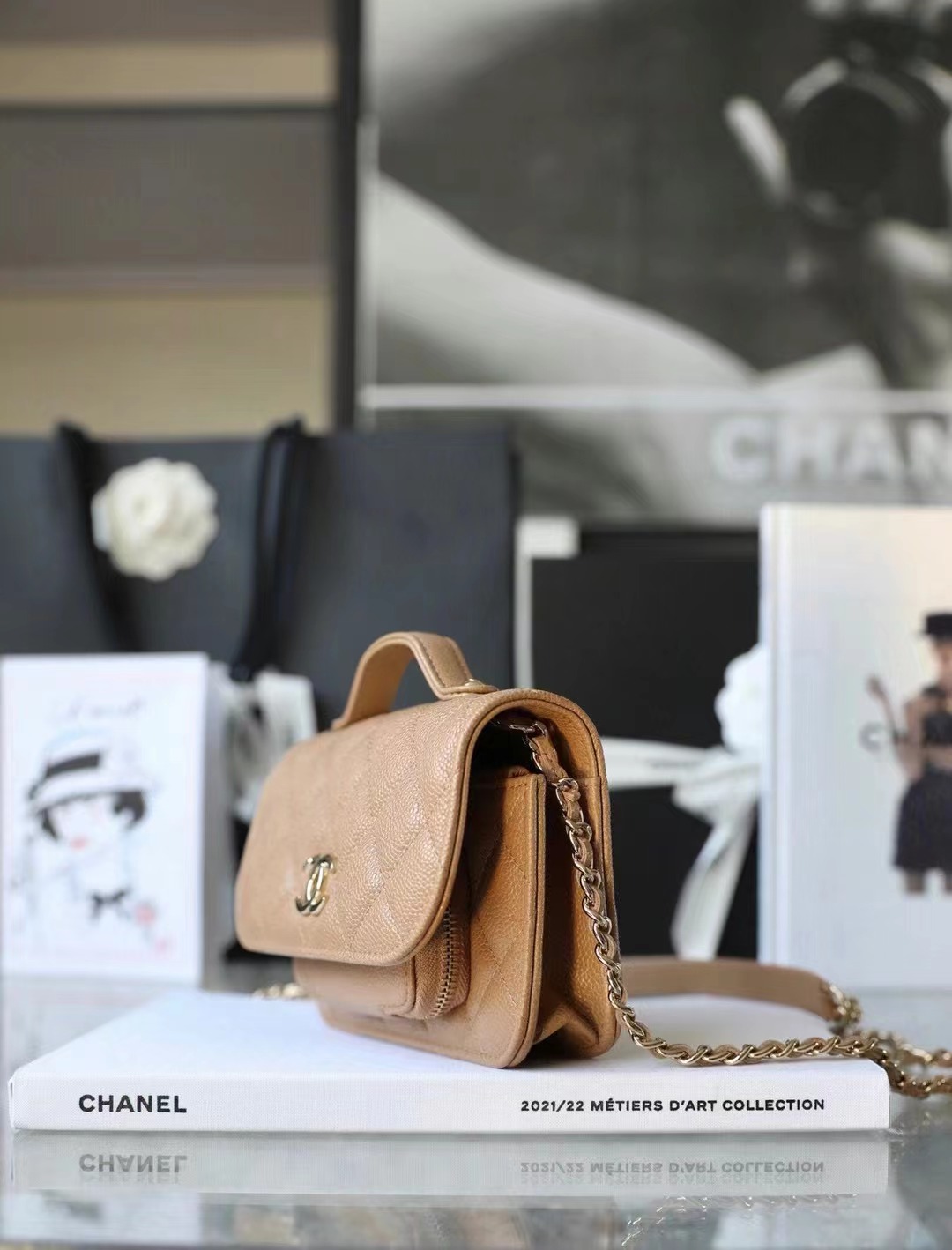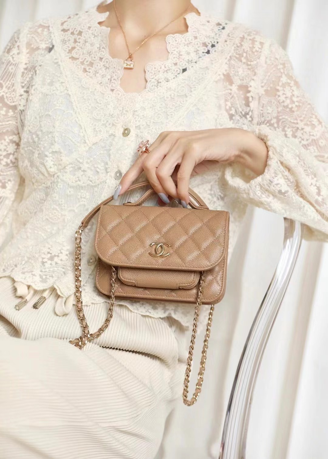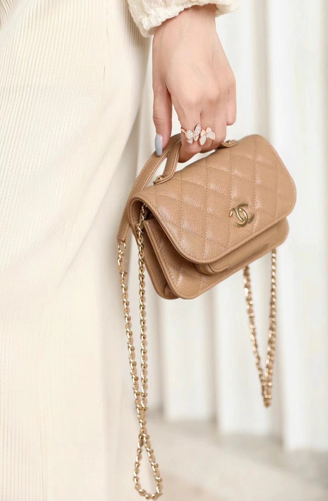 Chanel 22/23 mini messenger bag/Chain bag Grained Calfskin & Gold-Tone Metal chai