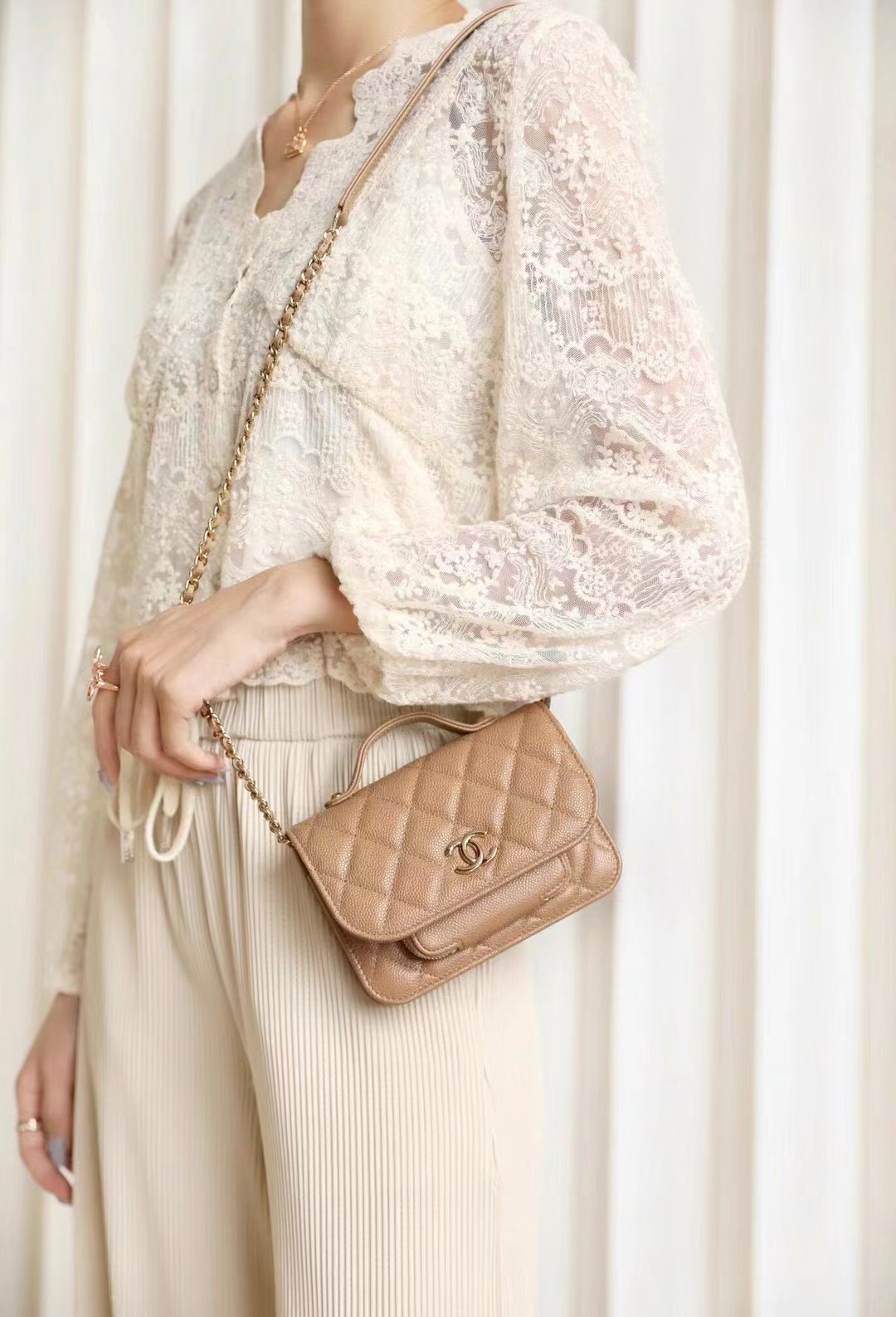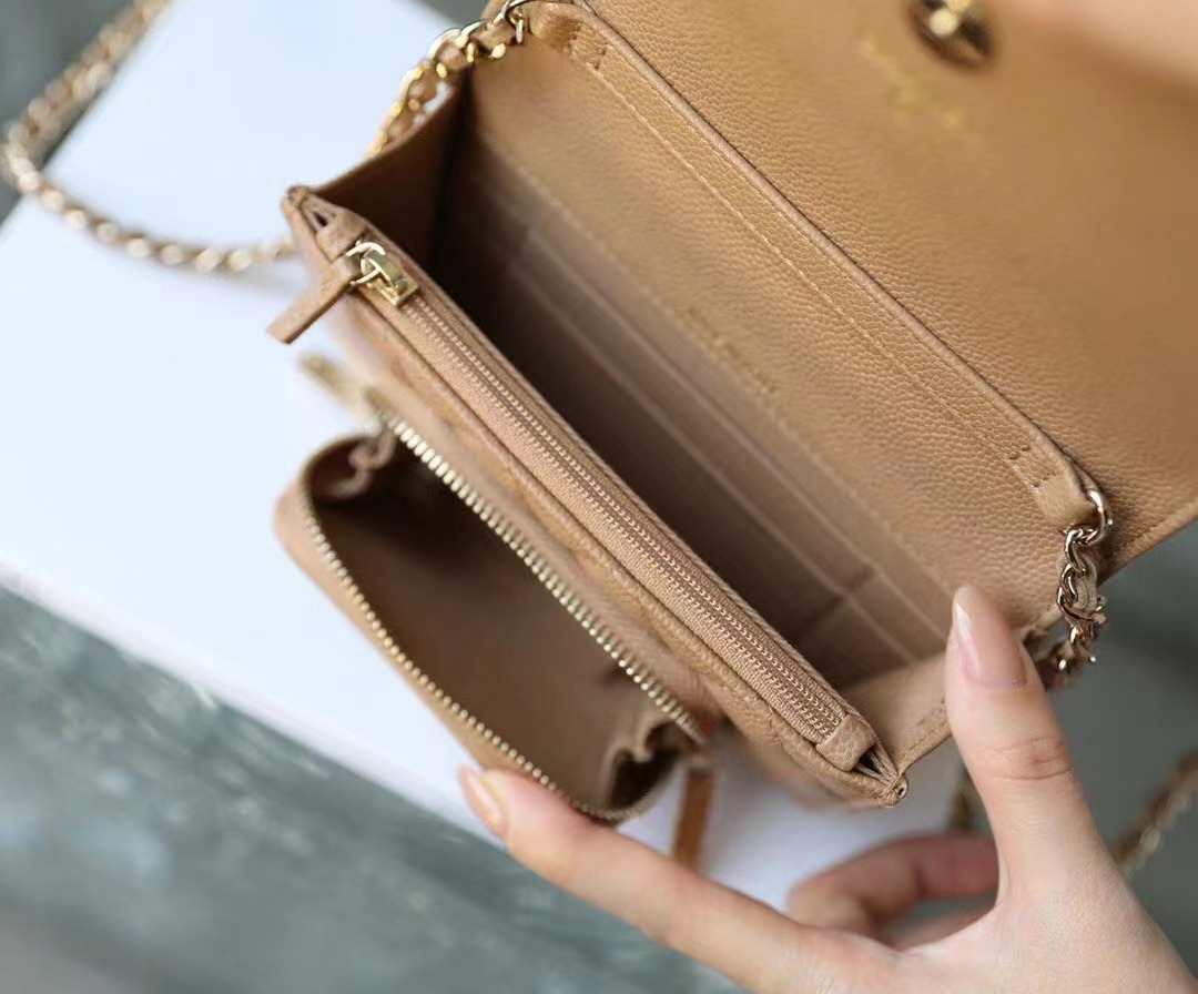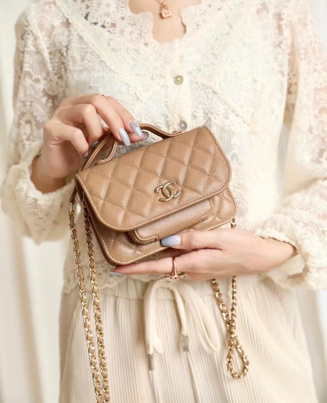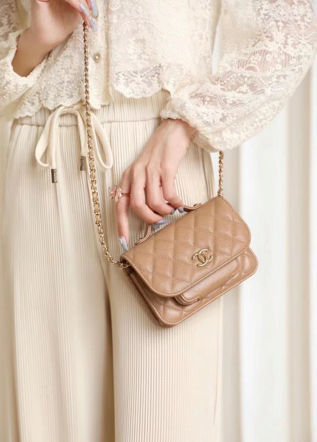 Chanel 22/23 mini messenger bag/Chain bag Grained Calfskin & Gold-Tone Metal chai