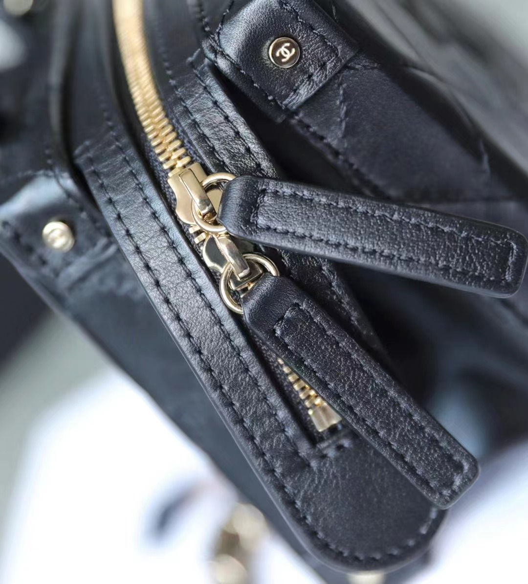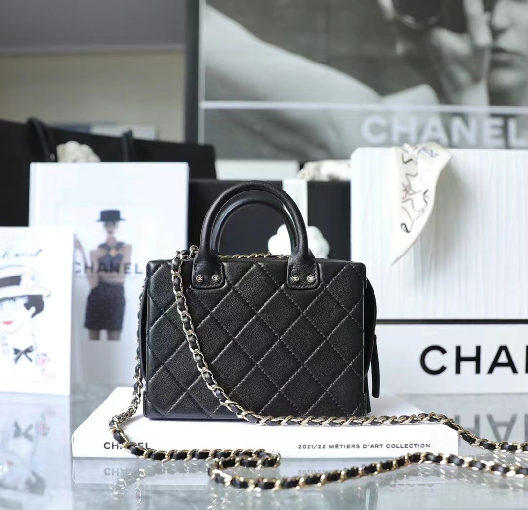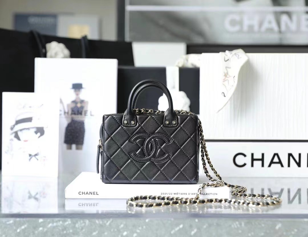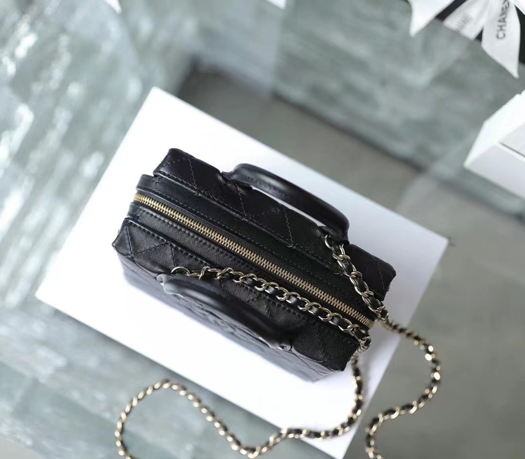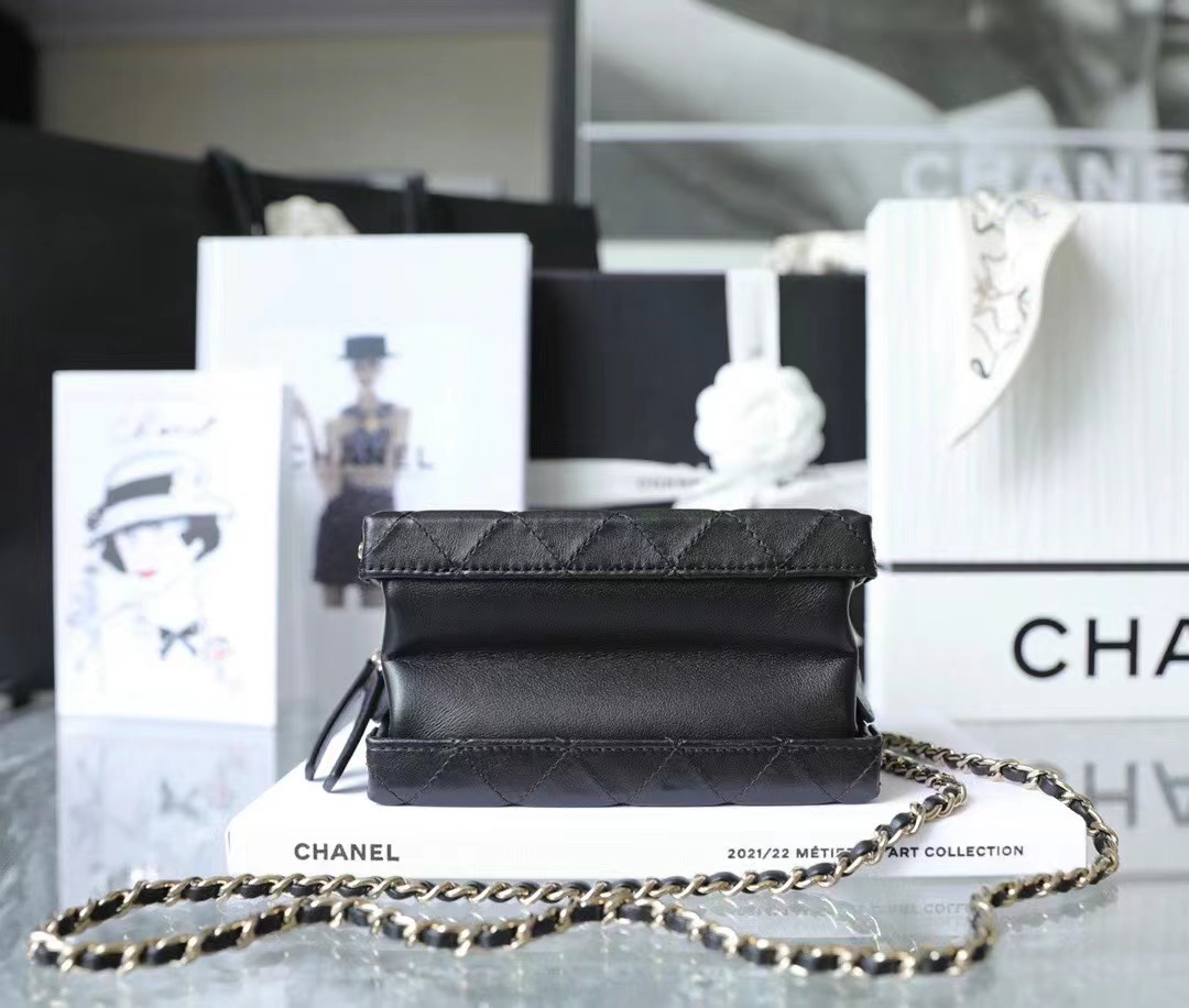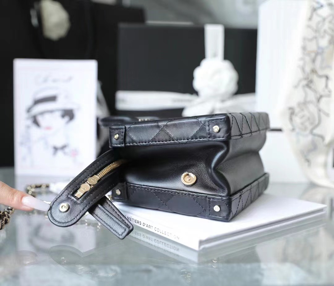 • Chanel 22/23 vintage makeup bag Lambskin & Shiny Light Gold Metal black