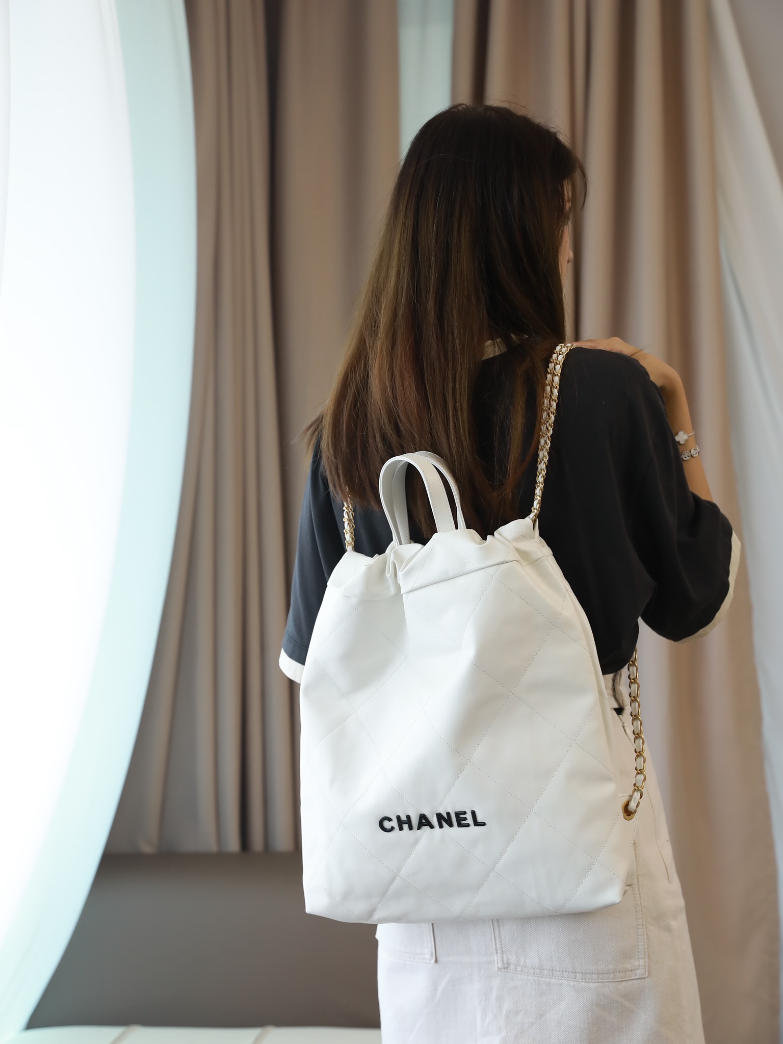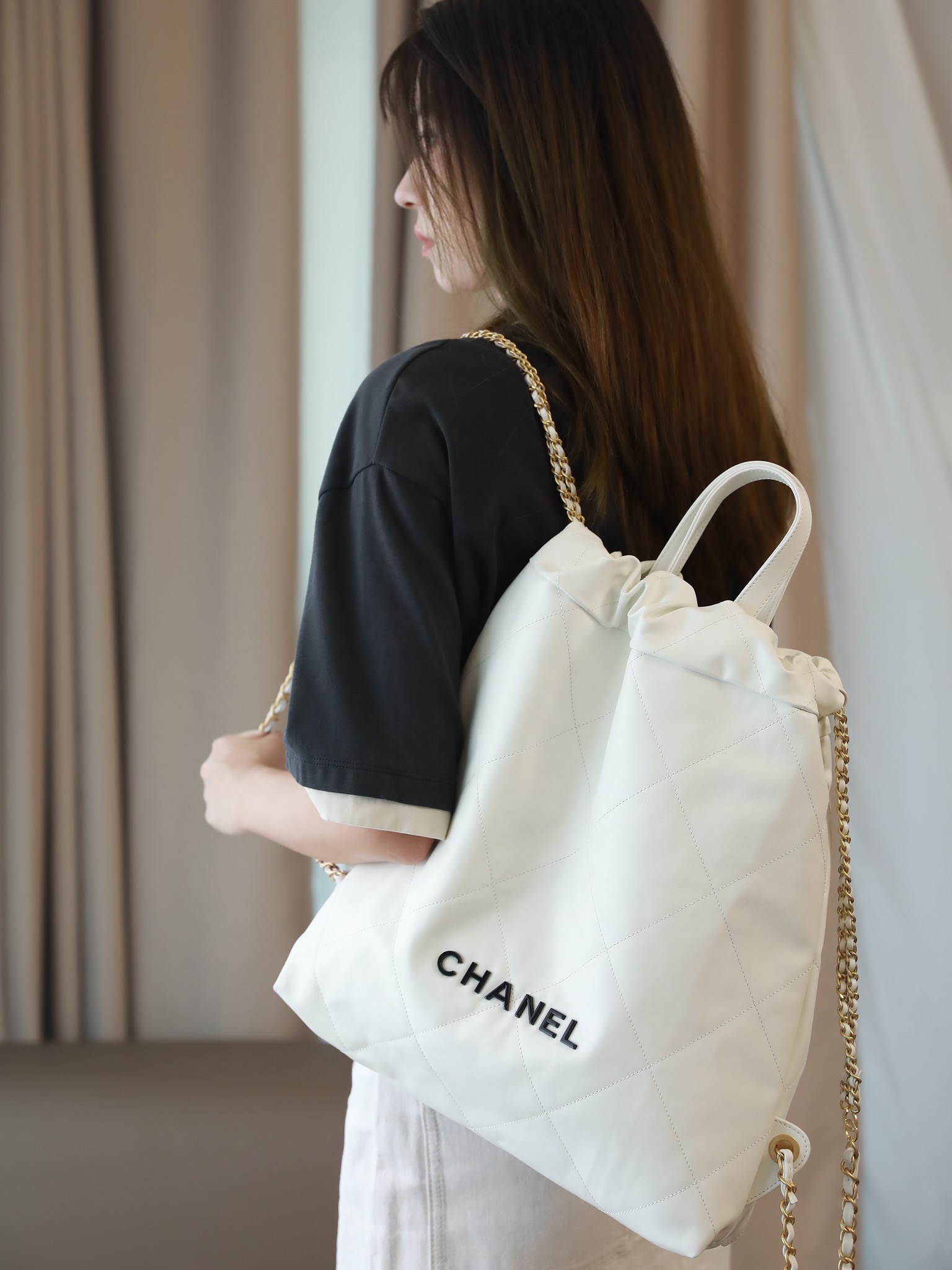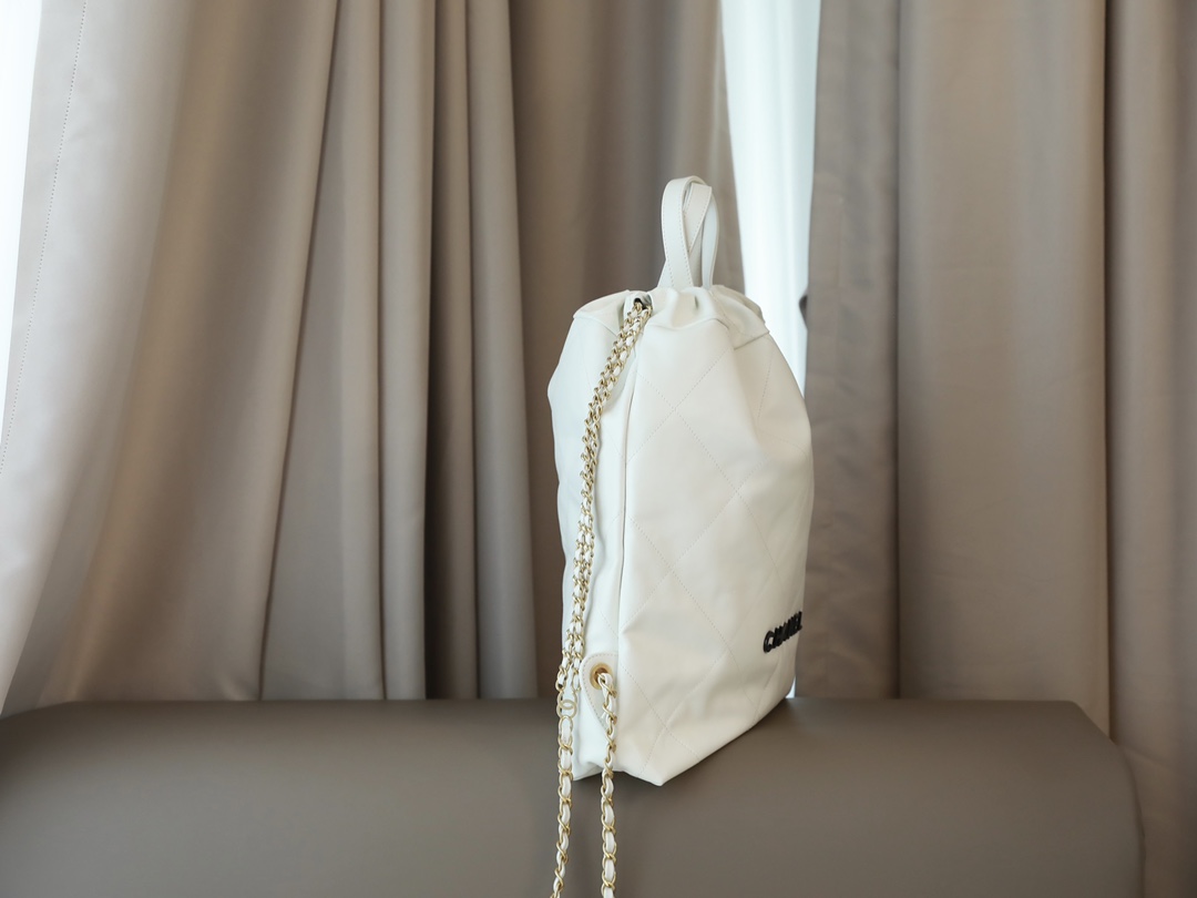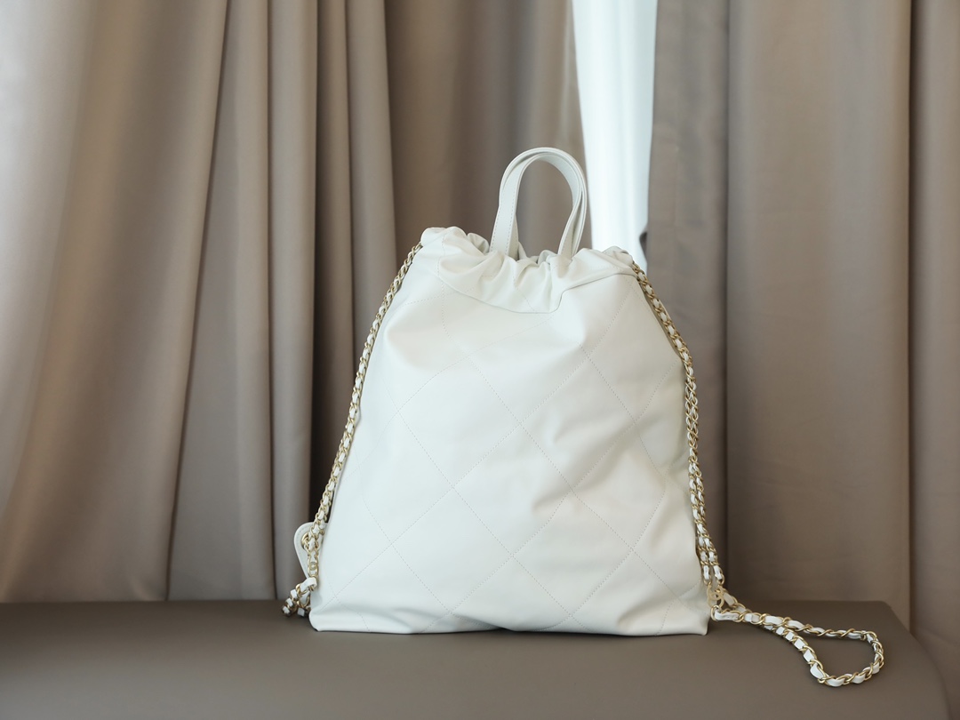 CHANEL 22 Backpack Shiny Calfskin White