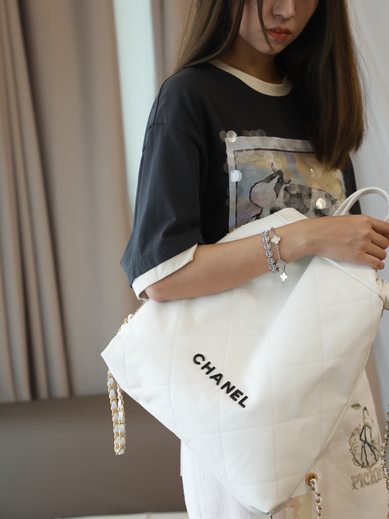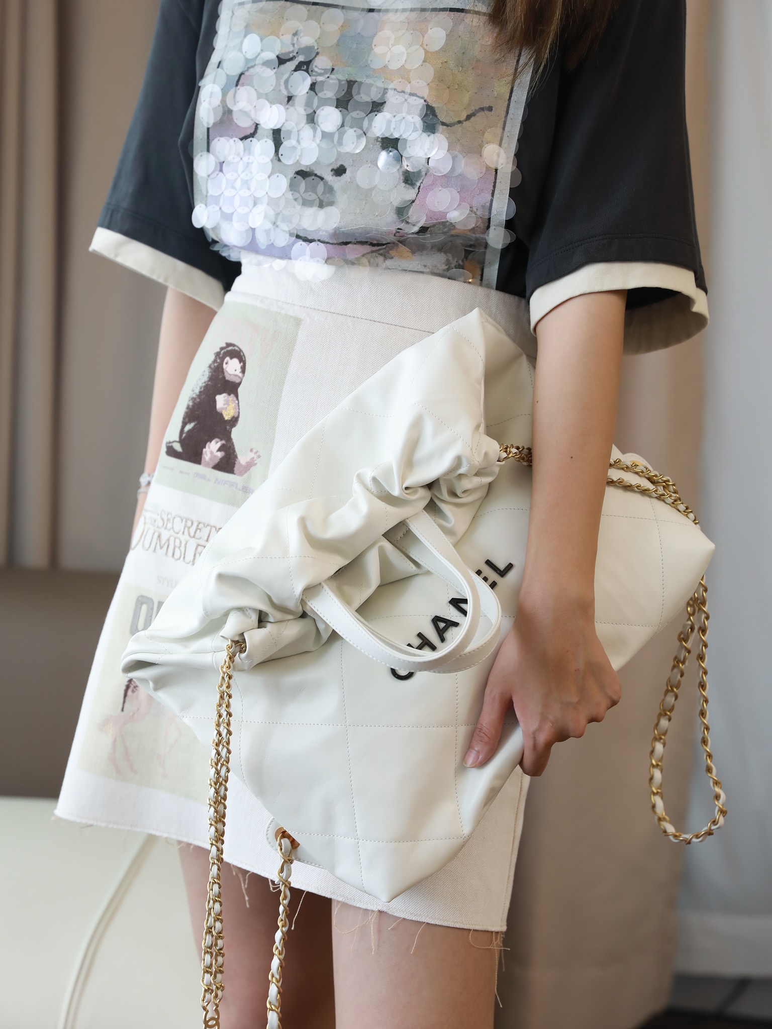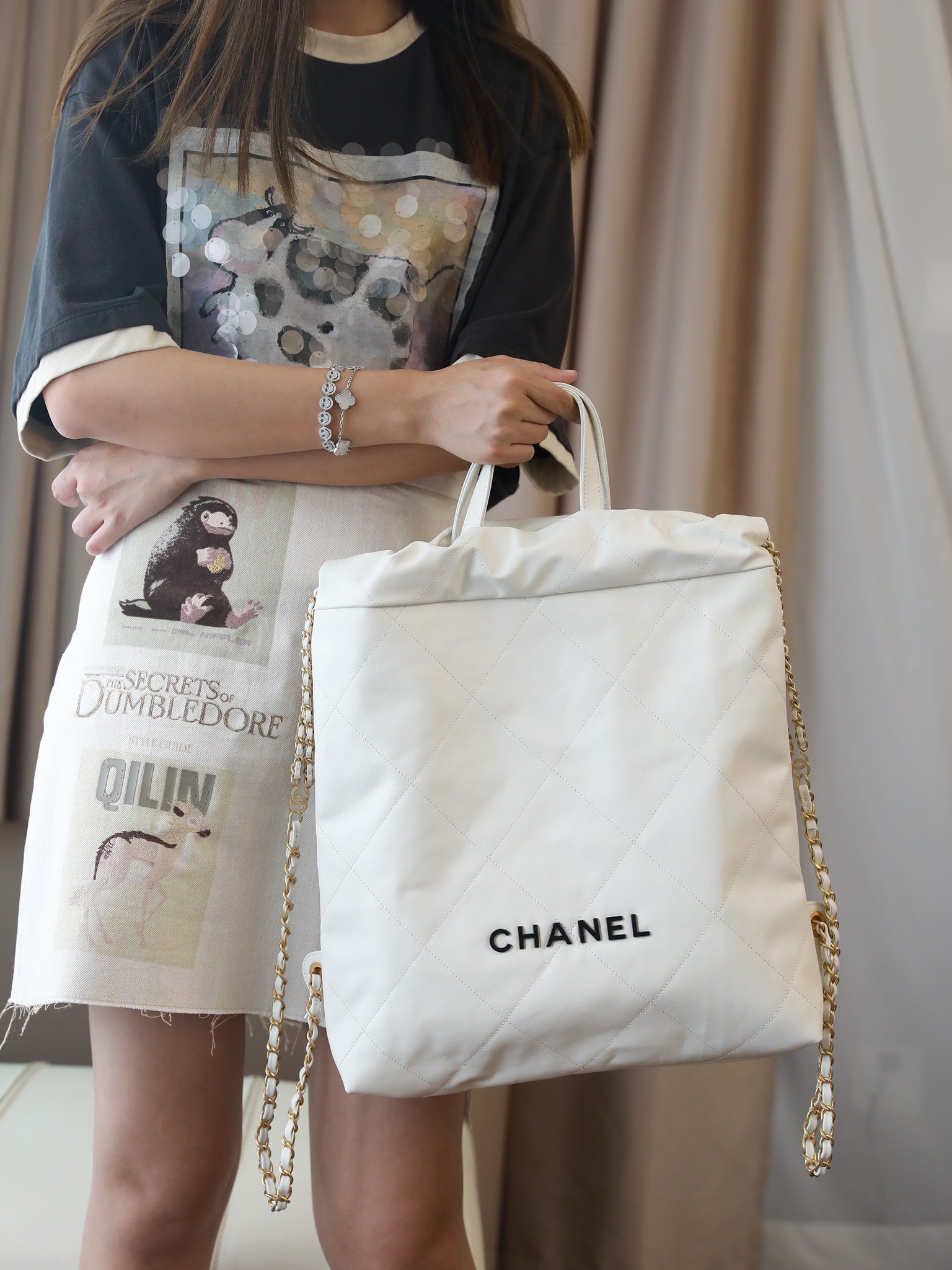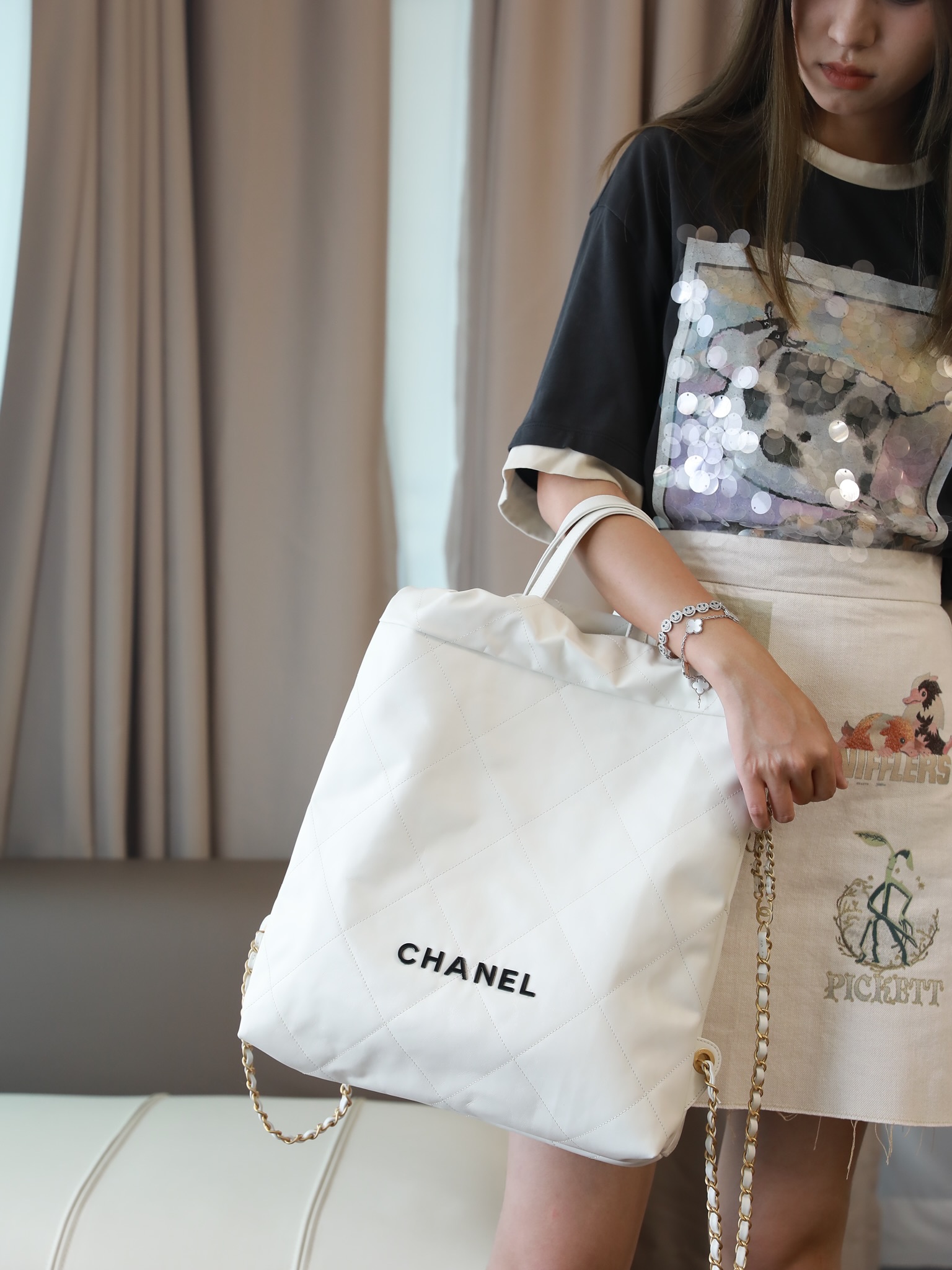 CHANEL 22 Backpack Shiny Calfskin White