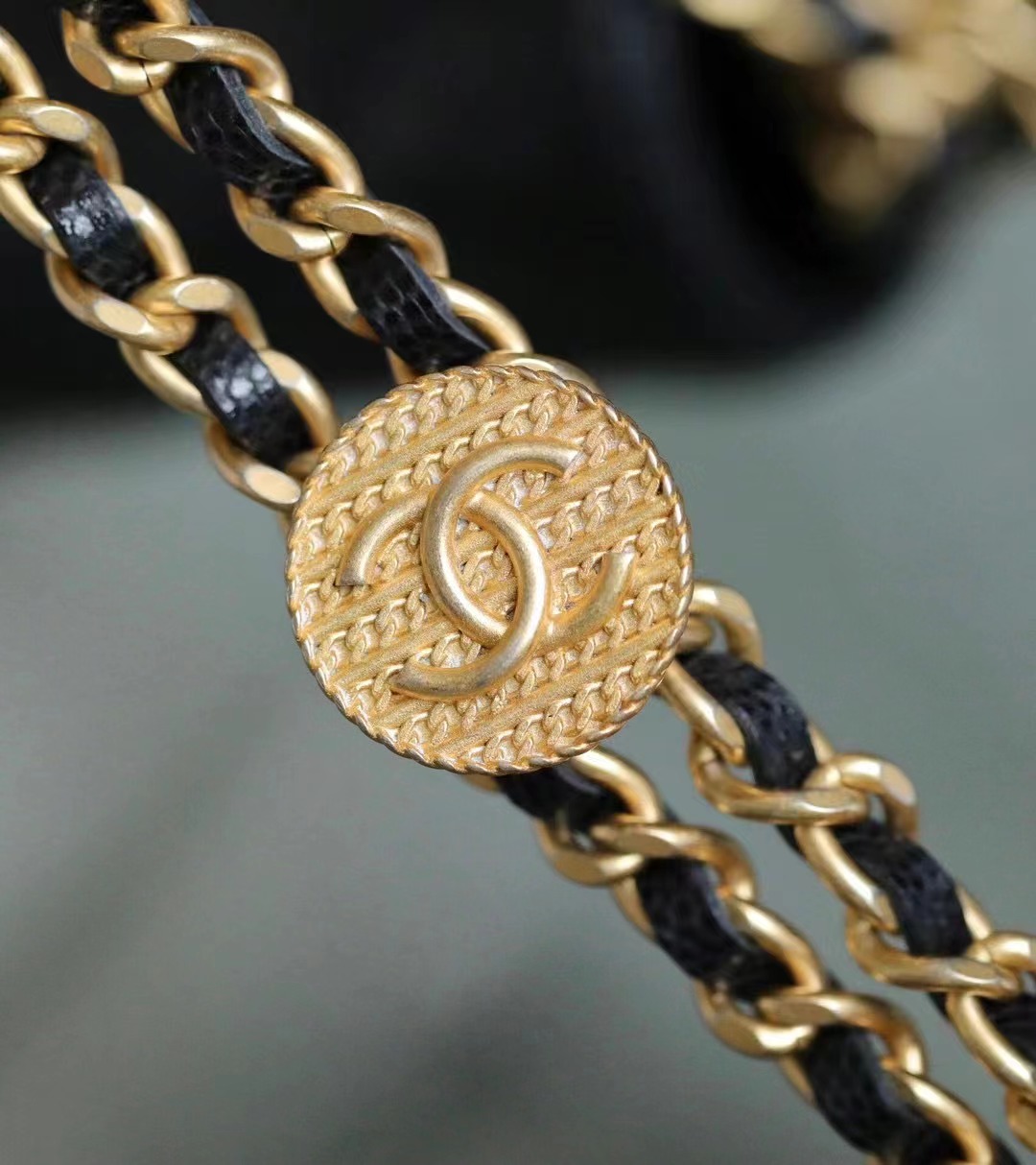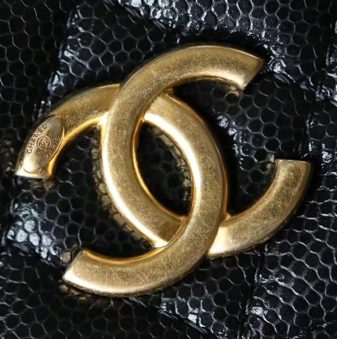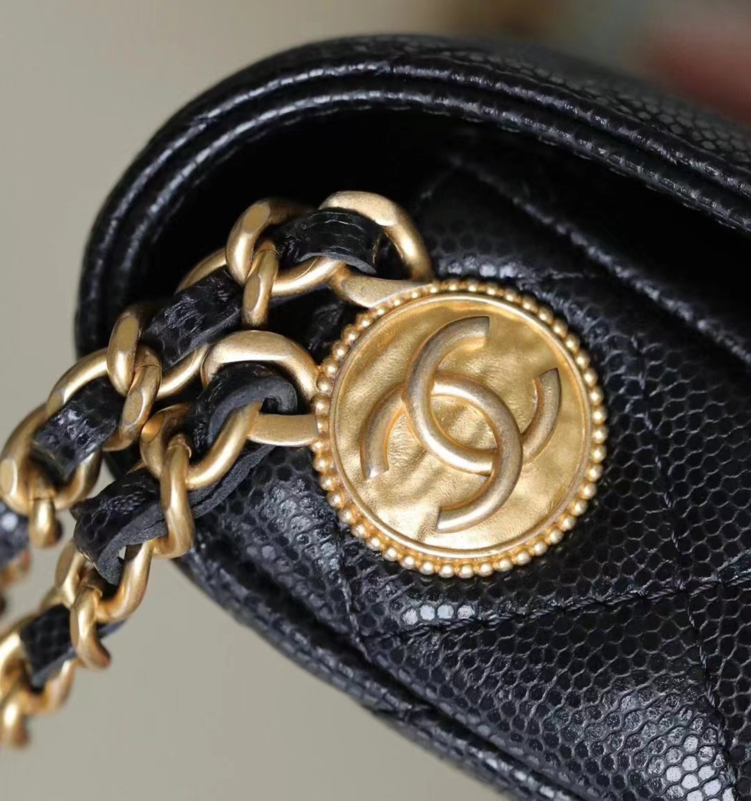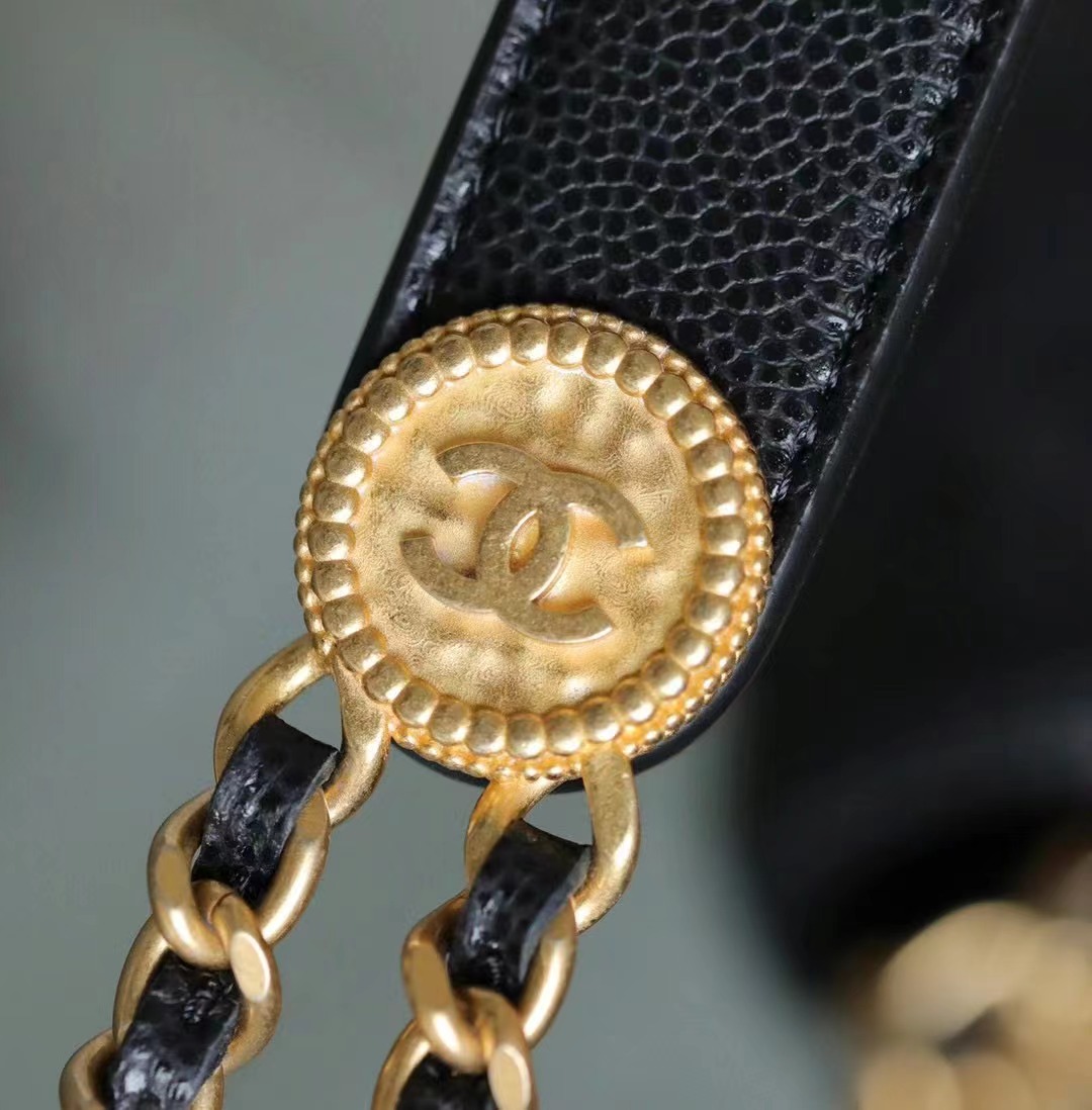 Chanel 22 badge gold Chain bag Grained Calfskin & Gold-Tone Metal Black