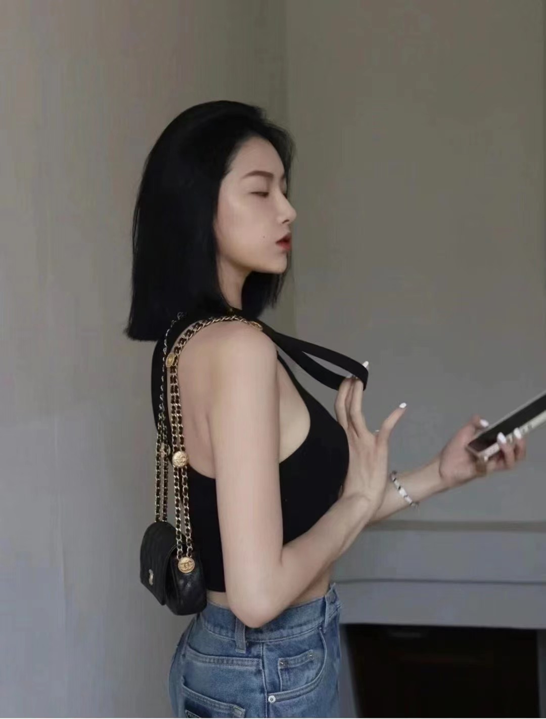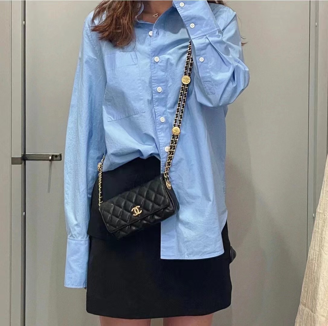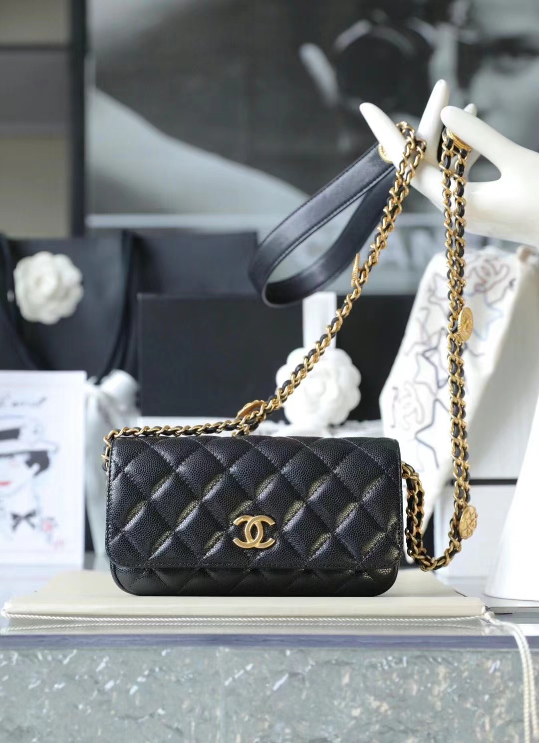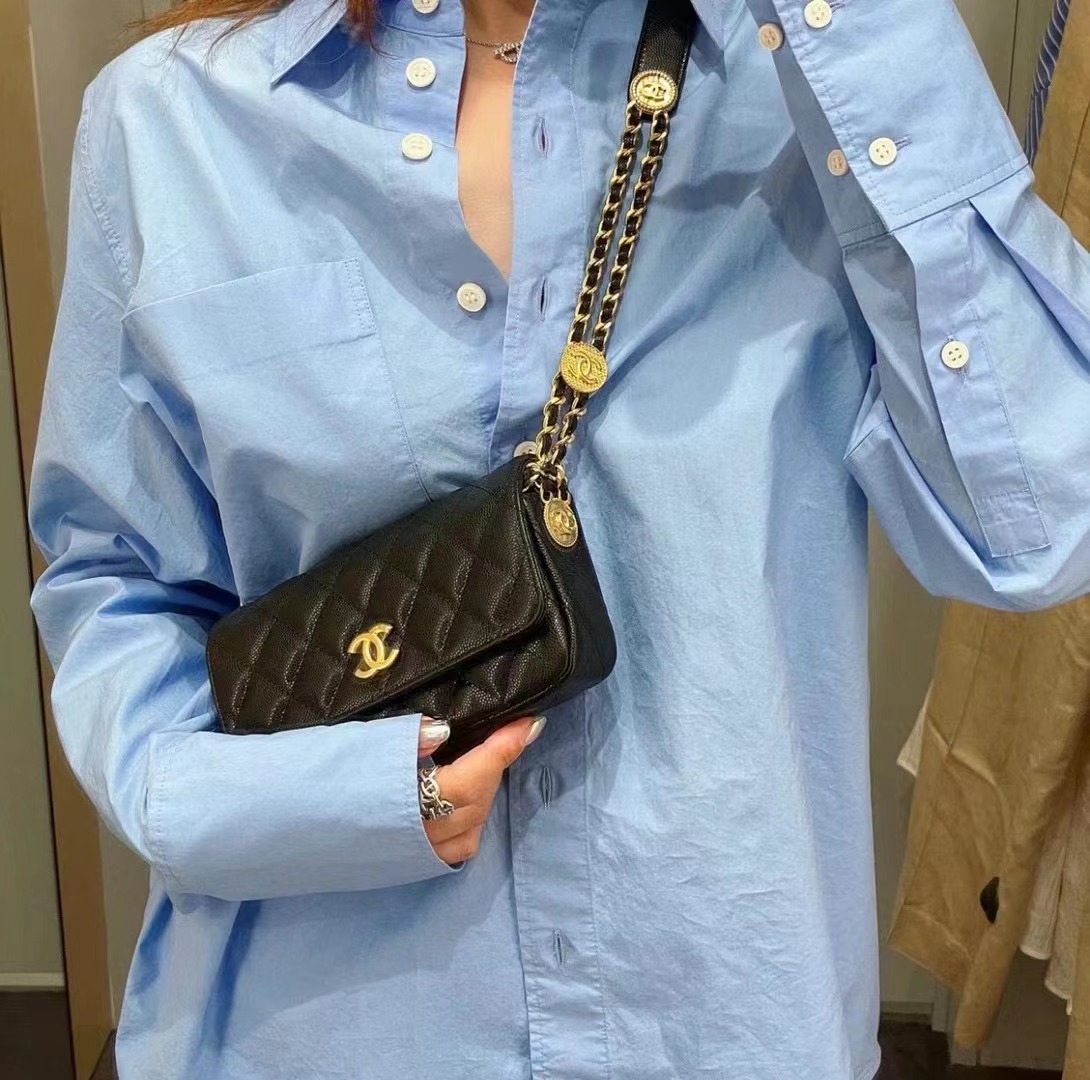 Chanel 22 badge gold Chain bag Grained Calfskin & Gold-Tone Metal Black