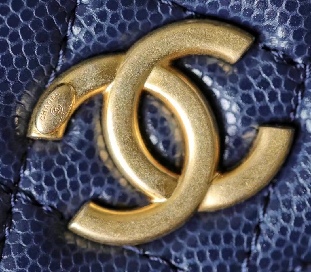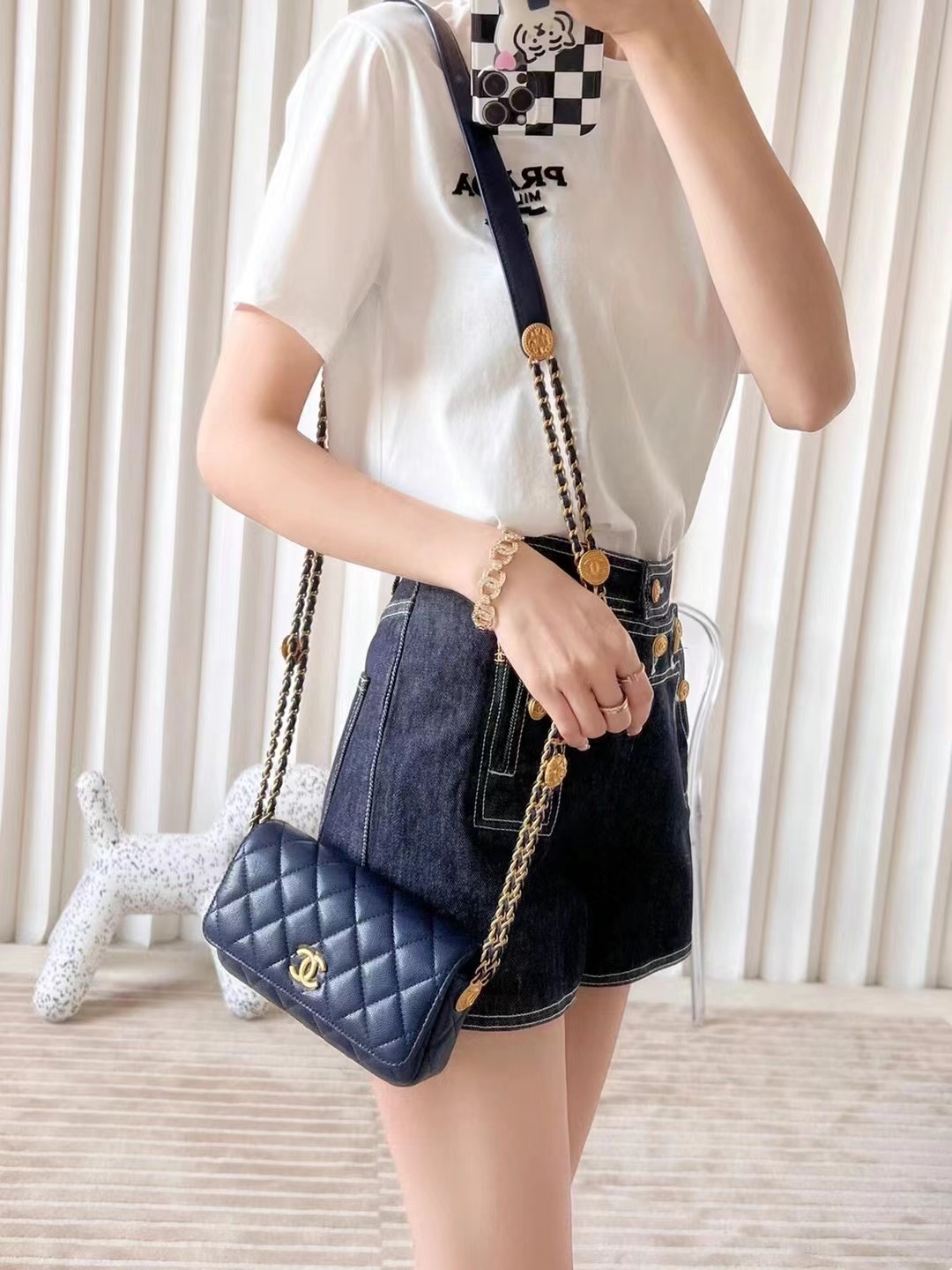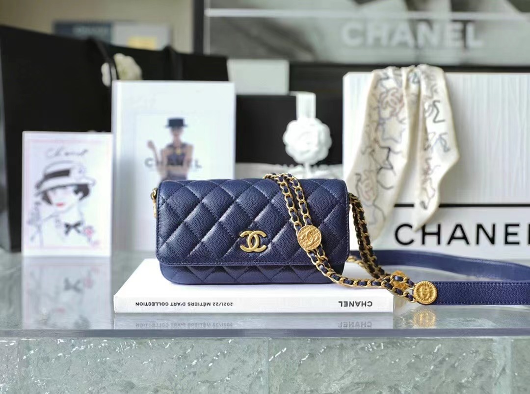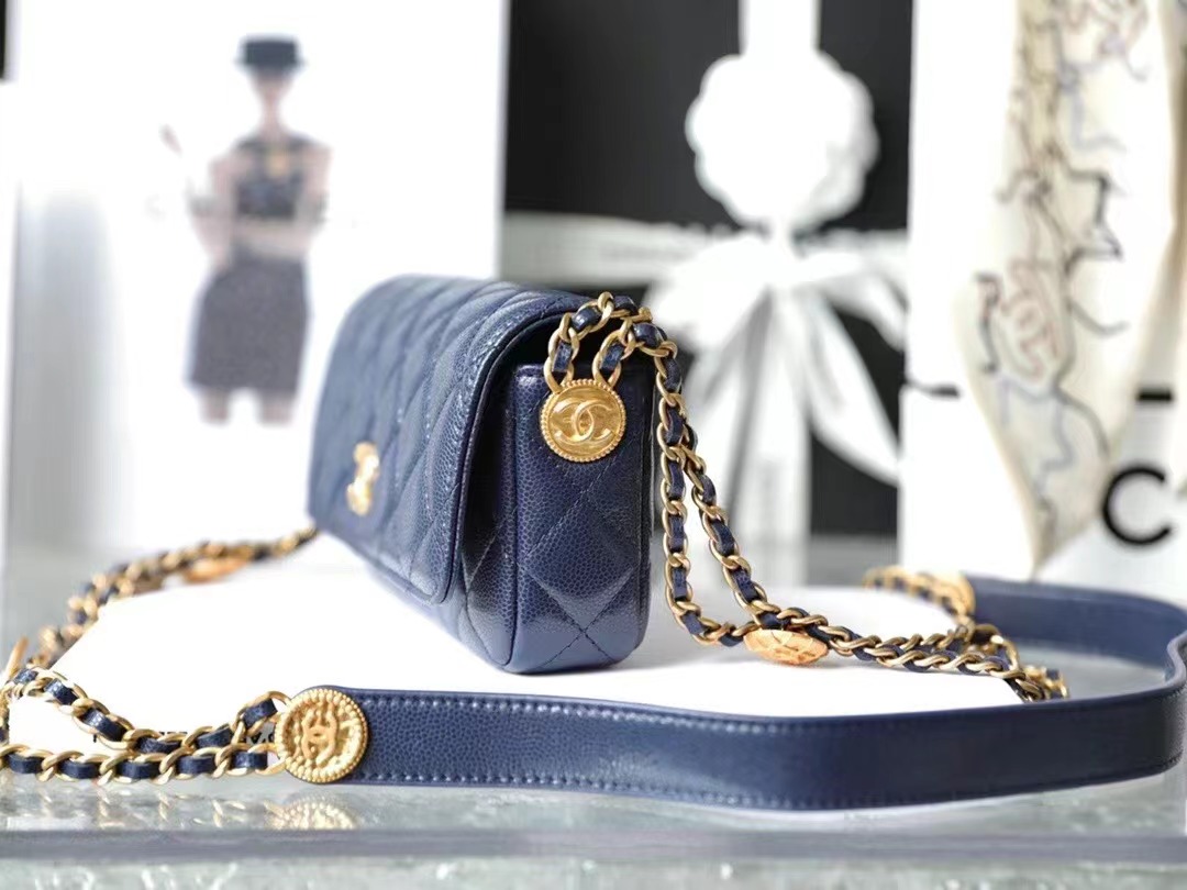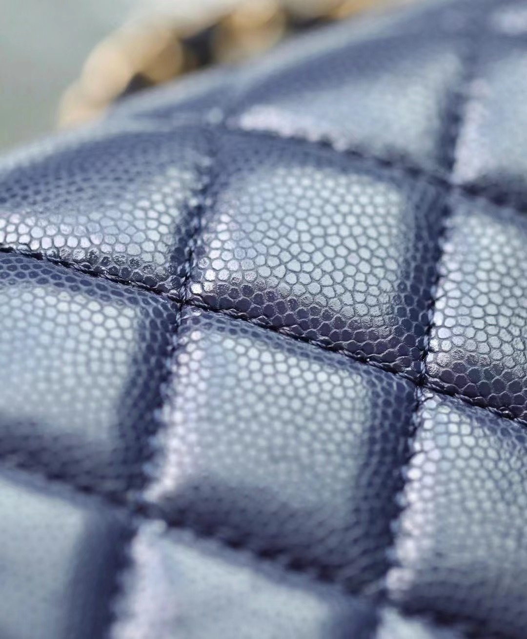 Chanel 22 badge gold Chain bag Grained Calfskin & Gold-Tone Metal navy blue