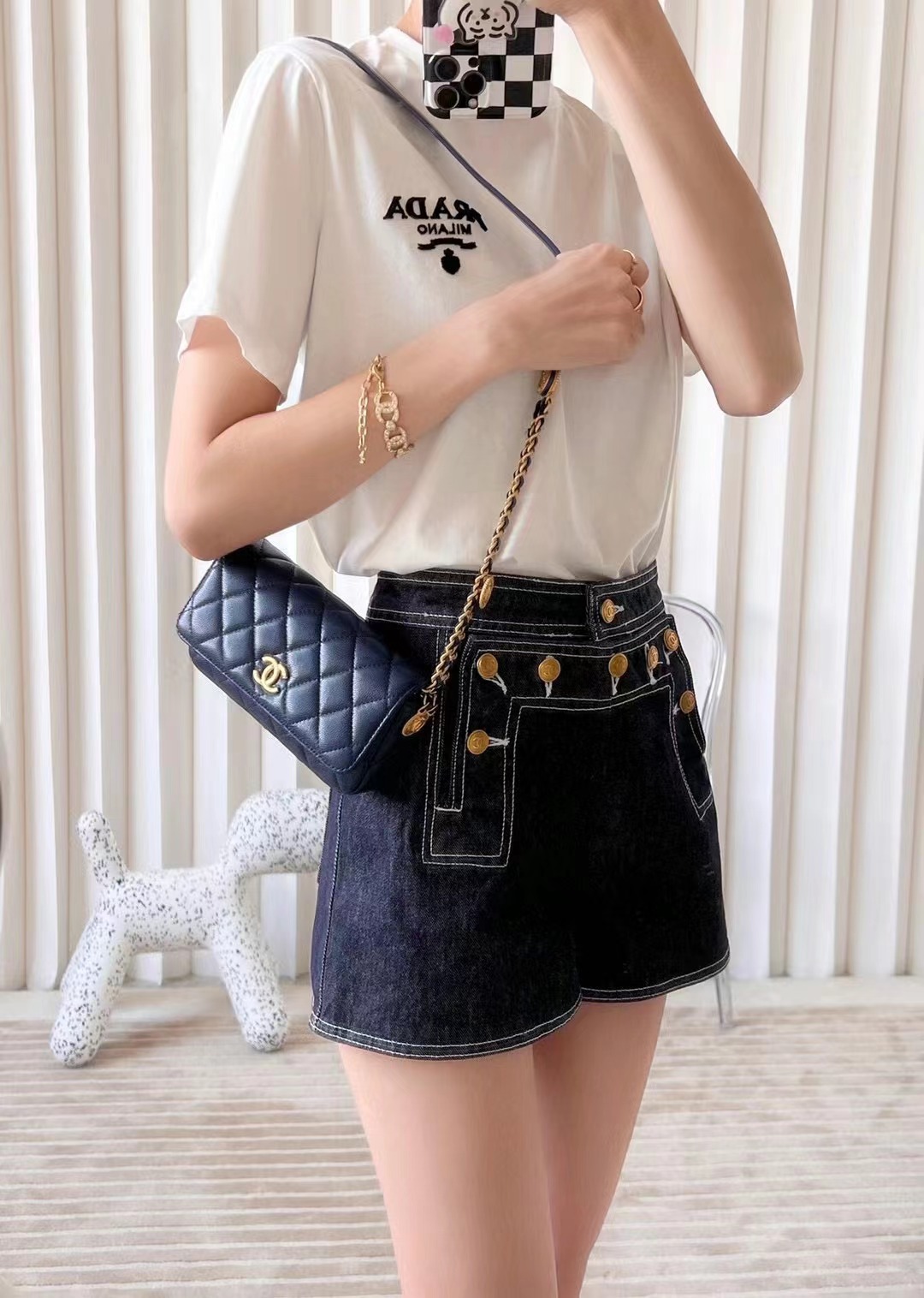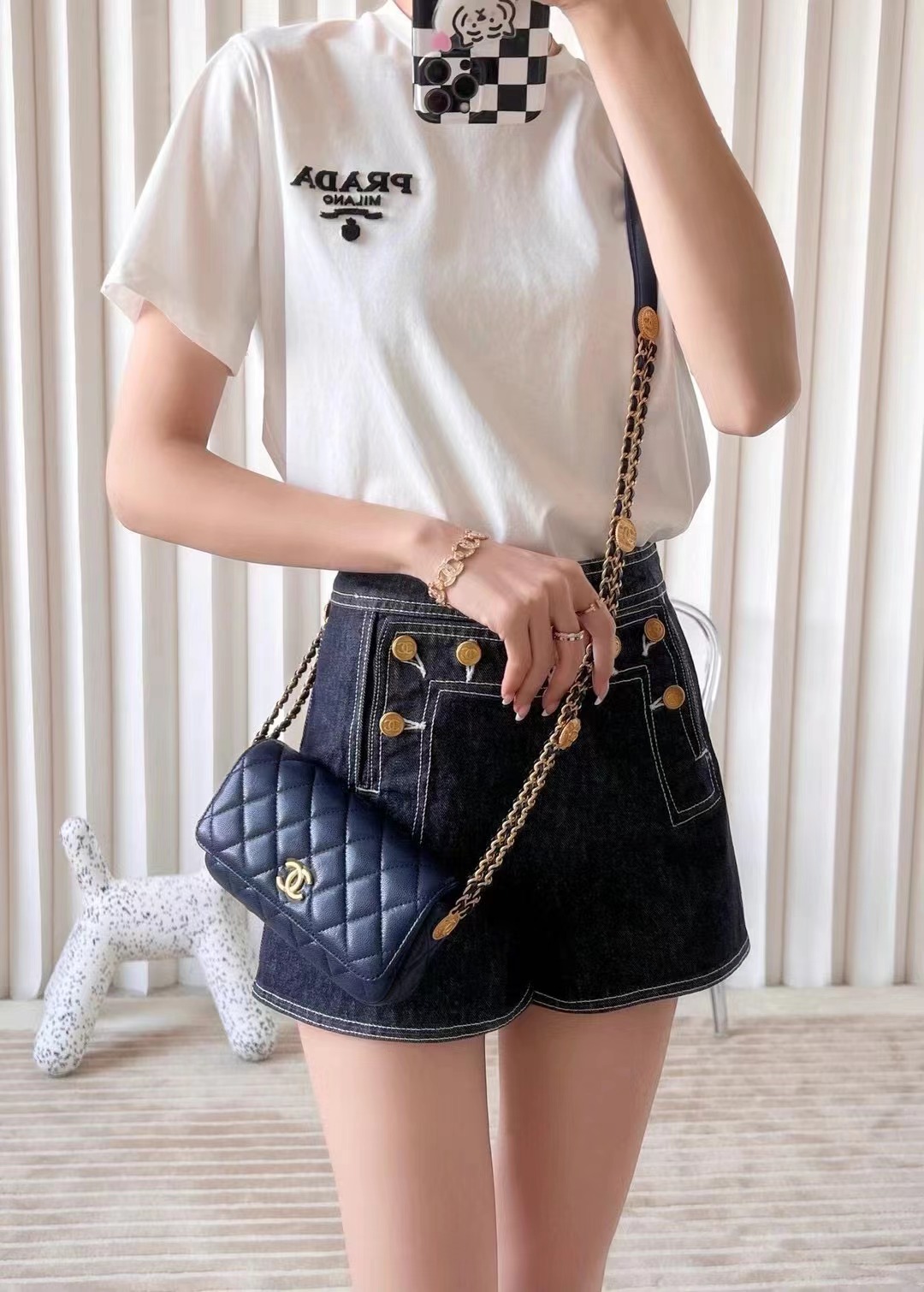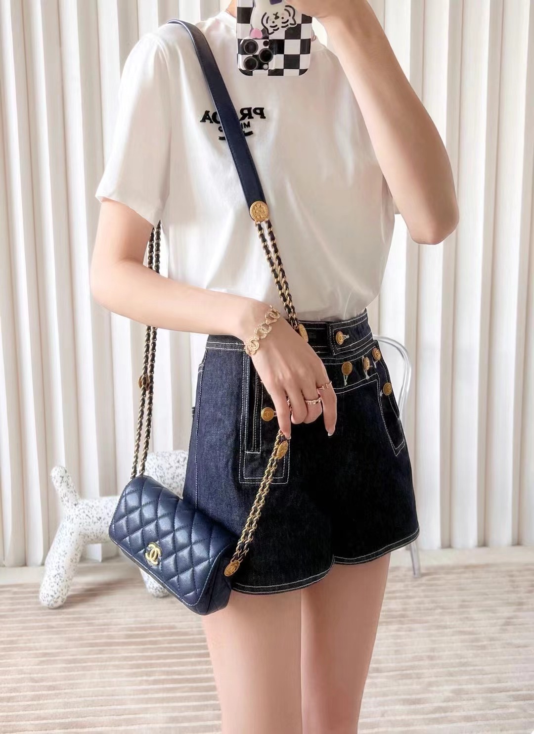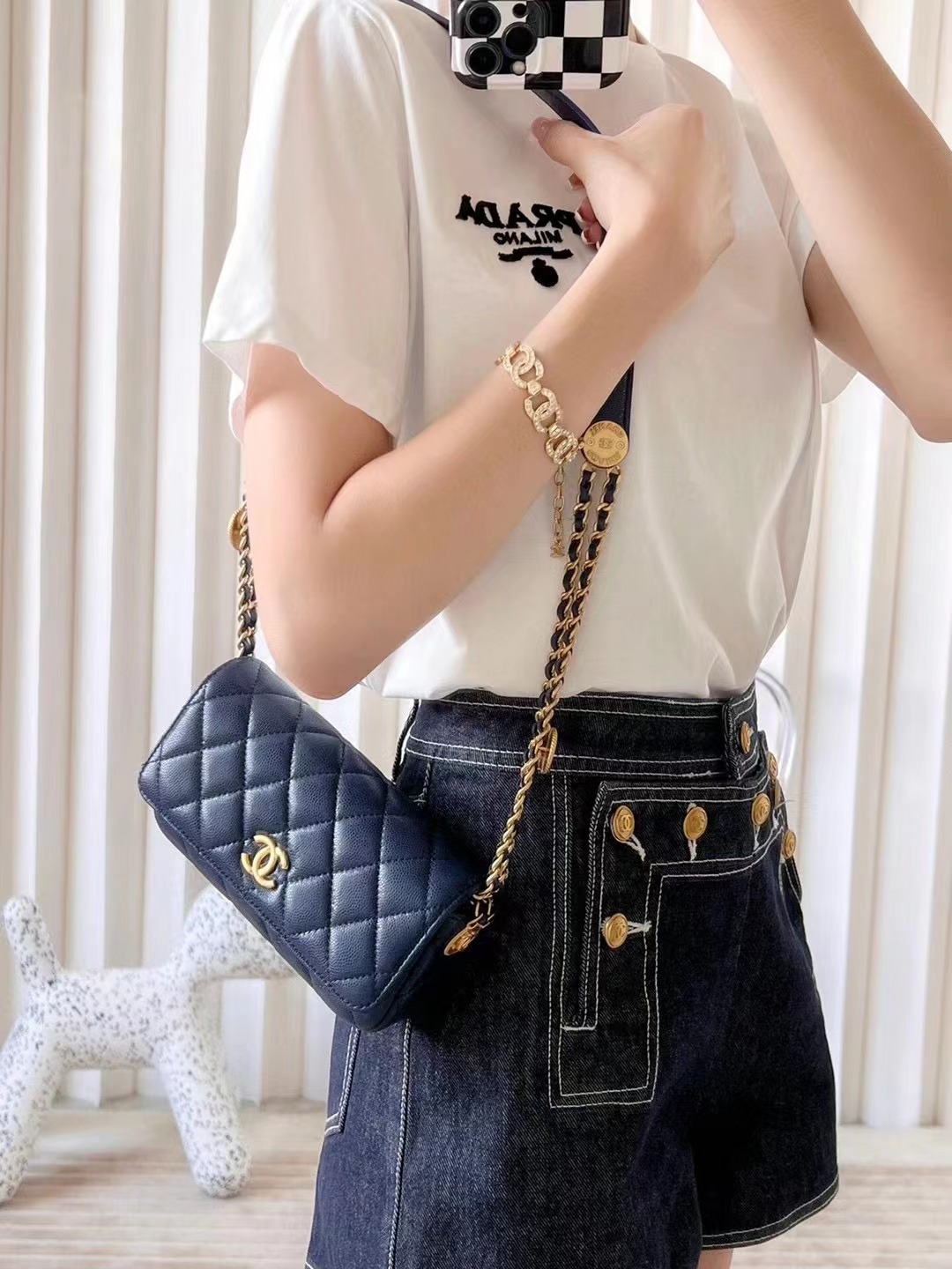 Chanel 22 badge gold Chain bag Grained Calfskin & Gold-Tone Metal navy blue