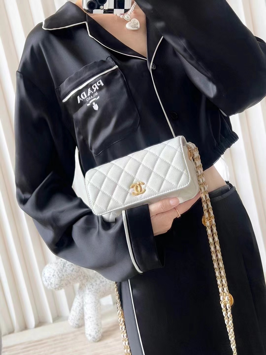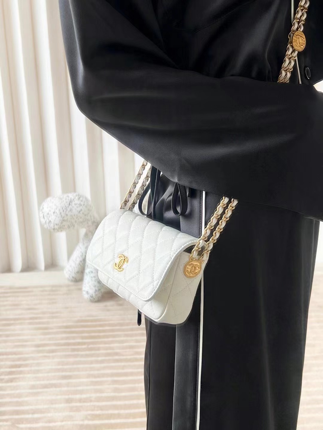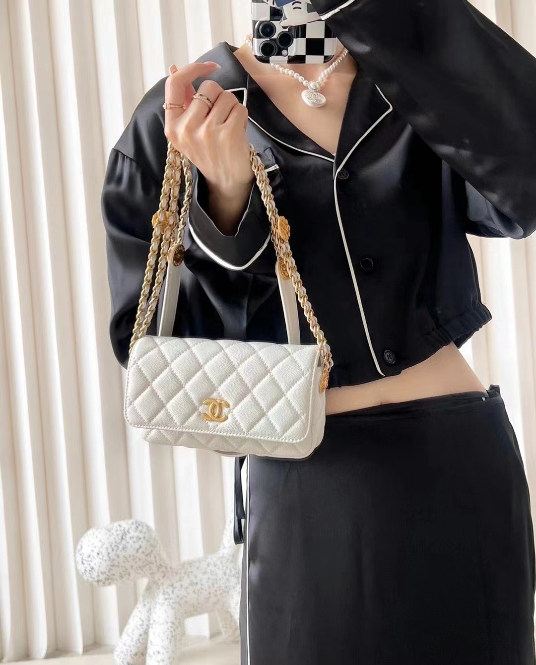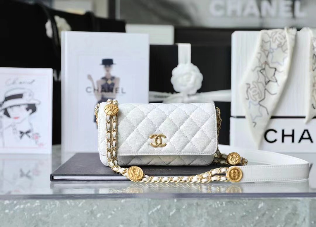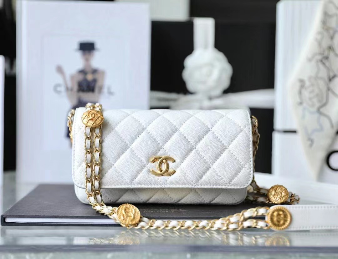 • Chanel 22 badge gold Chain bag Grained Calfskin & Gold-Tone Metal White
