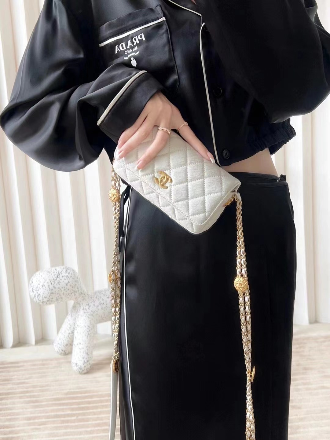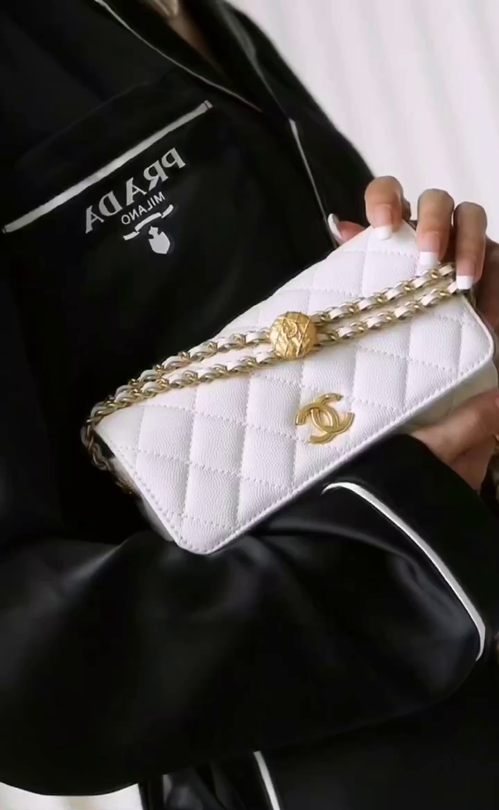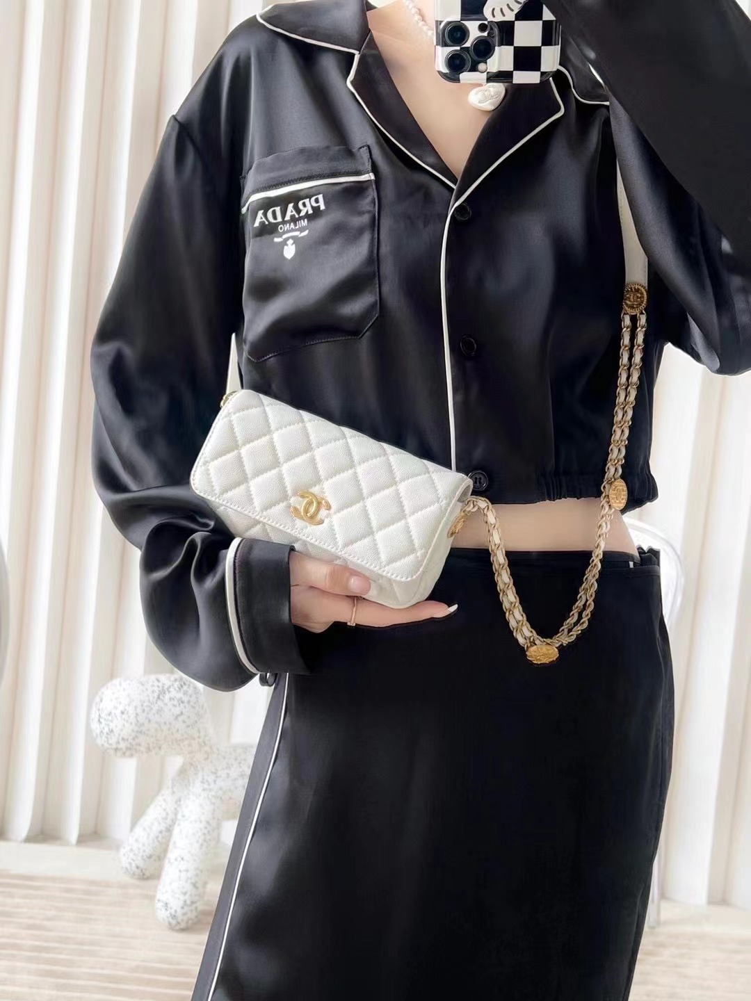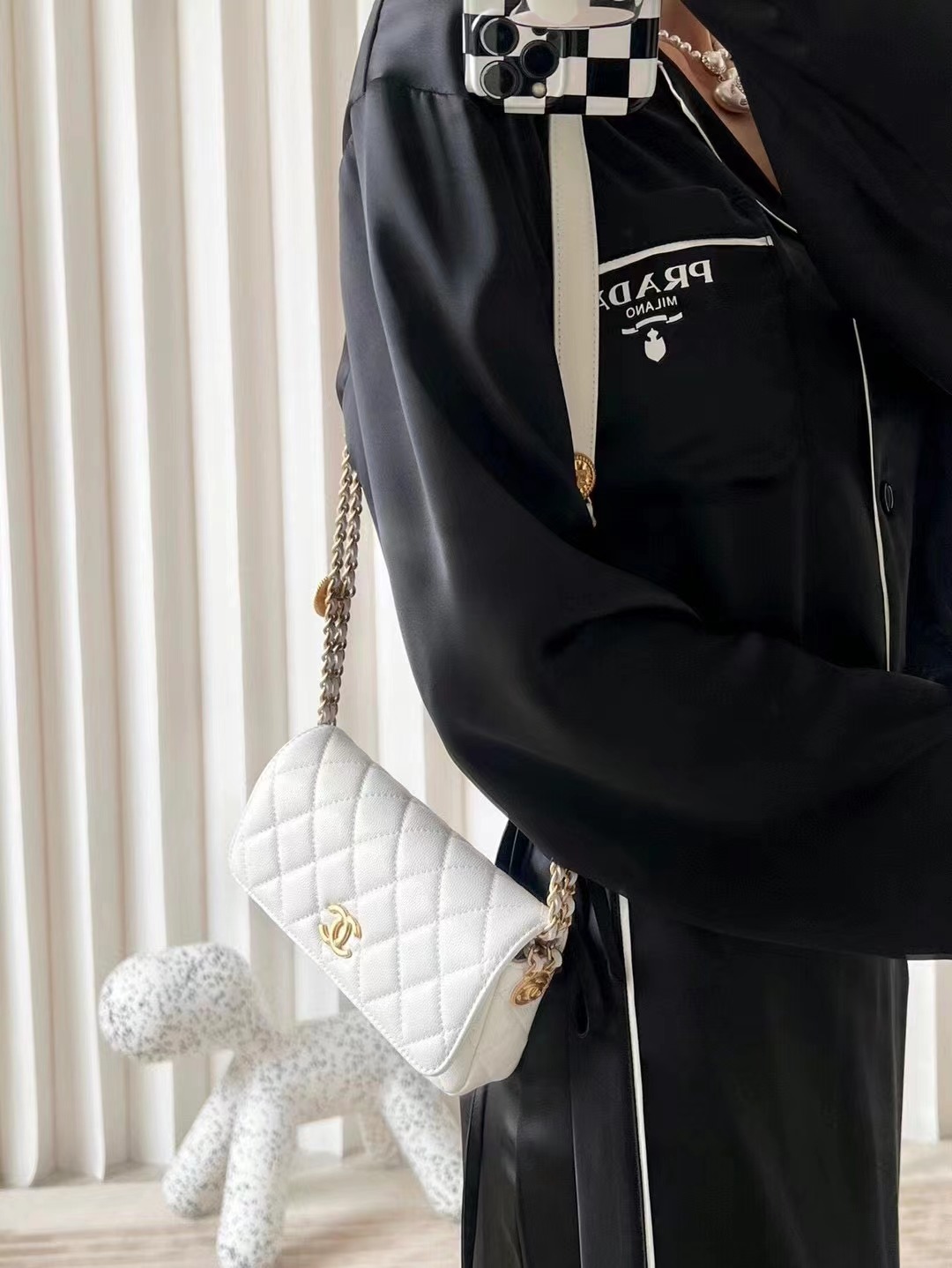 • Chanel 22 badge gold Chain bag Grained Calfskin & Gold-Tone Metal White