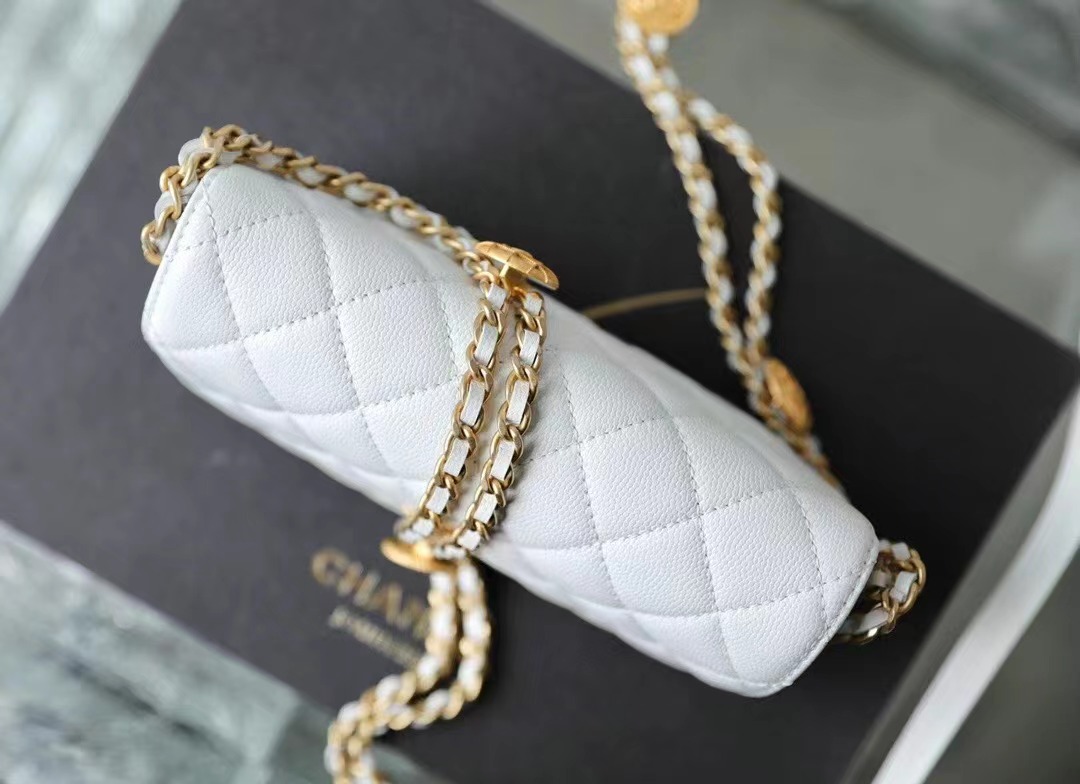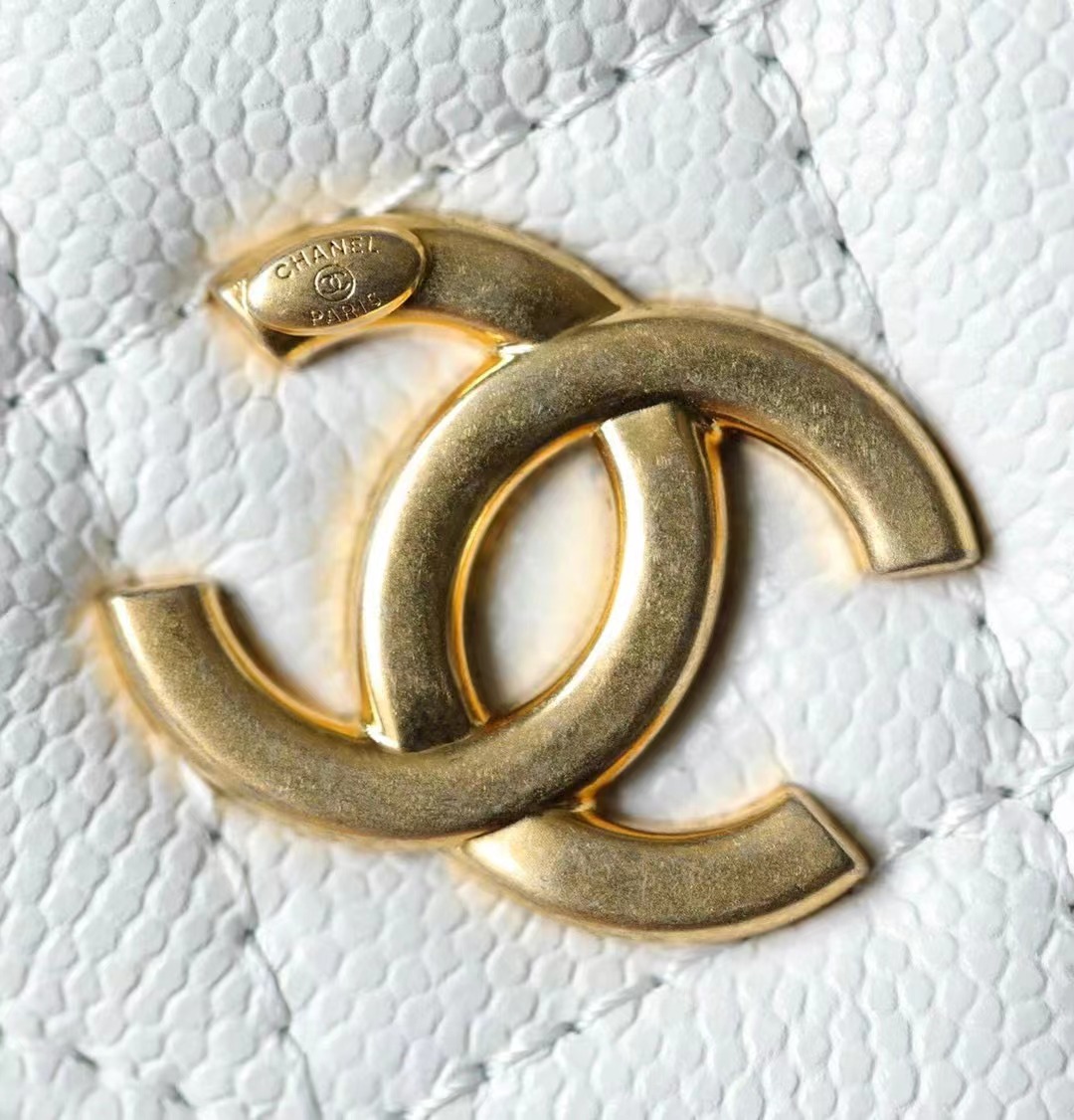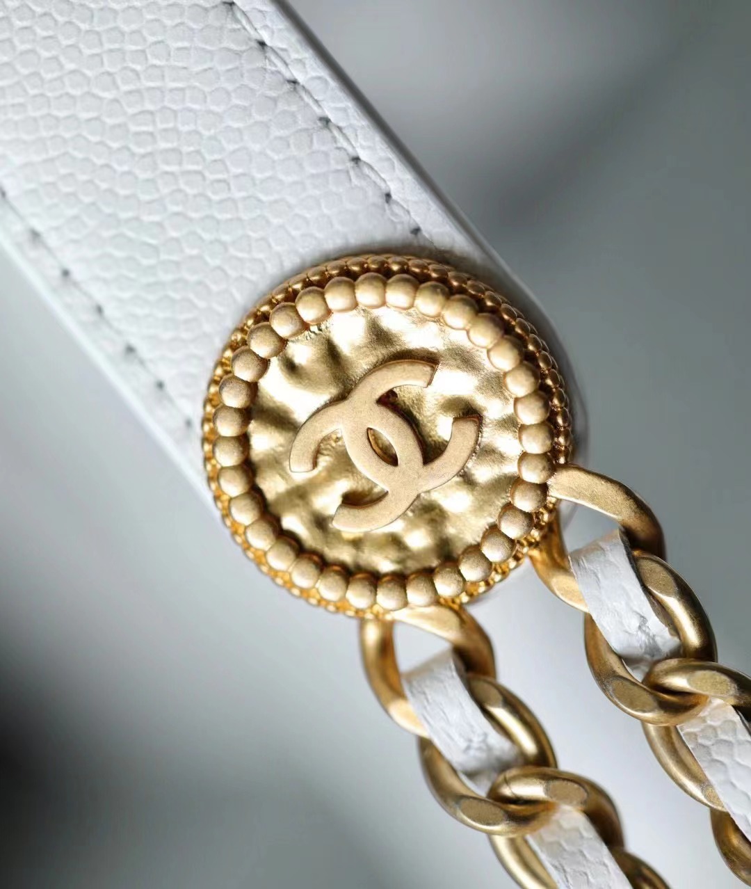 Chanel 22 badge gold Chain bag Grained Calfskin & Gold-Tone Metal White
