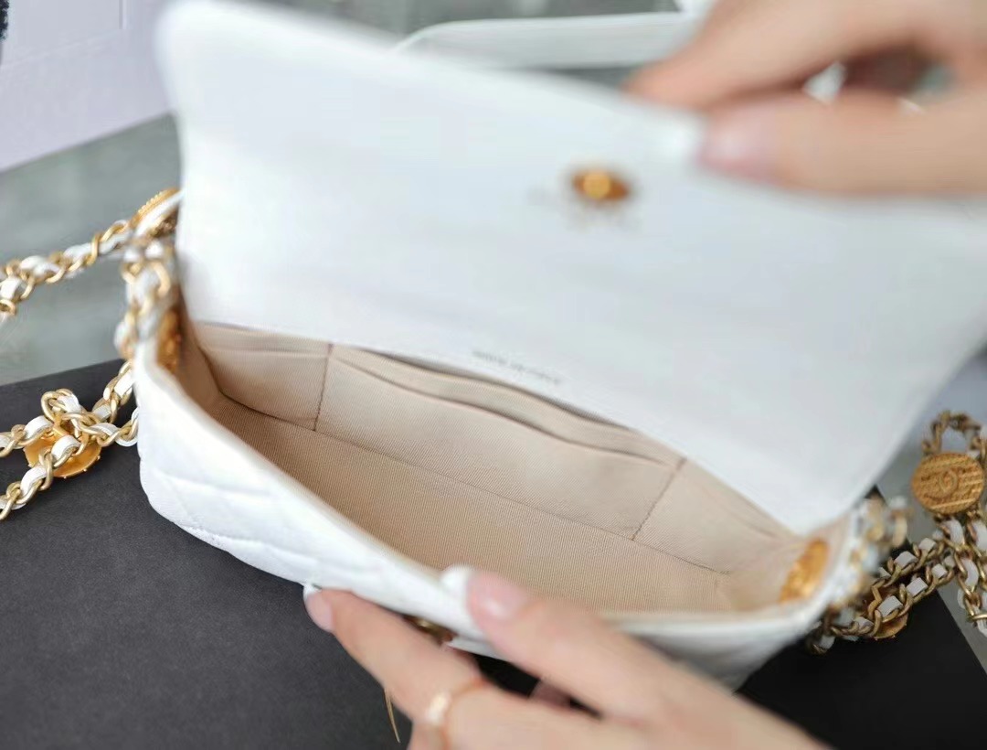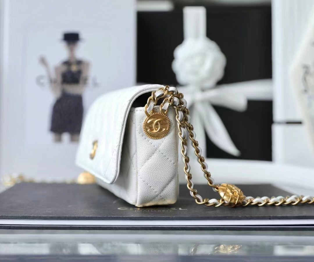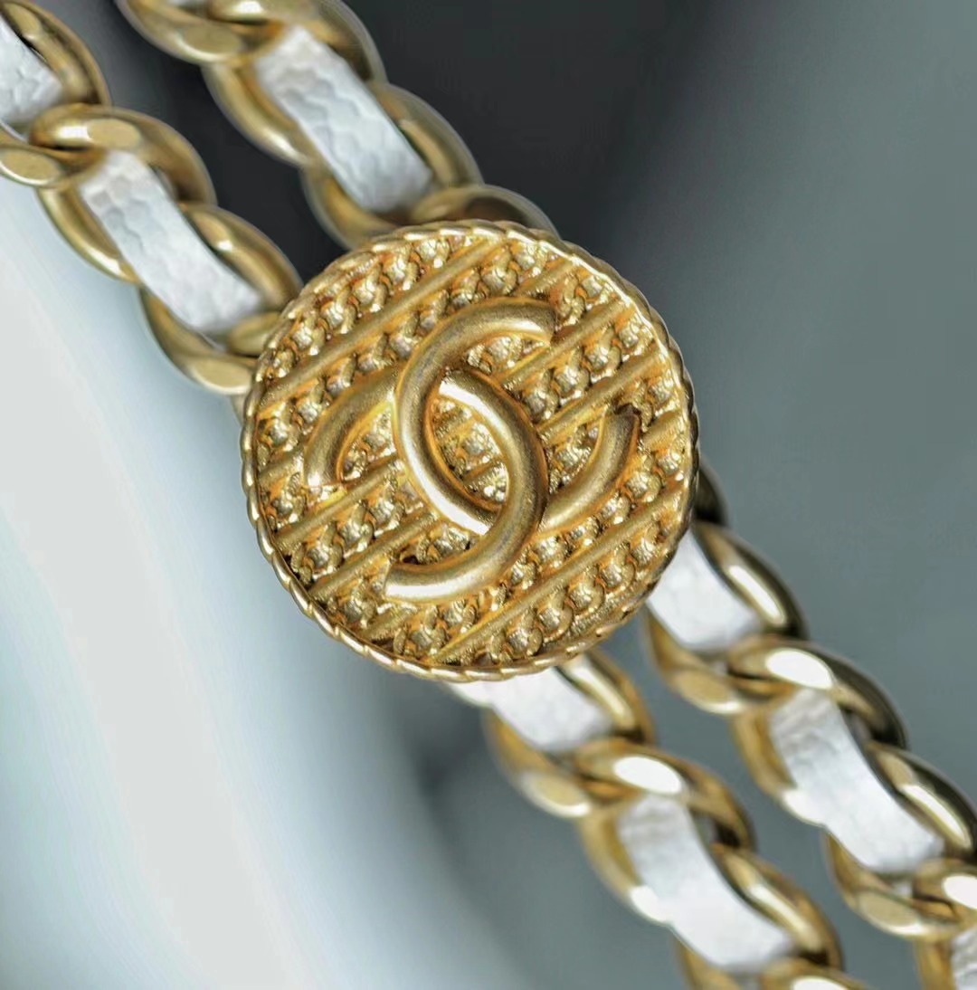 Chanel 22 badge gold Chain bag Grained Calfskin & Gold-Tone Metal White