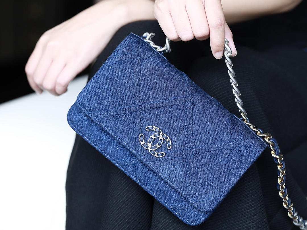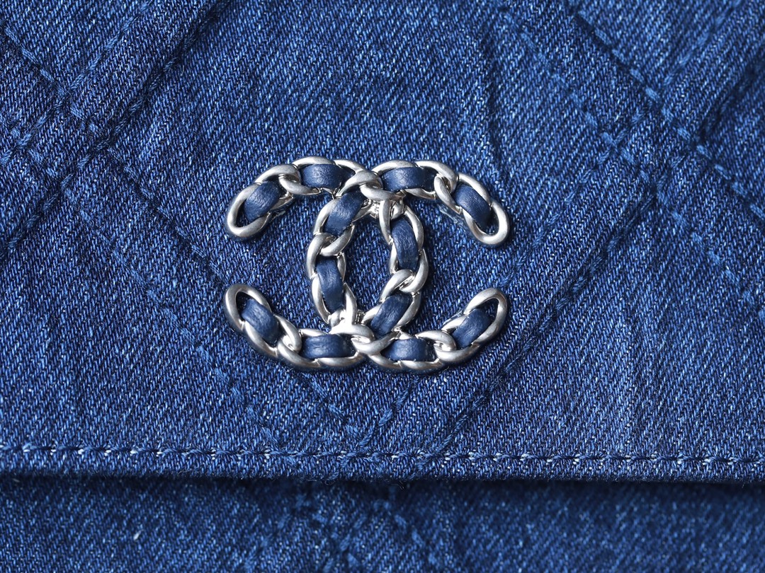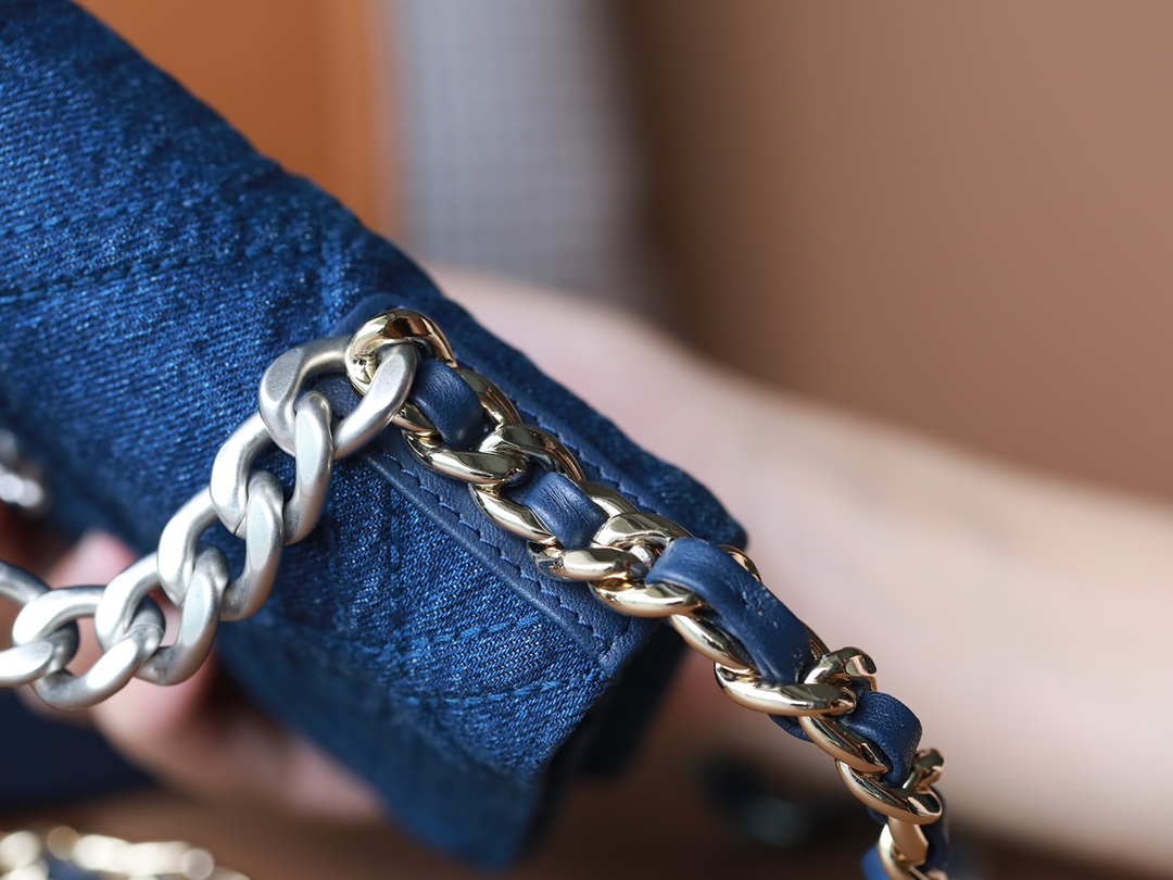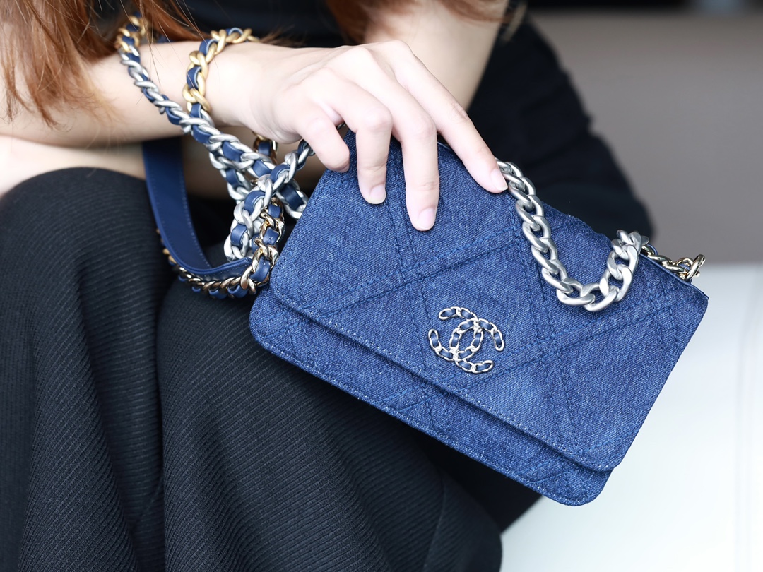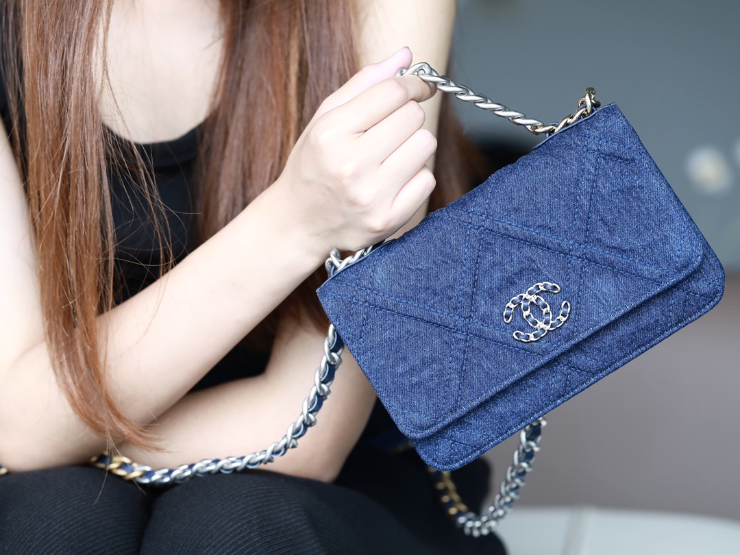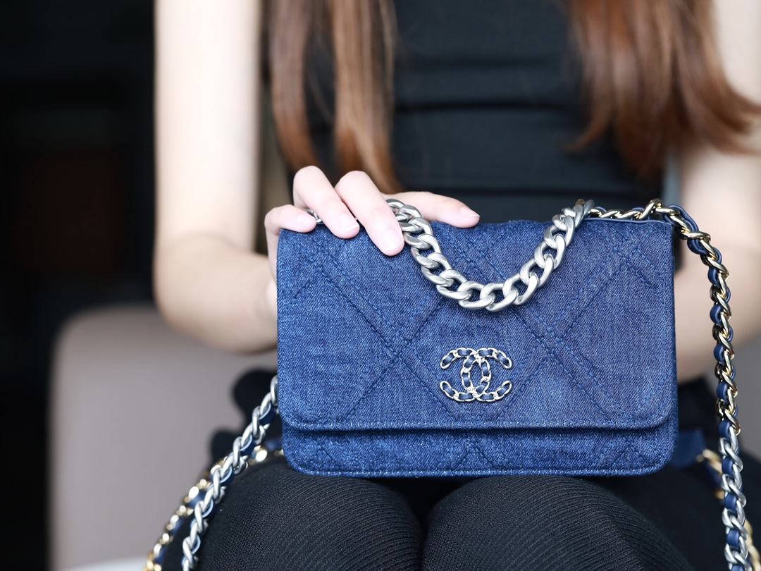 • CHANEL 22 Denim Quilted 19 Wallet On Chain WOC Crossbody Bag