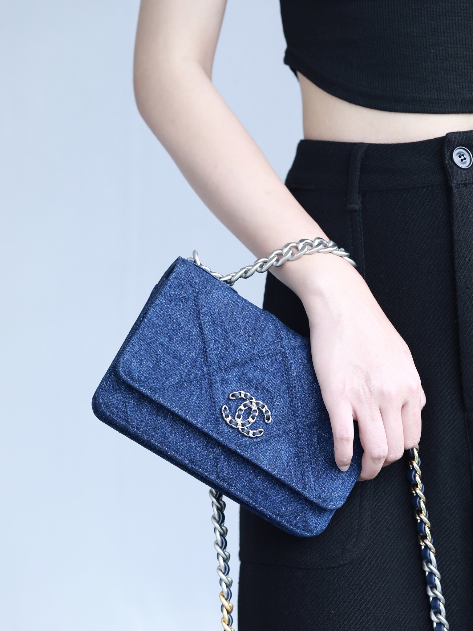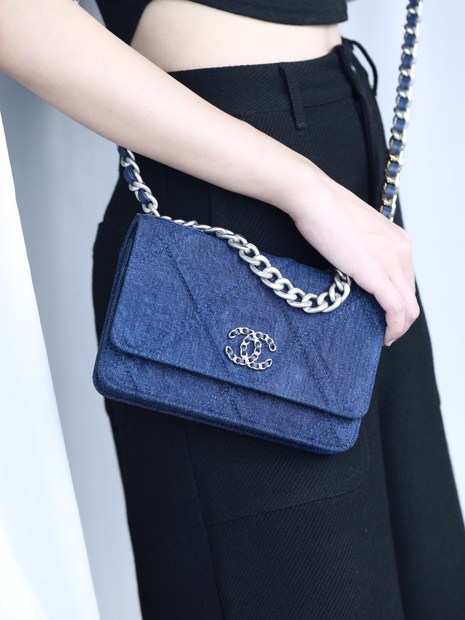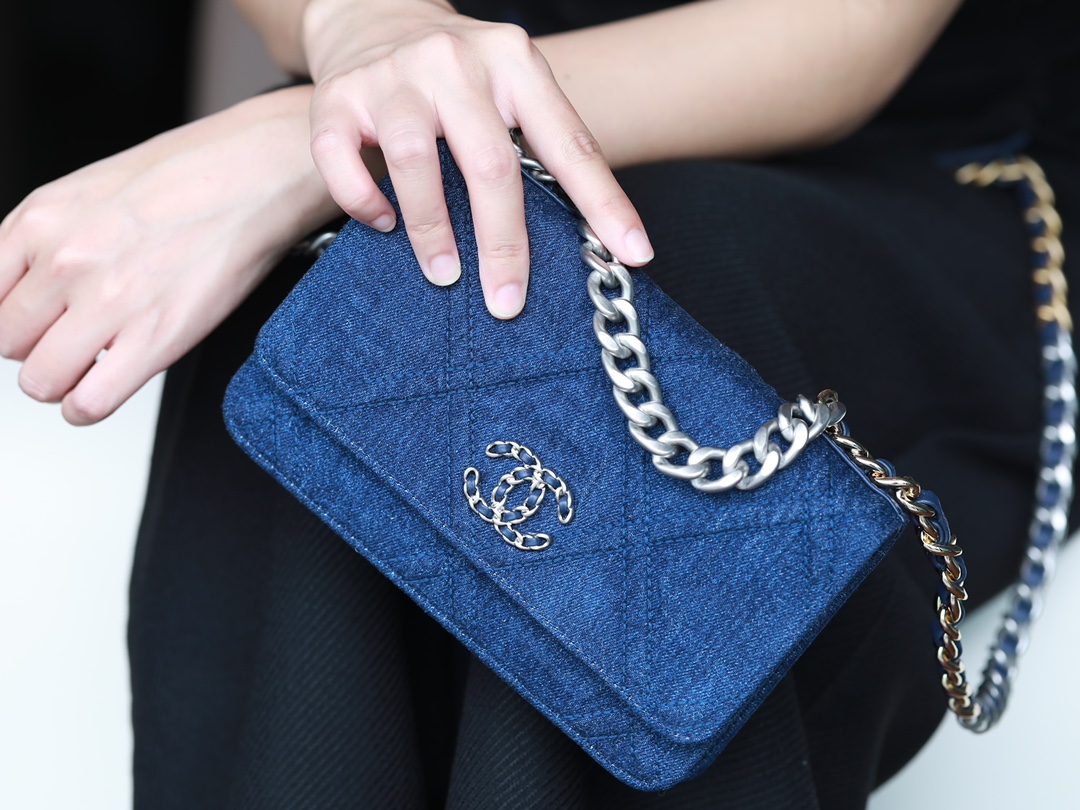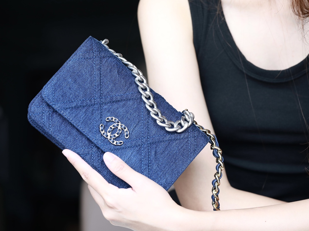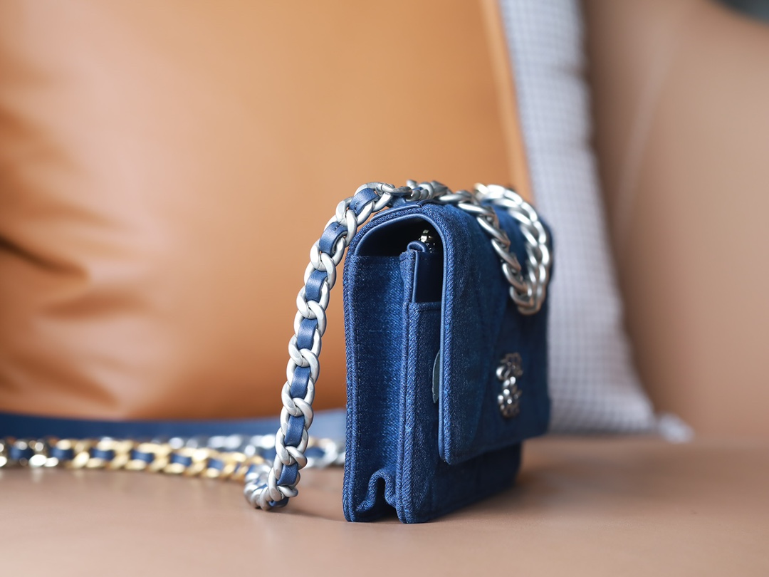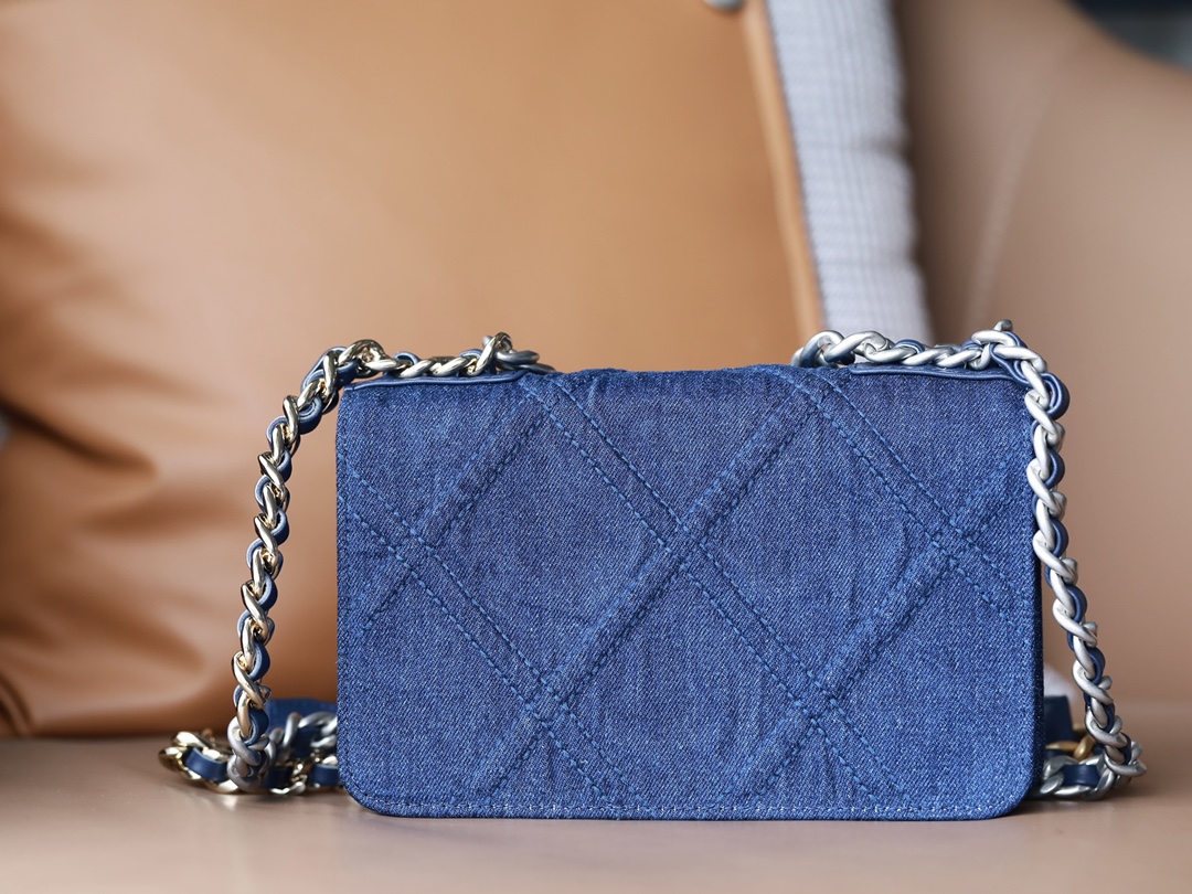 • CHANEL 22 Denim Quilted 19 Wallet On Chain WOC Crossbody Bag