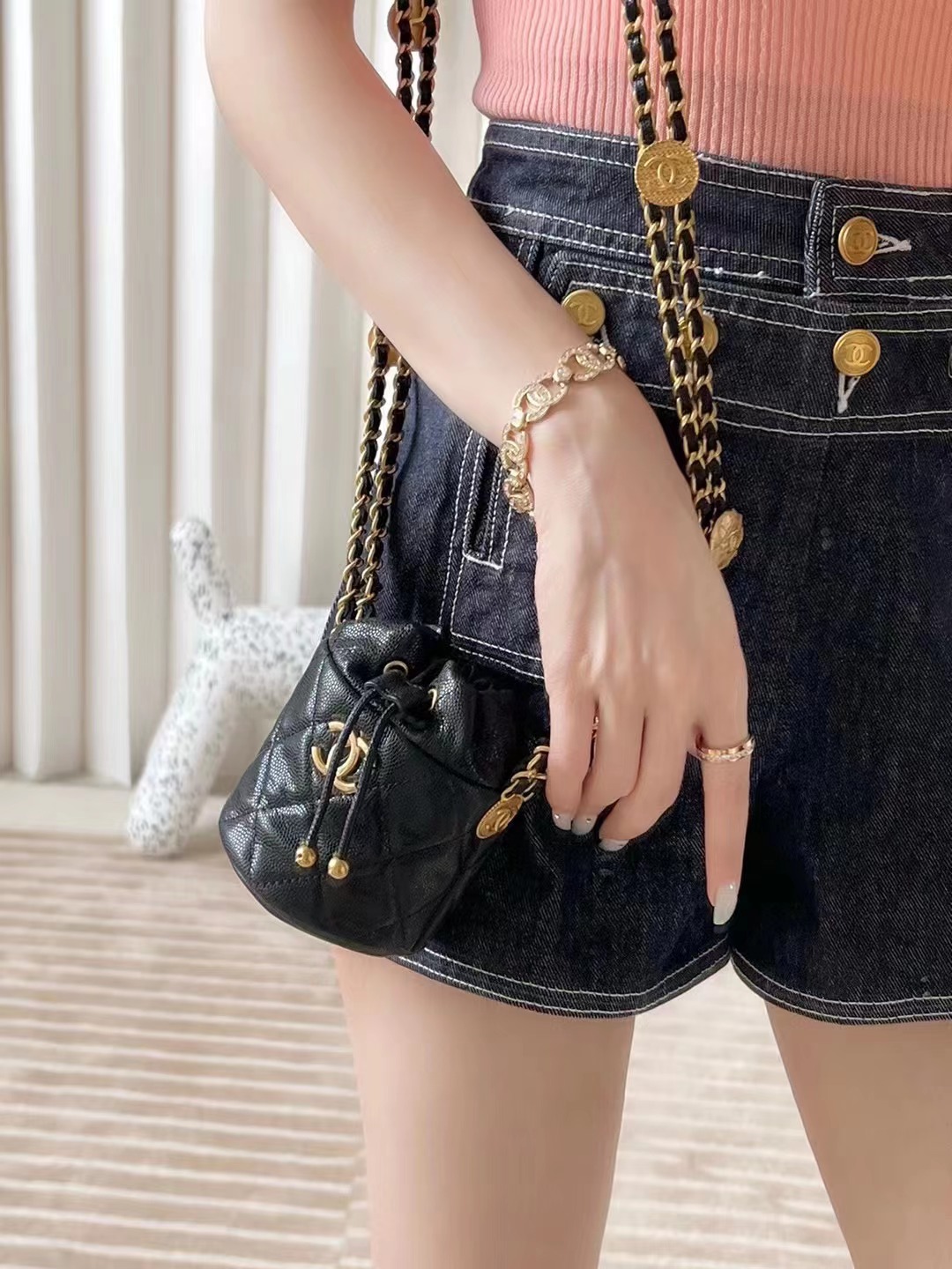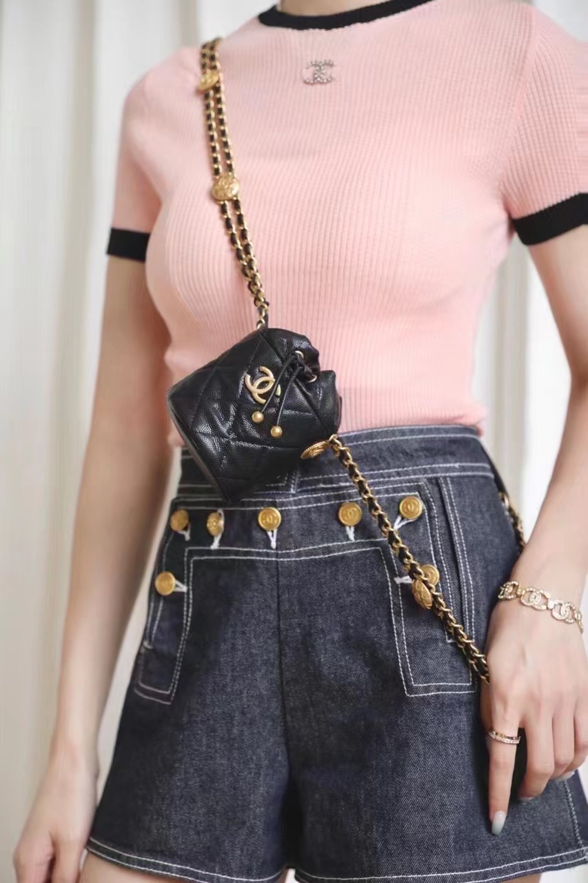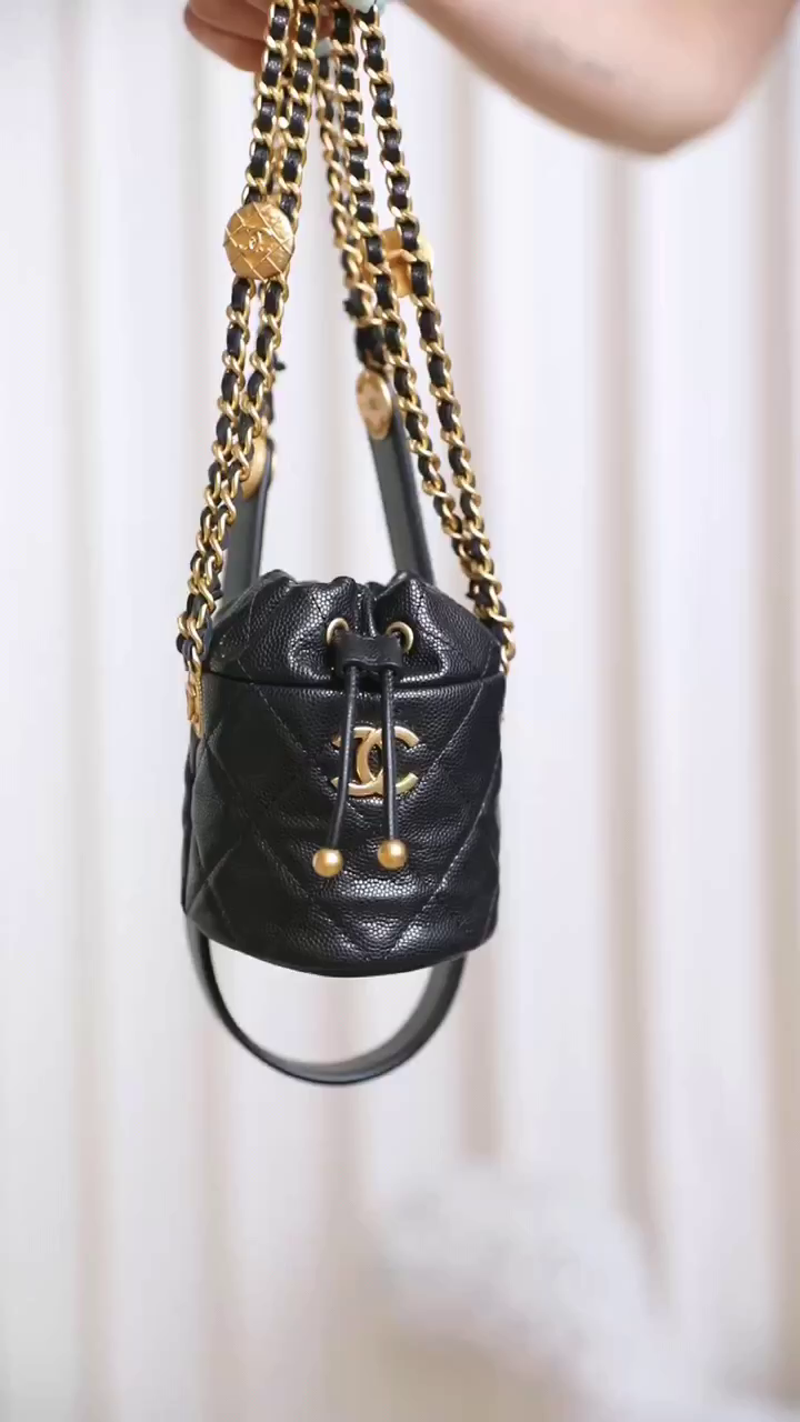 CHANEL 22 gold coin chain mini bucket bag