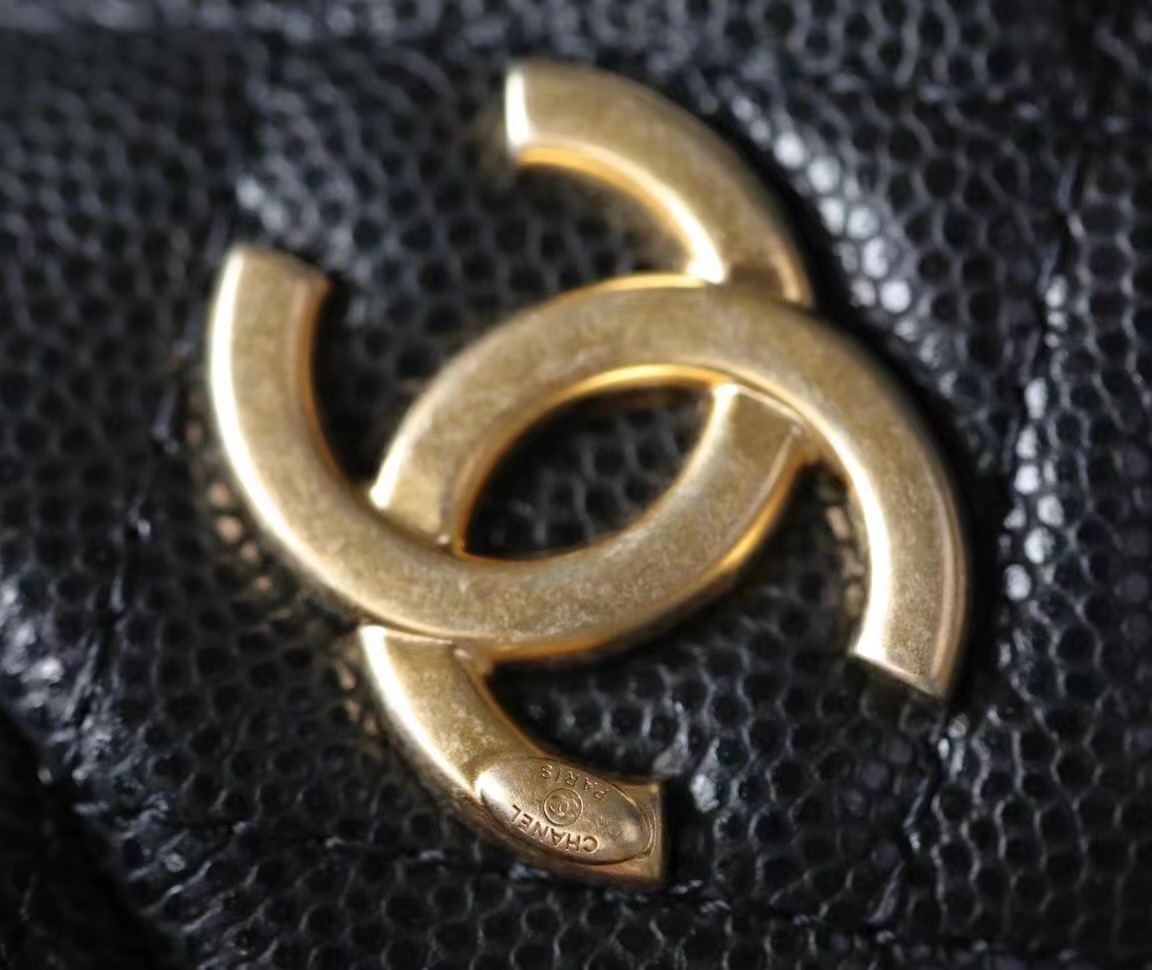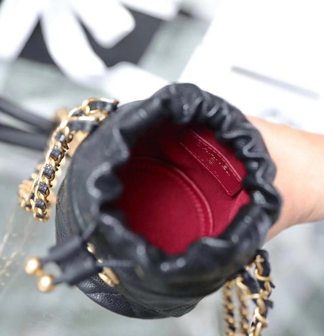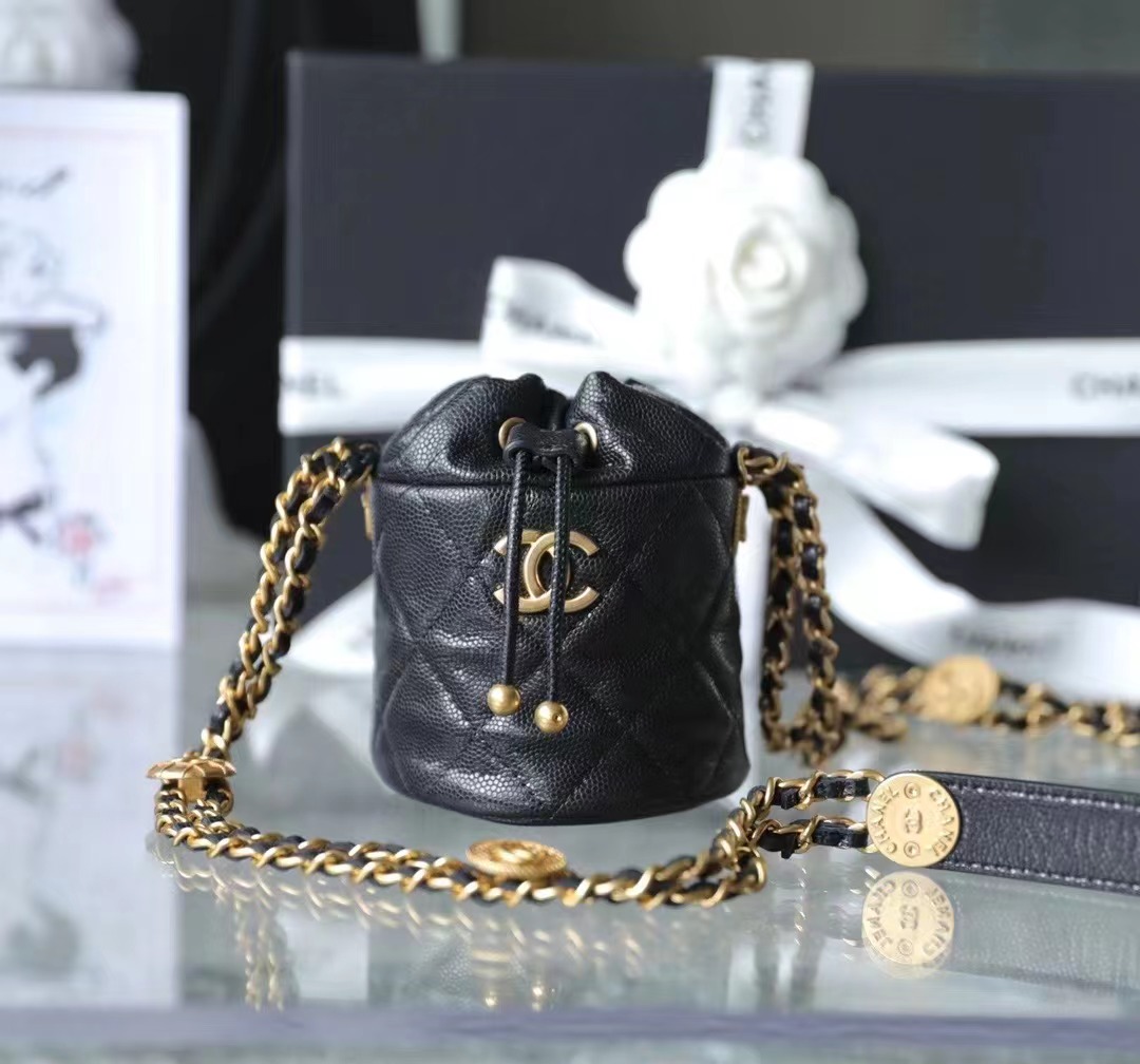 CHANEL 22 gold coin chain mini bucket bag badge Calfskin & Gold-Tone Metal black